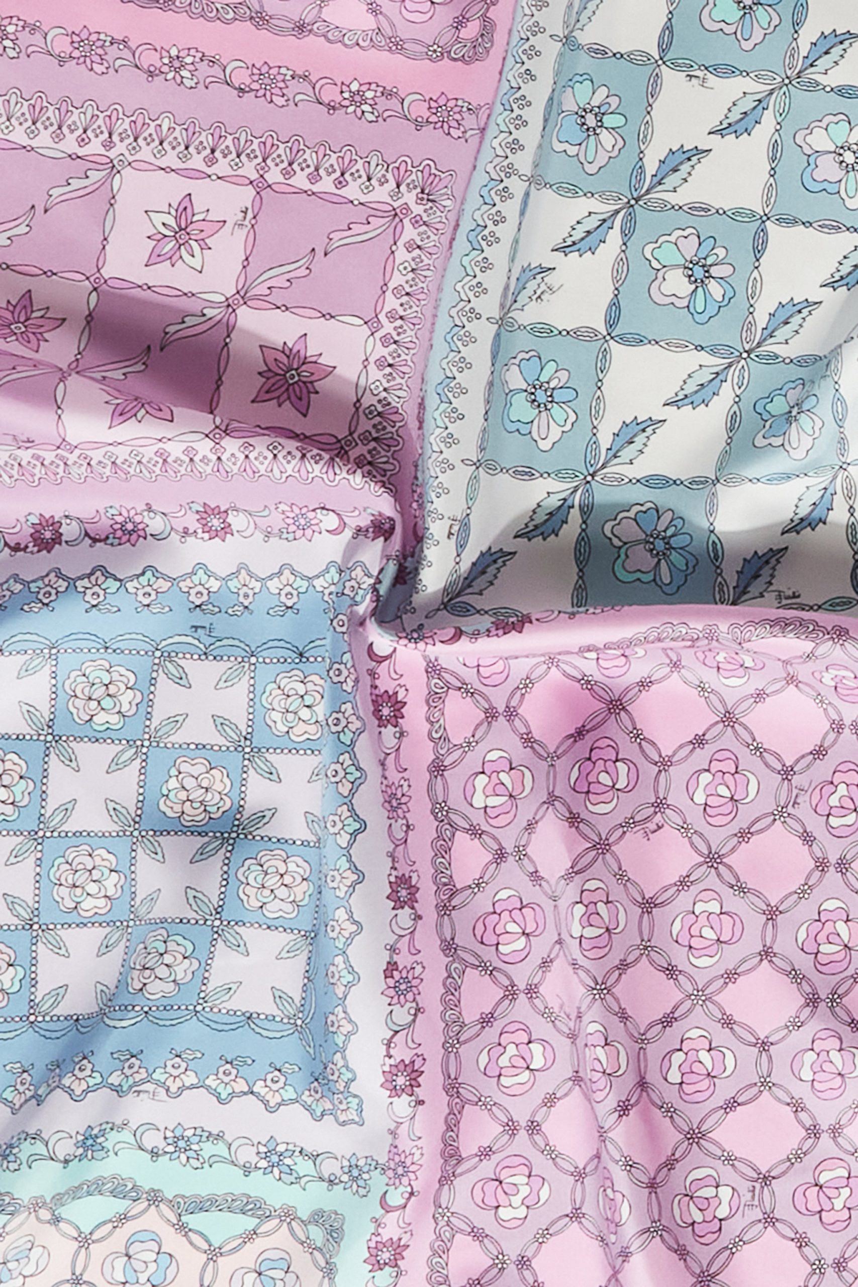 The Festa print crisscrosses this silk-twill carré with neat floral motifs. The house moniker and intertwined fish motif complete the versatile design, which can be worn as a head covering, neck scarf, belt or sarong.