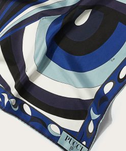 The Iride print decorates this silk-twill carré in vibrant blue stripes, evoking the shape of the eye’s iris. It’s stamped with a house logo at one corner and can be worn as a headband, knotted to a bag or folded and used as a pocket square.