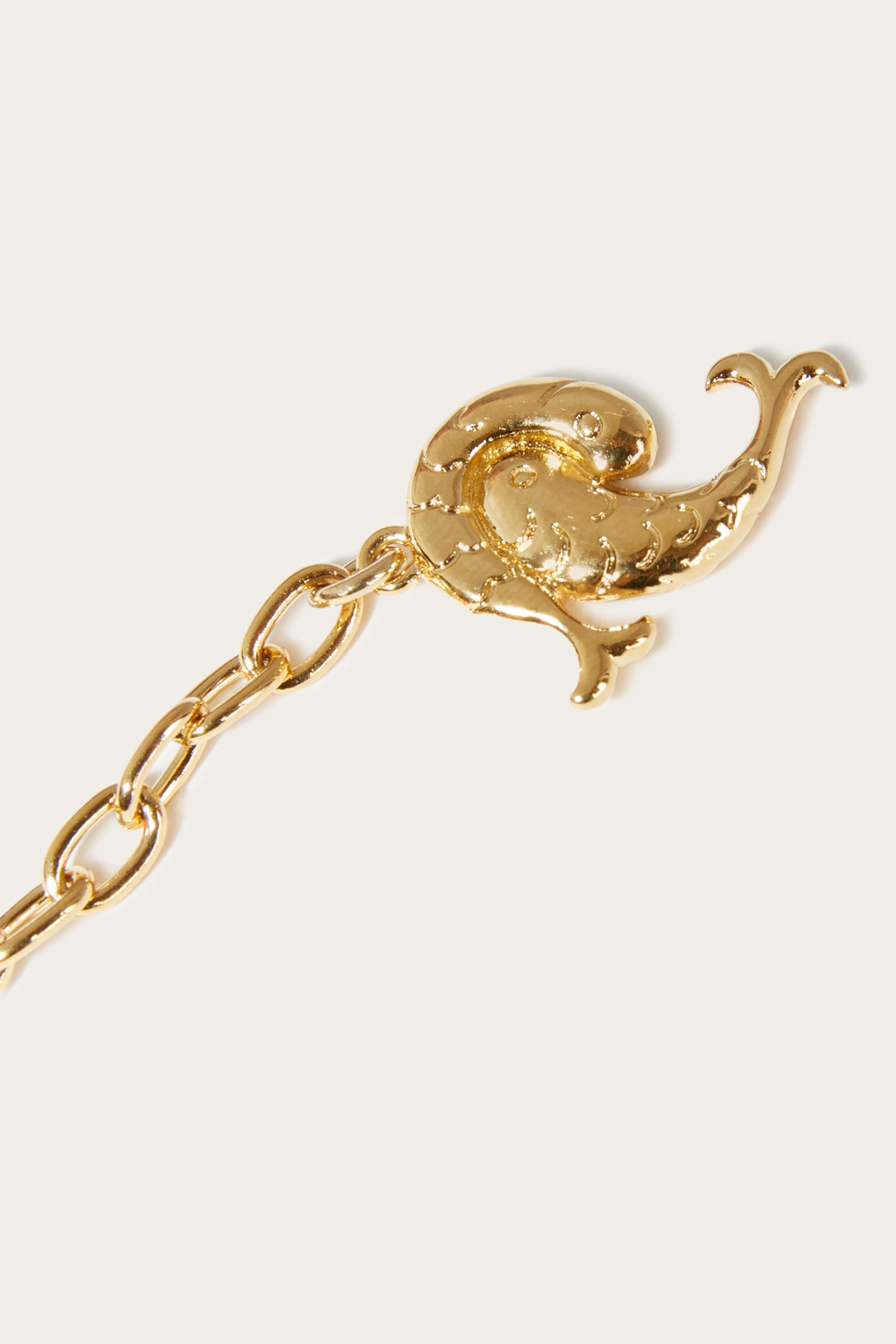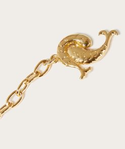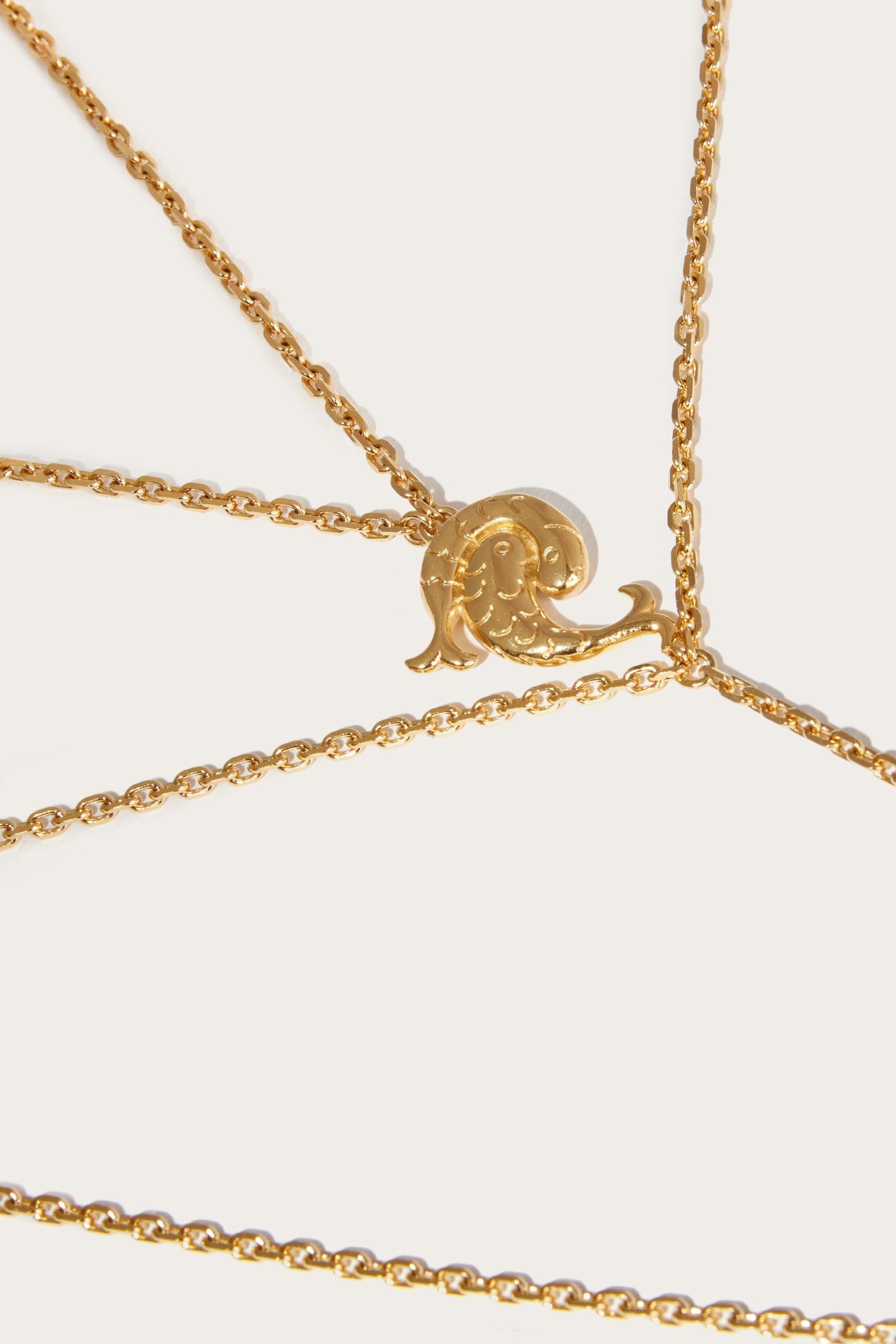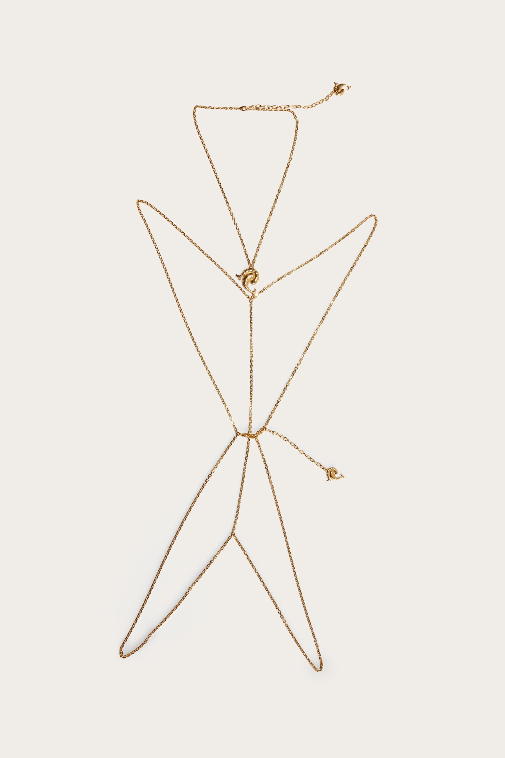 A sculptural accessory that captures the essence of design and the Pucci “way of life.” The brass chain with shiny gold finish is embellished with the brand’s elegant iconic Pesci. Adjustable hooks ensure a perfect fit, adapting with versatility to different looks and silhouettes.A precious accent to transform a daily outfit into a sophisticated creation and enhance the body with a hint of contemporary glamour, especially when worn over a bikini from the irresistibly iconic Swimwear line.