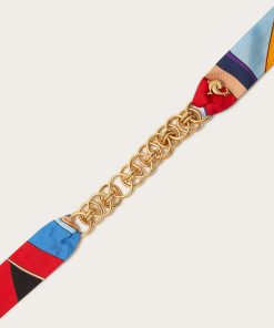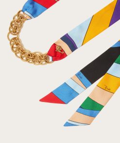 This necklace is designed with Iride-print silk ties to honour Pucci’s iconic scarves. It’s detailed with a band of polished gold-tone chain links and a matching intertwining fish plaque.
