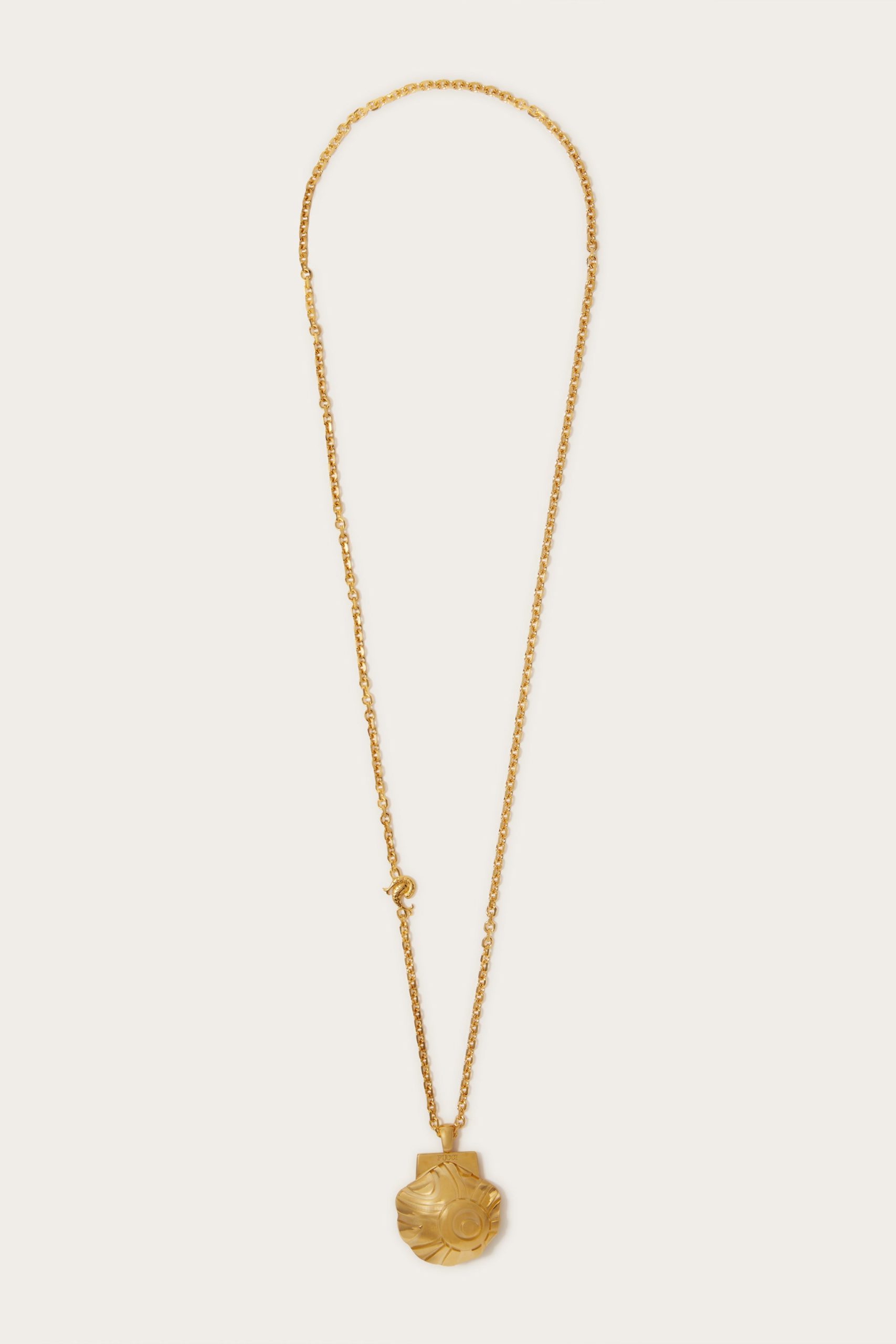 A piece of jewelry that encapsulates the essence of the sea and Pucci’s timeless art. This sautoir necklace with a long, fluid design is inspired by the depths of the sea, with a shell-shaped openable pendant meticulously engraved with the curvilinear patterns of the Marmo print. A refined detail that pays homage to the brand’s heritage.