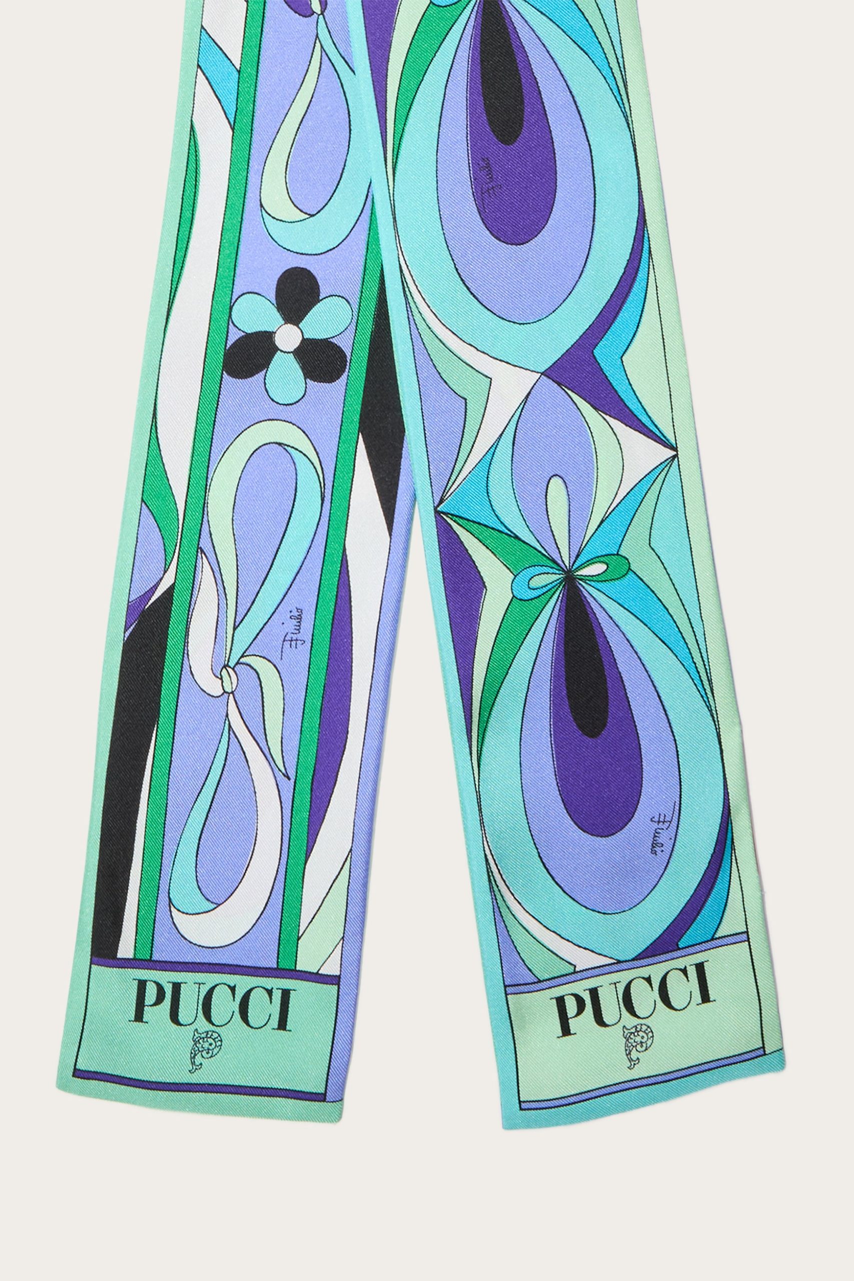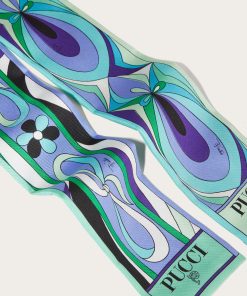 An essential accessory to add a touch of elegance and versatility to your wardrobe. This printed silk twill sash, with its perfect size, is ideal for multiple uses: worn as a belt, wrapped around the neck or used as a decorative detail on bags and hair. The mix of iconic green and lilac prints adds a refined contrast, perfect for completing both casual and formal looks with a distinctive touch. A light and sophisticated accessory that suits any occasion.