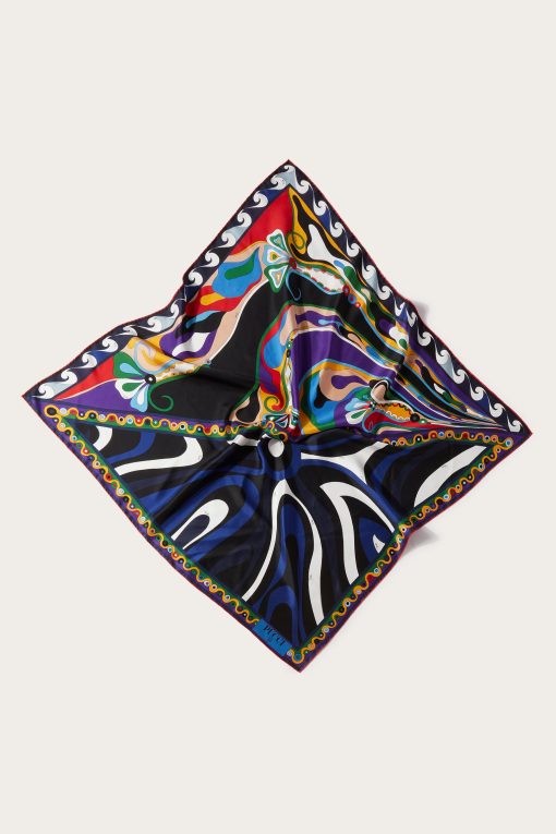 Pucci Accessories Marmo And Orchidee-print Large Silk-twill Carré | Navy Blue & Red