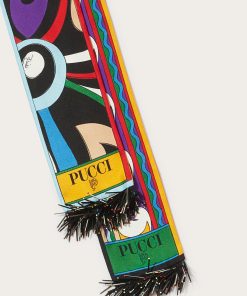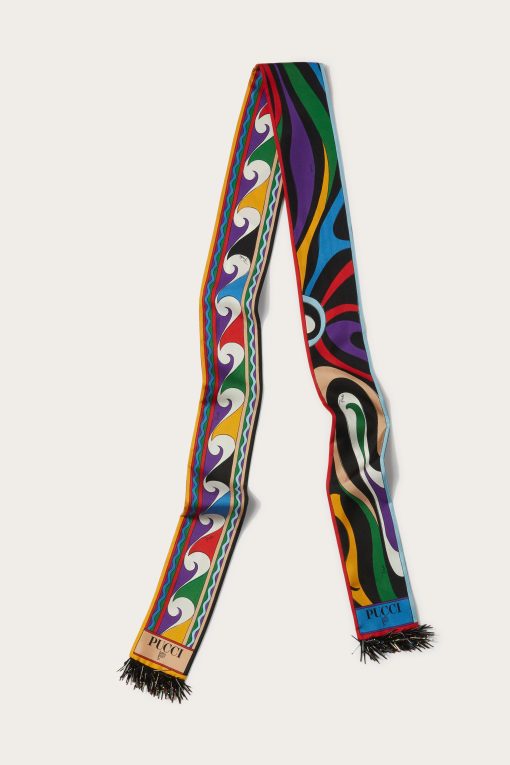 This silk-twill scarf features the Marmo print and is finished with beaded fringing at each end. The house moniker and intertwined fish motif complete the slim design, which can be worn at the neck, as a headband or belt.