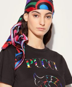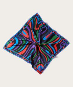 This scarf is enlivened by the rippling waves of the Marmo print. It’s cut from silk twill and bordered with Pucci logos: note the house moniker and intertwined fish motif at one corner. Consider it worn as a head covering, neck scarf, belt or sarong.