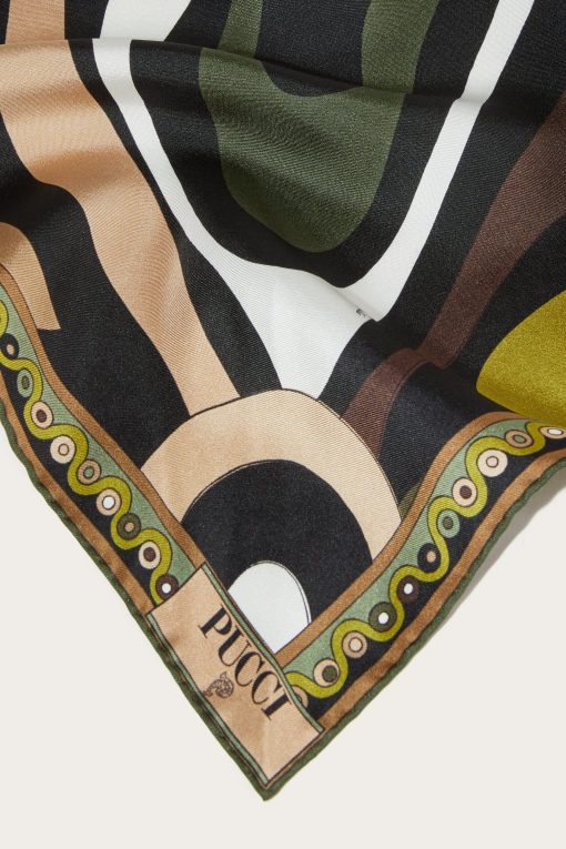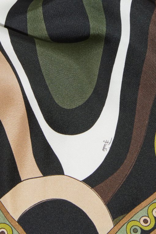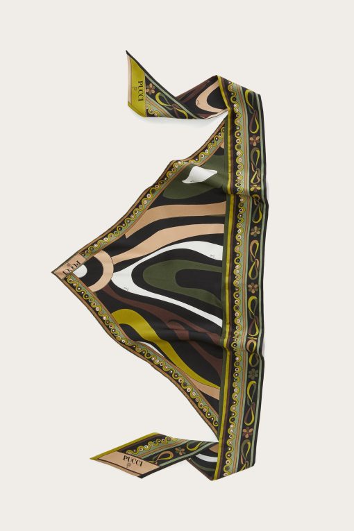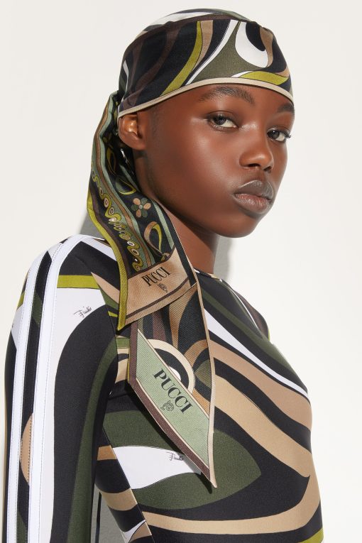 Refined and versatile, designed to add a touch of color and personality to any look. This printed silk twill triangle scarf is a celebration of Pucci’s signature elegance, enhanced by the iconic Marmo print in shades of khaki.Perfect to wear around the neck, as a headband or even tied to a handbag for a chic accent. Lightweight and fluid, it becomes the detail that transforms even the simplest outfits into style statements.