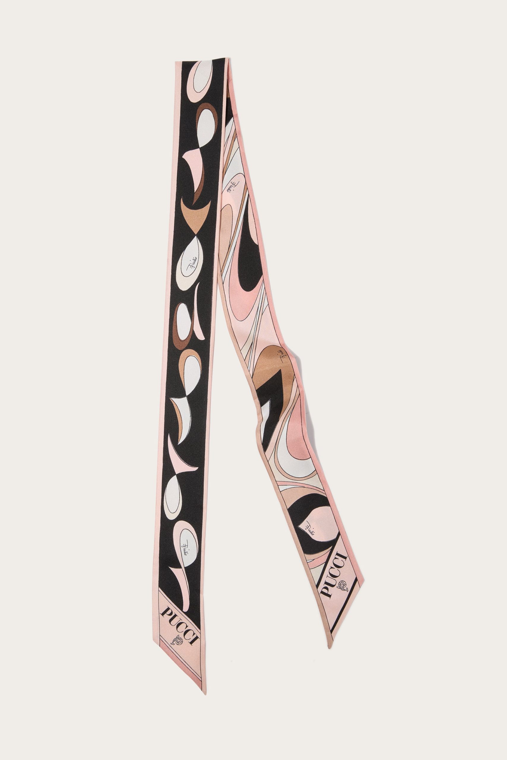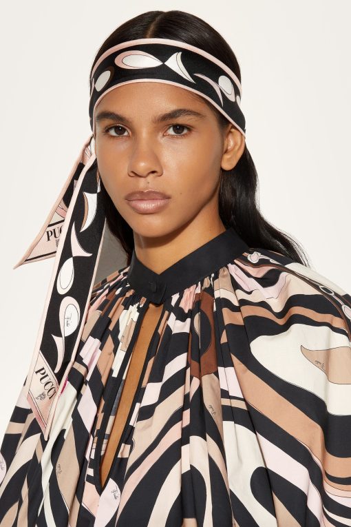 A versatile and refined accessory perfect for adding a distinctive touch to any outfit. Featuring a unique combination of Ondes and Pesci prints, this silk twill headband celebrates the art and energy of Pucci design.Ideal to wear as a headband, around the neck or knotted to a handbag for a touch of personalized elegance. The print in shades of nude adds a delicacy that makes it easy to pair with both casual and more sophisticated looks.
