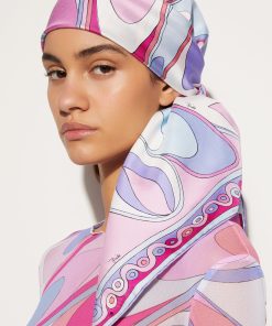 This scarf is adorned with the vibrant archival Onde print, perfectly capturing Pucci’s playful essence. A logo detail at the border adds a distinctive hallmark touch.