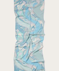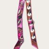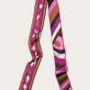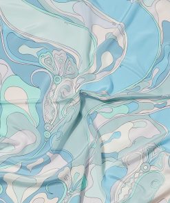 This crepe de chine scarf is covered with the Orchidee print in rich jewel tones. The corner is stamped with the house moniker and signature intertwined fish motif, while contrast borders lend it visual interest. It’s designed to be used as a head covering.