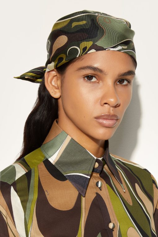 A small accessory that encapsulates the essence of Pucci elegance. This silk twill yoke is perfect for adding a refined and versatile touch to your everyday style. The Orchidee print in an elegant khaki hue evokes lightness and harmony, turning any look into a work of art.Wear it around your neck, tie it as a headband or use it as a decorative detail for your favorite handbag. With its soft texture and unmistakable print, it will be your ally for unleashing style on any occasion.
