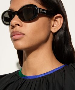 Pucci Accessories Oval Sunglasses With Inside Print | Black