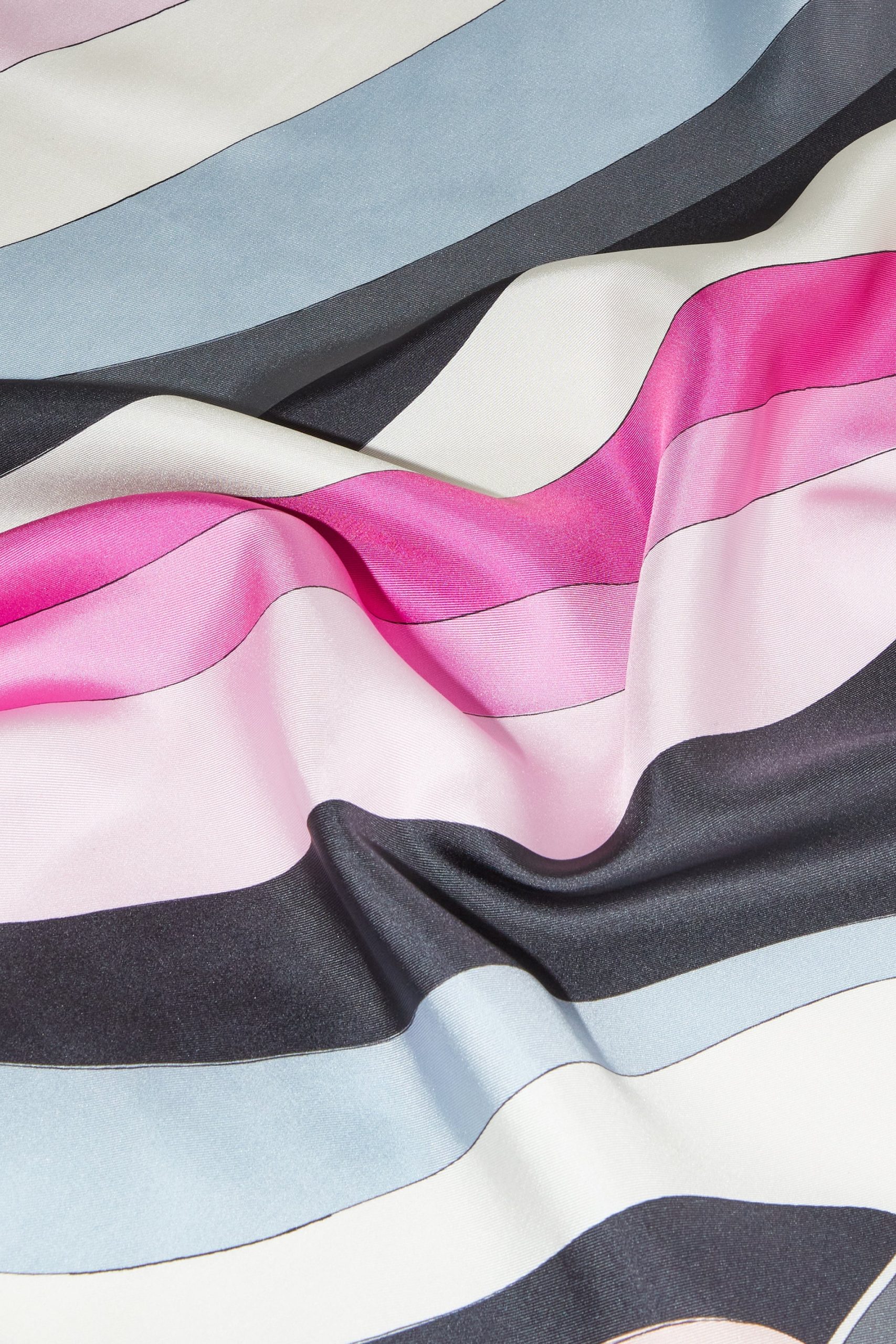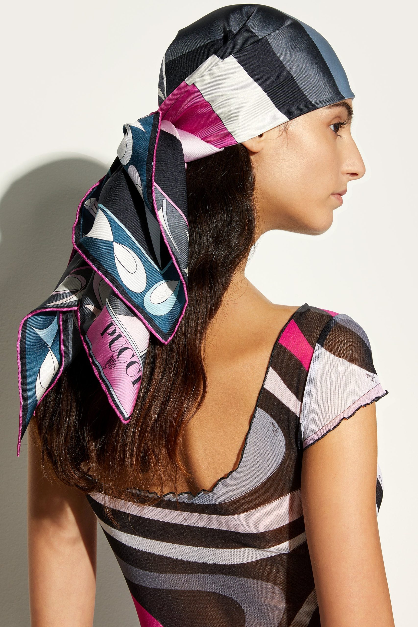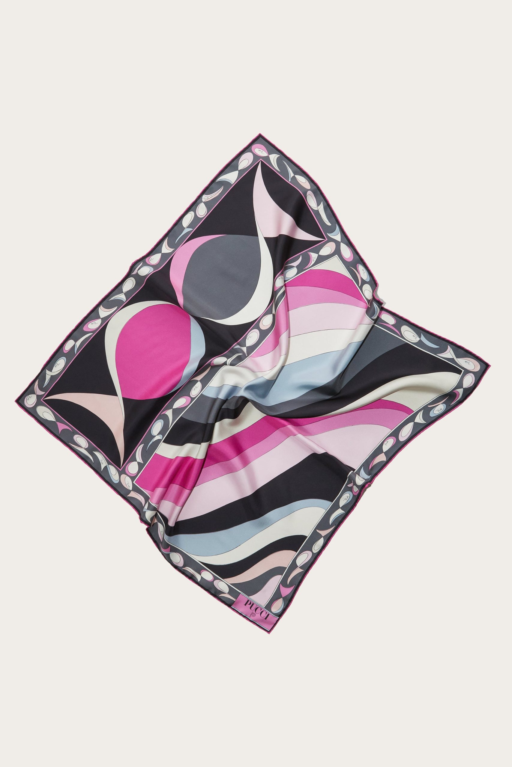 An accessory that celebrates Pucci’s elegance and tradition, perfect for those who like to add a touch of sophistication to their look. This silk twill scarf is embellished with the Pesci print in refined shades of black and fuchsia, an iconic motif that evokes lightness and movement.Versatile and sophisticated, it can be worn in a variety of ways: around the neck, as a headband or tied to a bag for a chic detail. Lightweight and soft to the touch, it is a must-have to enrich any outfit with Pucci’s unmistakable style.