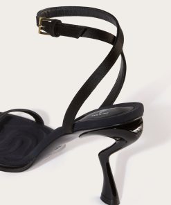 With a high heel sculpted to look like a horse’s leg, these sandals showcase Pucci’s playful side. They’re complete with black satin straps and a polished logo plaque.