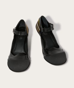 Mary Jane model shoes with a sculptural heel are the perfect choice for a meeting in the city, a special event, or to add a sophisticated touch to your daily outfit.The combination of abrasive leather and silk on the heel adds a refined texture contrast, while the adjustable buckle strap ensures a customized fit, easily adapting to formal or casual chic looks, and becoming a charming new staple in your wardrobe.