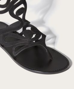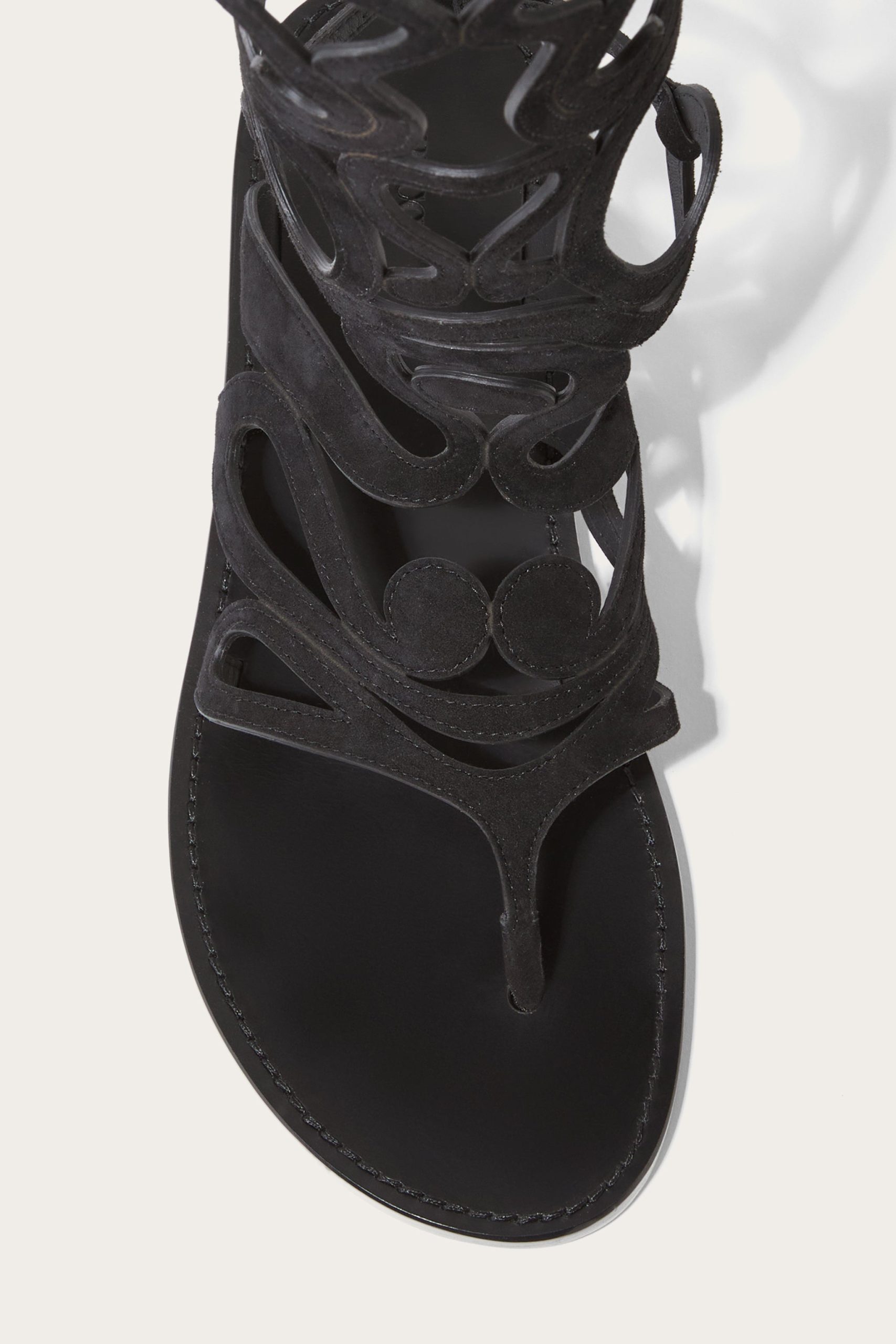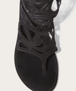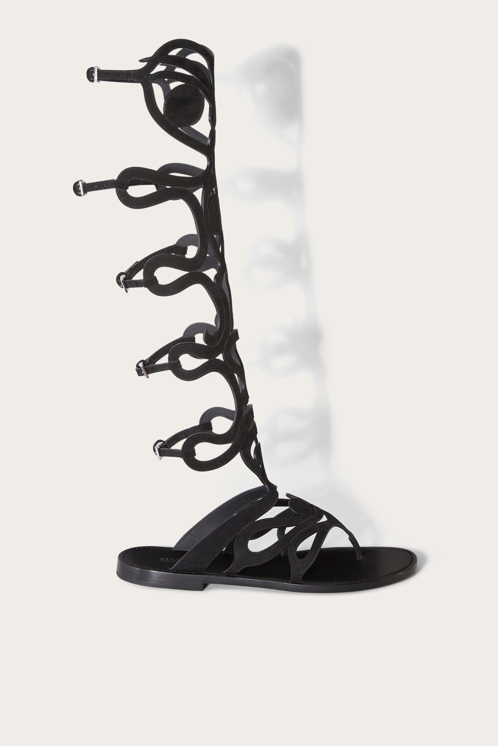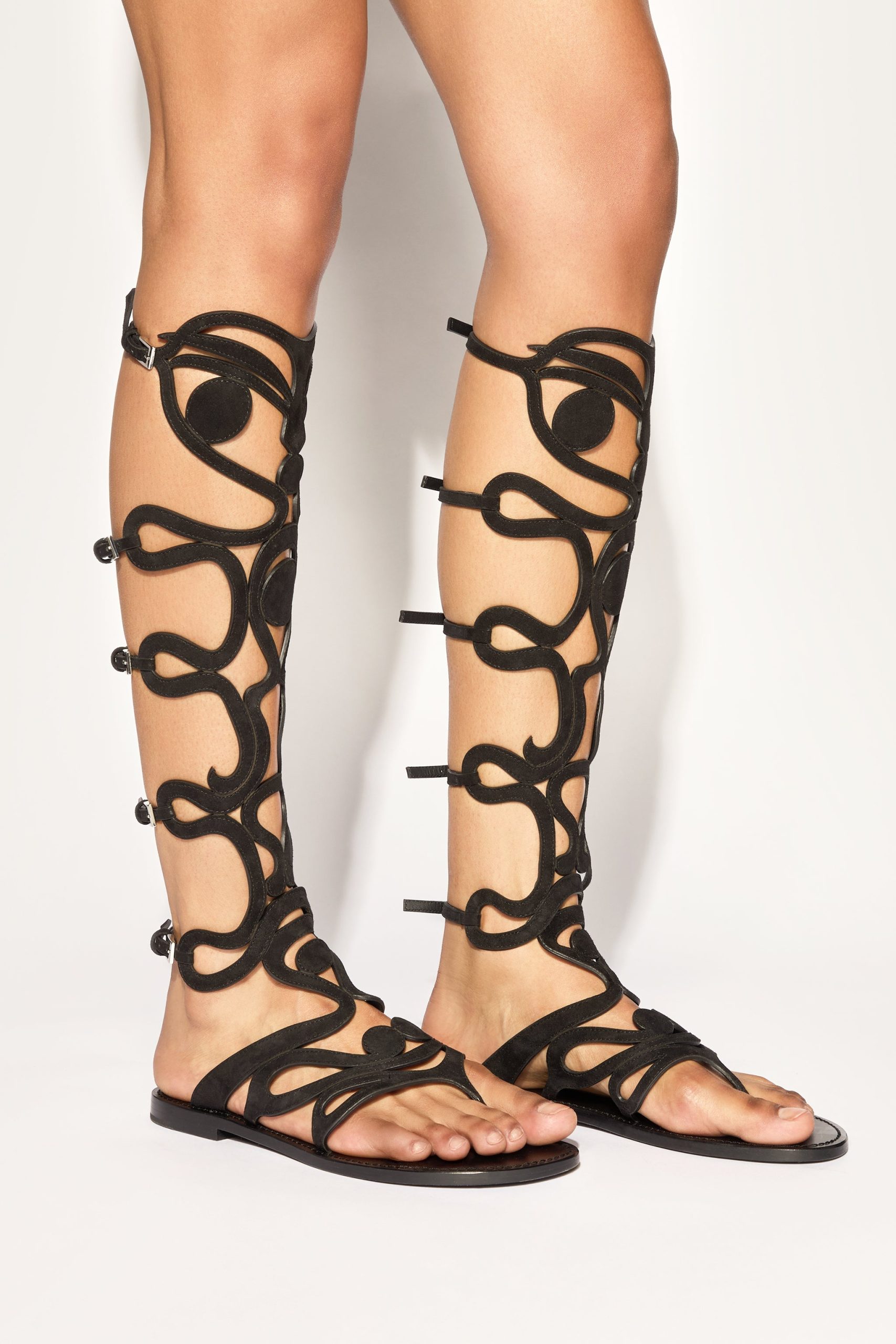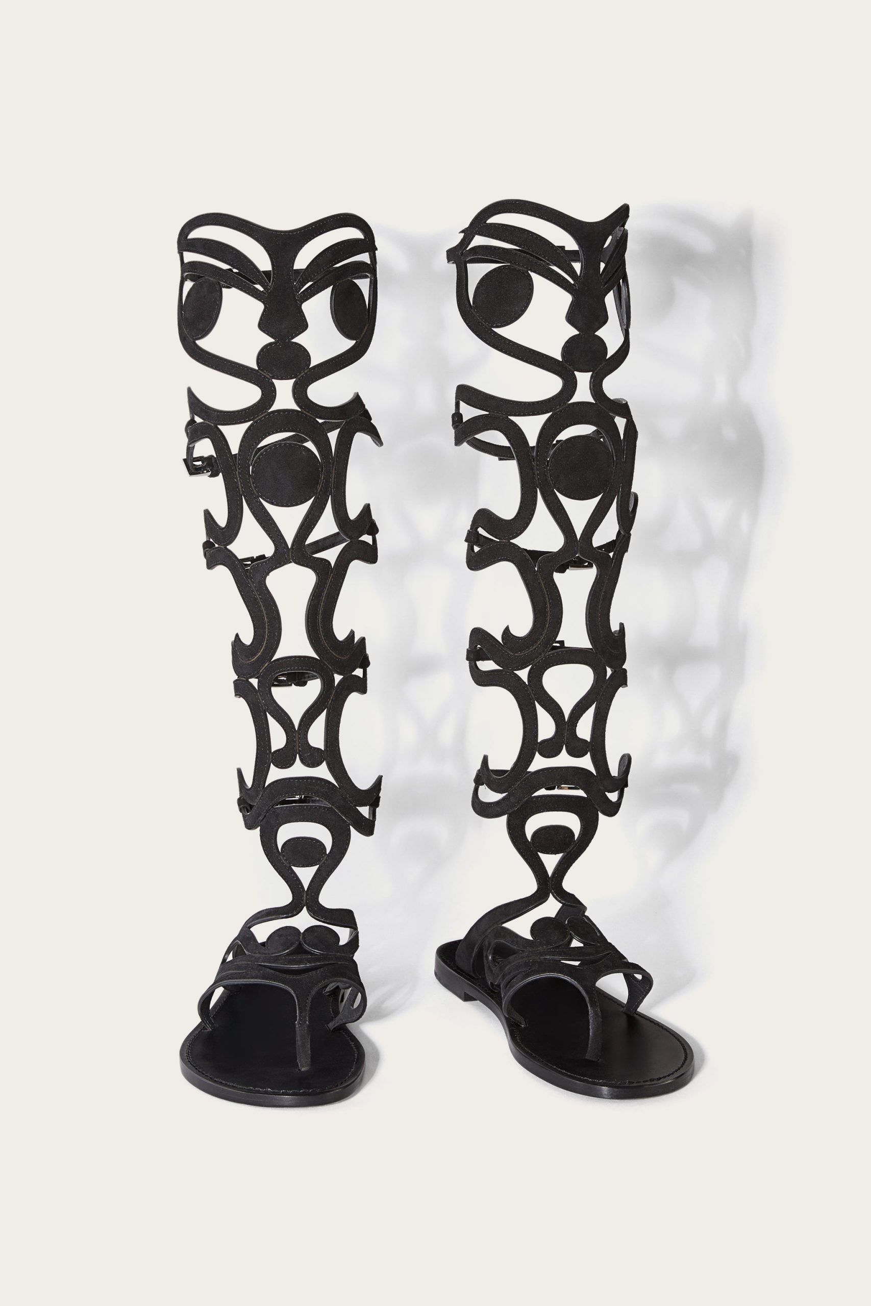 A great classic reinterpreted with Pucci’s unmistakable style. These black suede gladiator sandals blend craftsmanship and graphicism in an elegant and modern design.