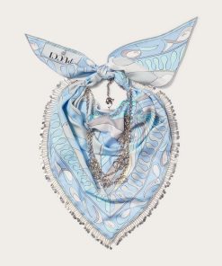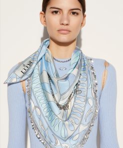 Pucci Accessories Silks Leocorno And Pesci-print Chain-embellished Scarf | Sky Blue & Grey