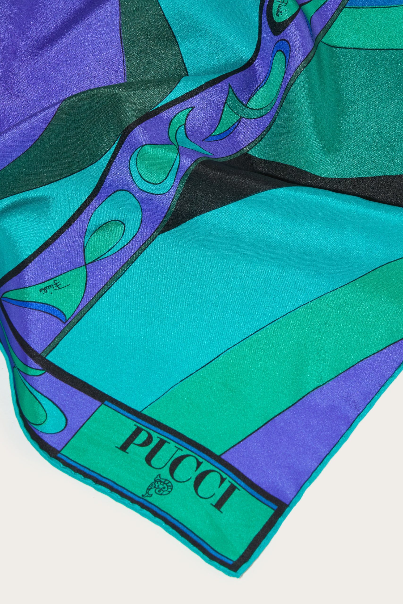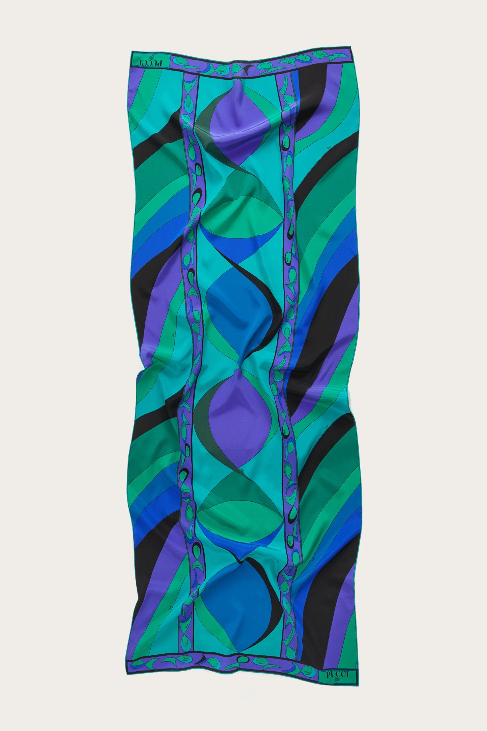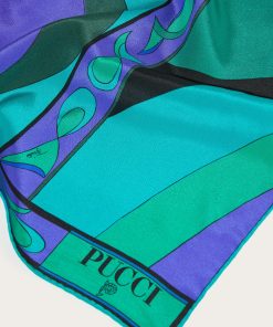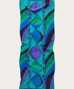 An elegant and versatile stole designed to add a refined and personal touch to your style. Made of fine silk crepe de chine, it combines the lightness of the fabric with the vibrancy of the Pesci print in emerald, recalling the dynamism of the sea and Pucci’s artistry. Thanks to its size, it can be used in different ways: draped over an evening dress, worn as a hijab or knotted to embellish a casual look. Its fluid texture and timeless design make it a must-have piece for any wardrobe.
