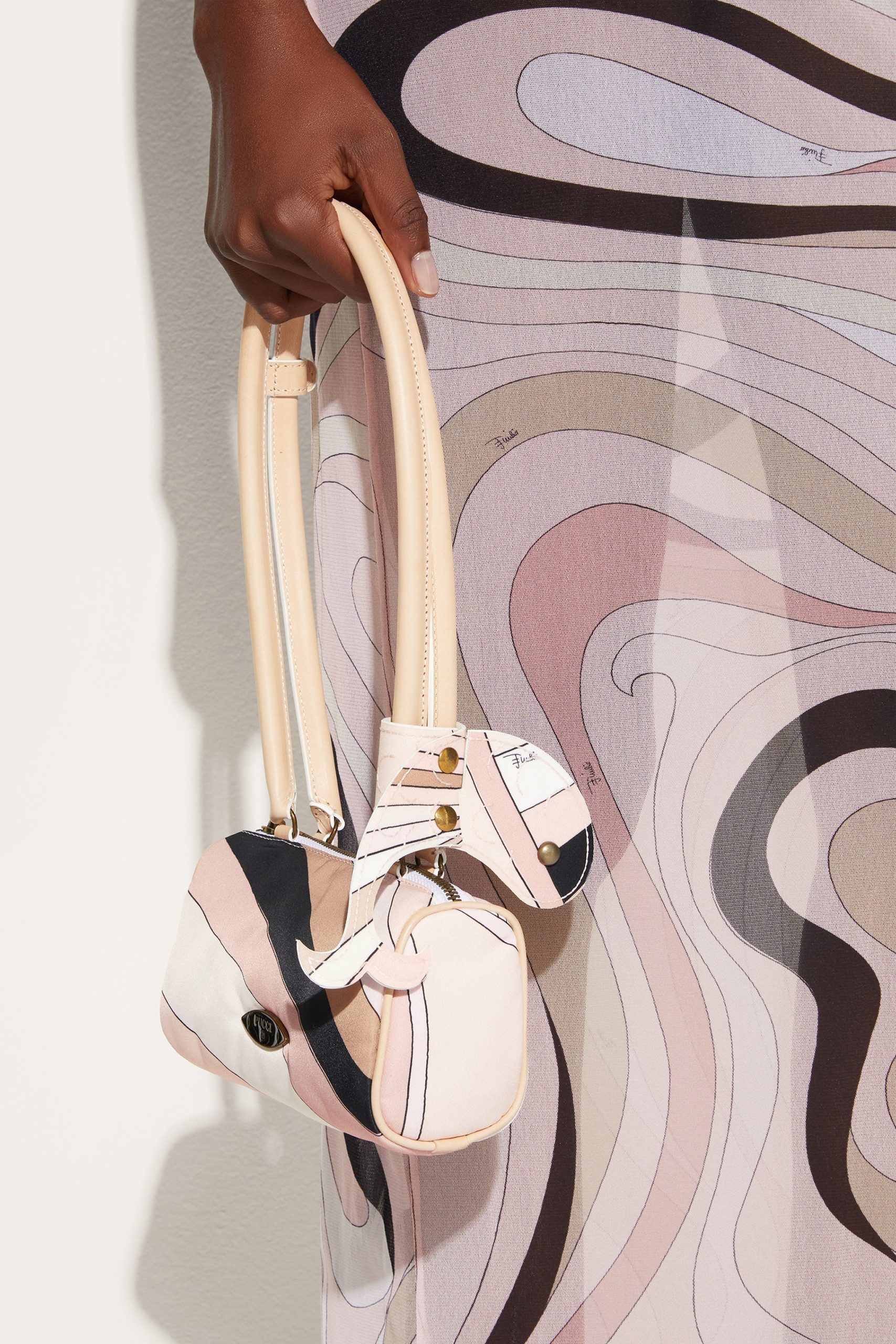 Traveling in style? This nylon luggage tag is the perfect detail to distinguish your suitcase with a signature Pucci touch. Lightweight, practical and durable, it is designed to accompany you everywhere without sacrificing elegance.A refined and distinctive nude Iride print wraps the printed nylon, while soft nappa leather details add a sophisticated touch. Press studs provide a secure closure, protecting your information with discretion and style. Perfect for those who like to personalize every detail of their trip.