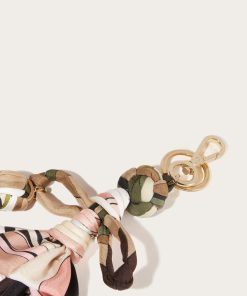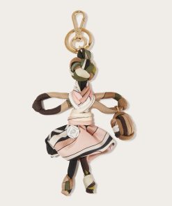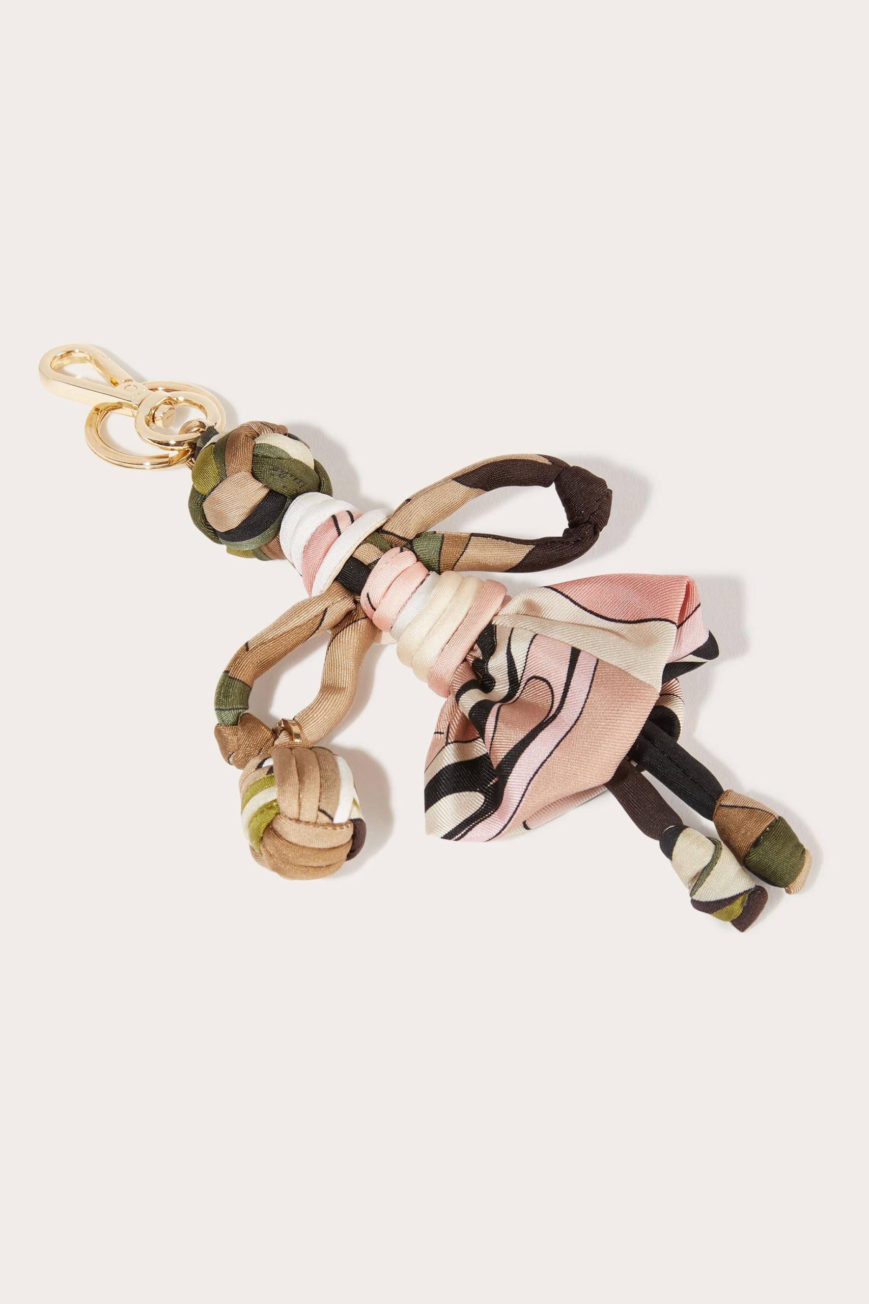 A small detail that encapsulates all of Pucci’s vibrant spirit. This doll keychain is made of woven silk, decorated with the iconic Iride print in refined shades of khaki and nude.Perfect for adding a distinctive touch to keys or as a decorative charm for handbags, it is an accessory that combines craftsmanship and playful design. A true collector’s piece designed for those who love unique and sophisticated details.