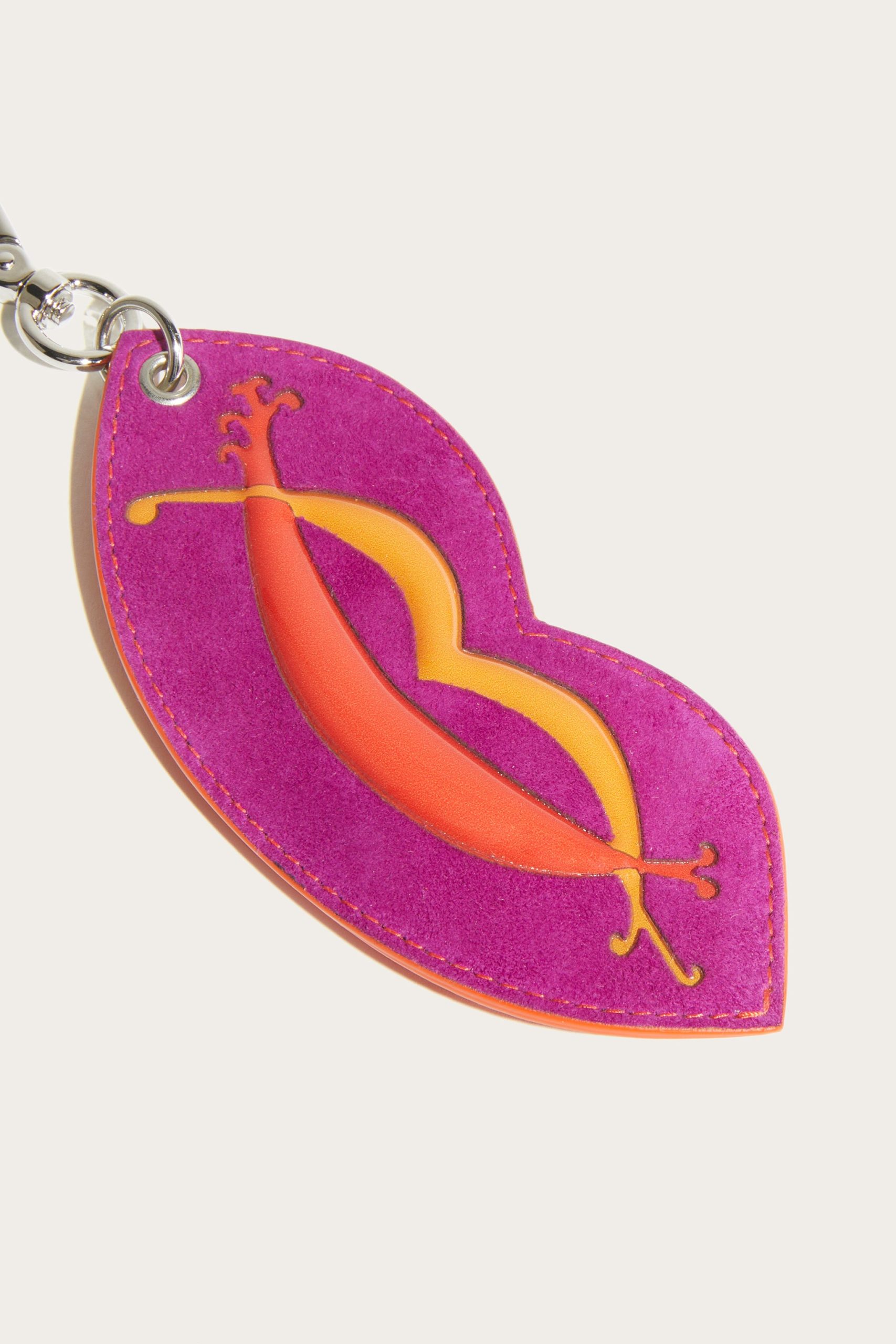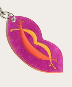 A little accessory that doesn’t go unnoticed. This nappa leather and suede Airtag holder stands out with its three-dimensional mouth-shaped design, giving it a playful and sophisticated touch.The practical metal hook makes it easy to attach to purses, keys or backpacks, allowing you to carry it with you at all times in style.