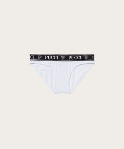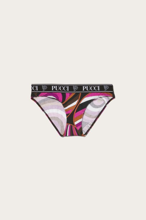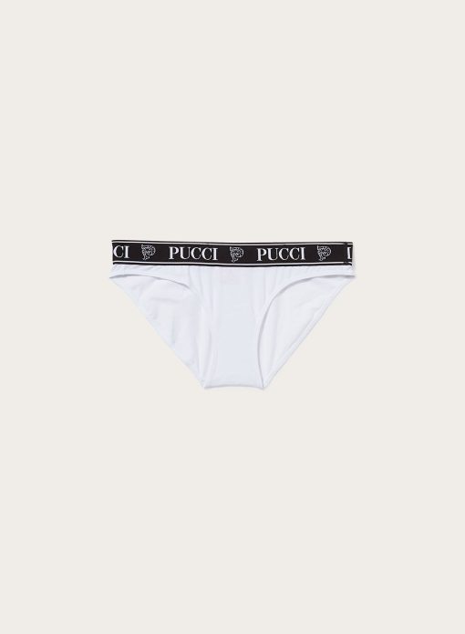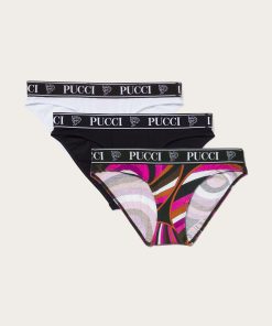 The briefs in this pack are fitted with an elastic waistband that’s jacquard-woven with the house’s moniker and Pucci P motif. One is decorated with the Iride print, while the others come in white and black.