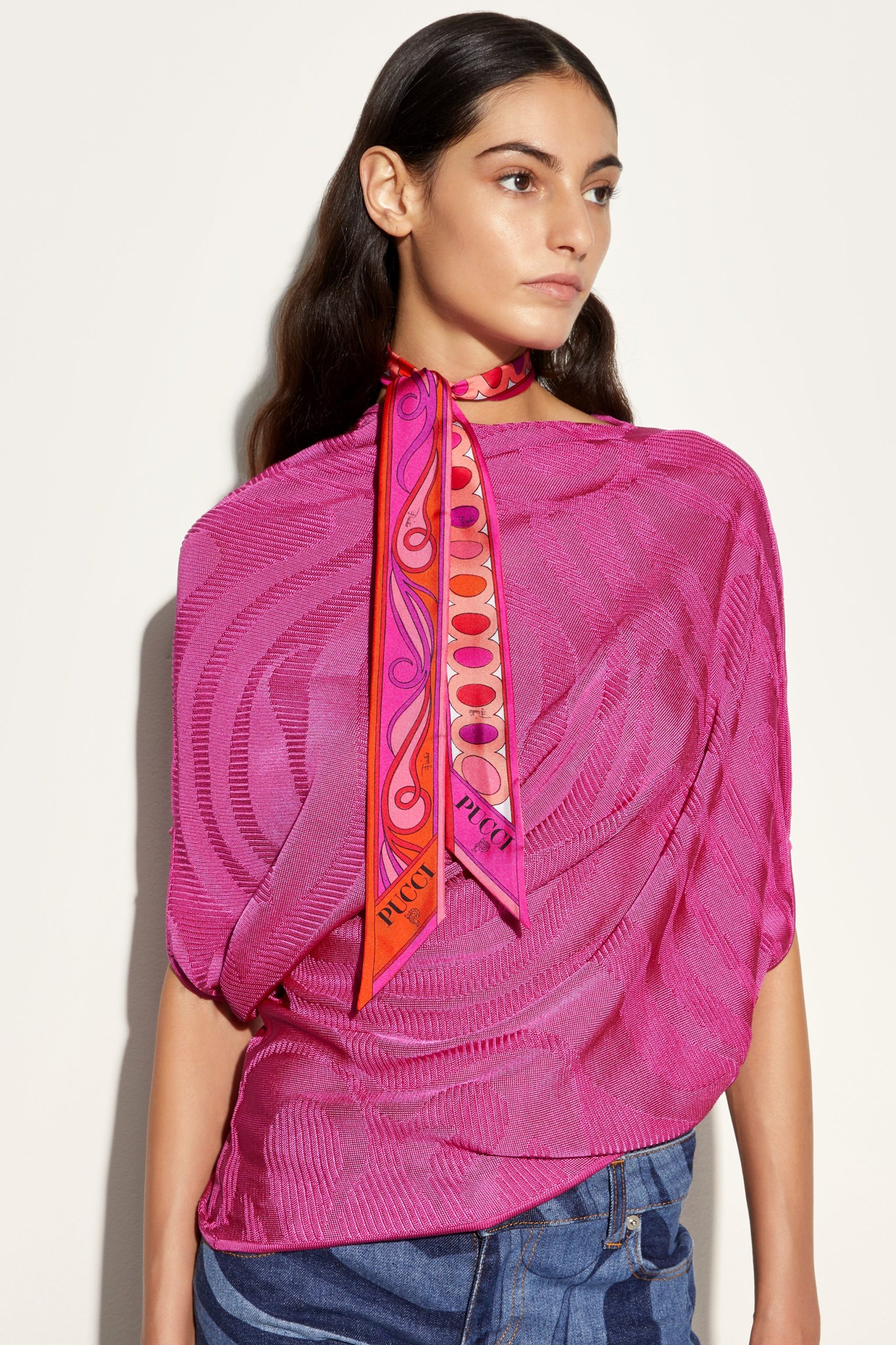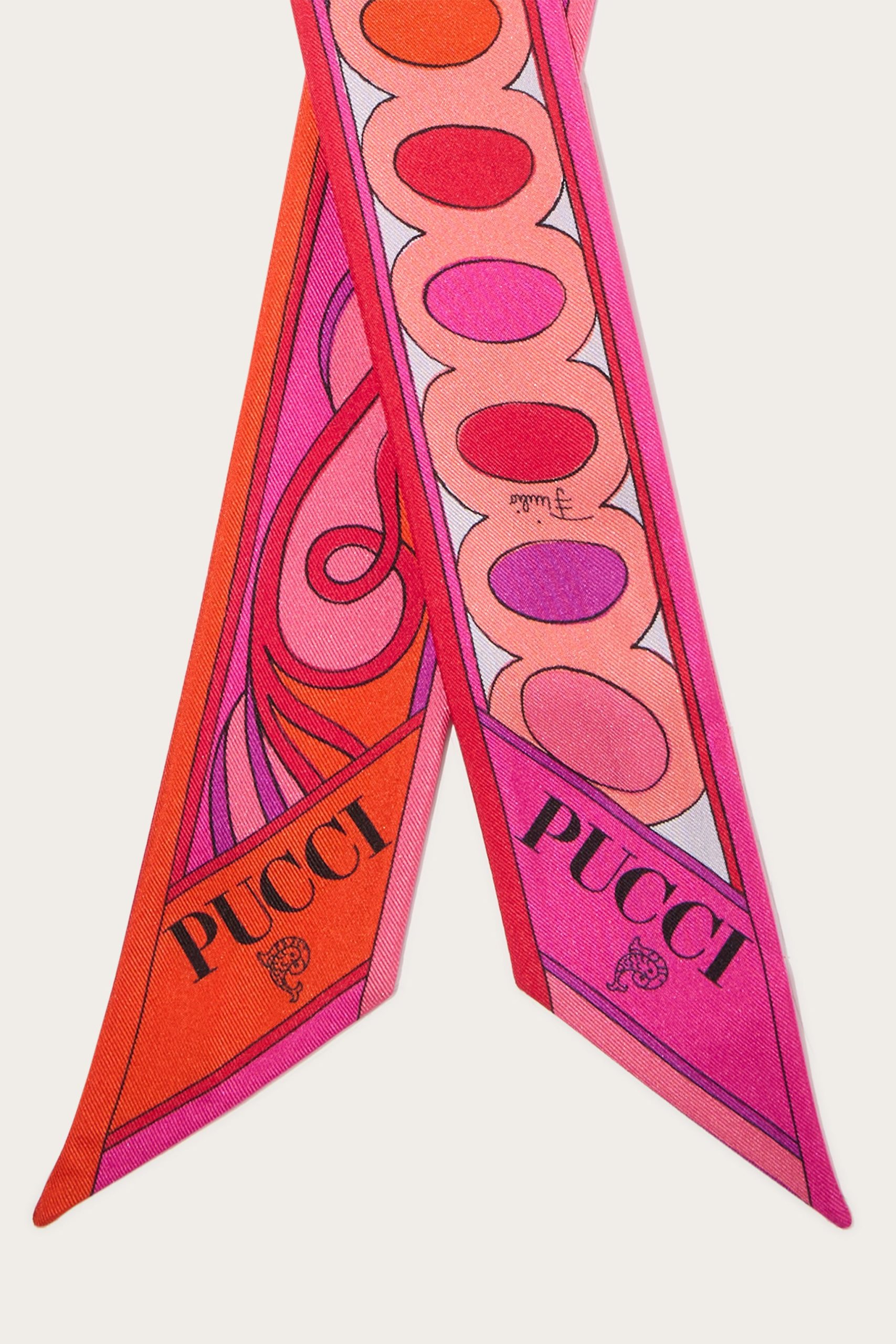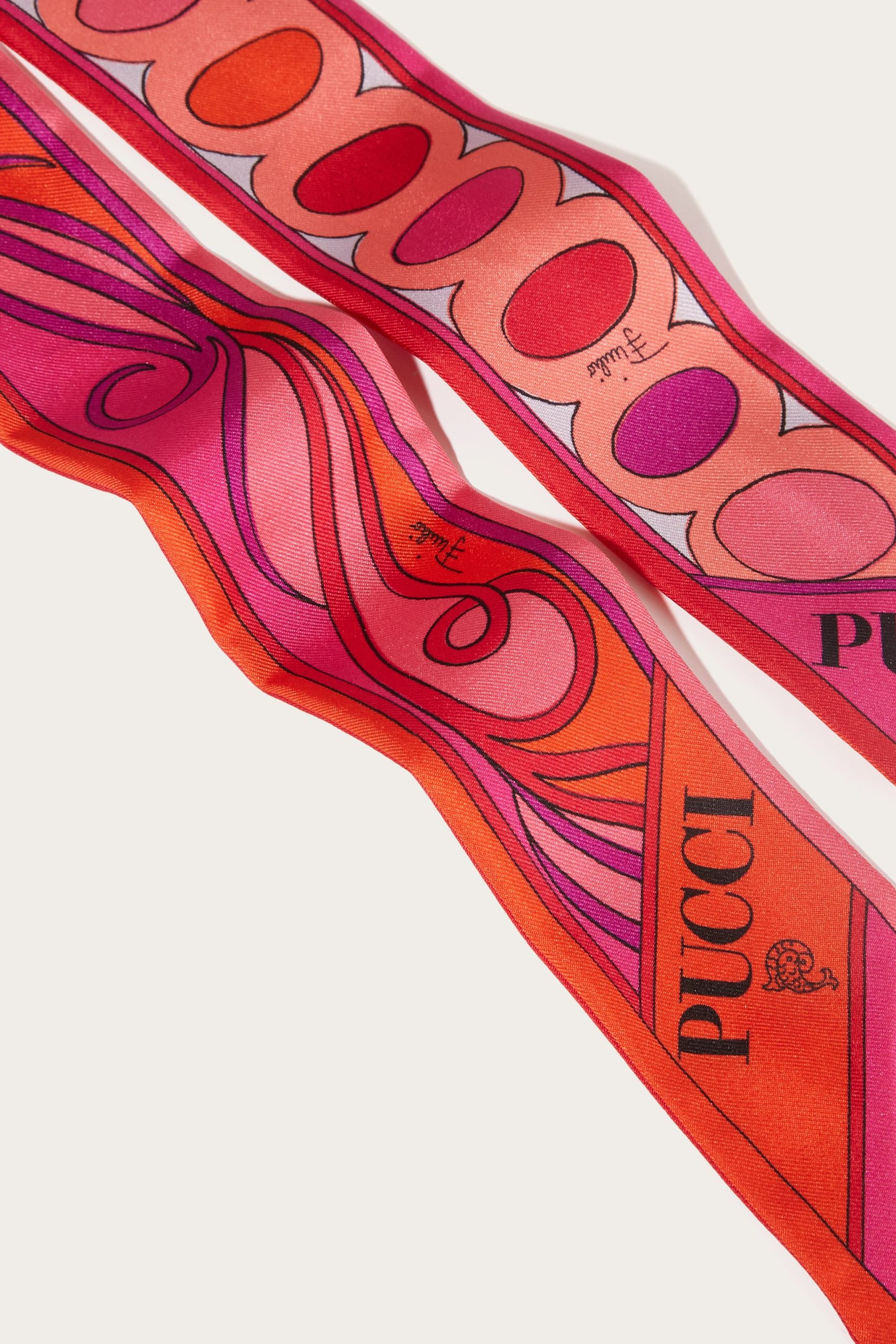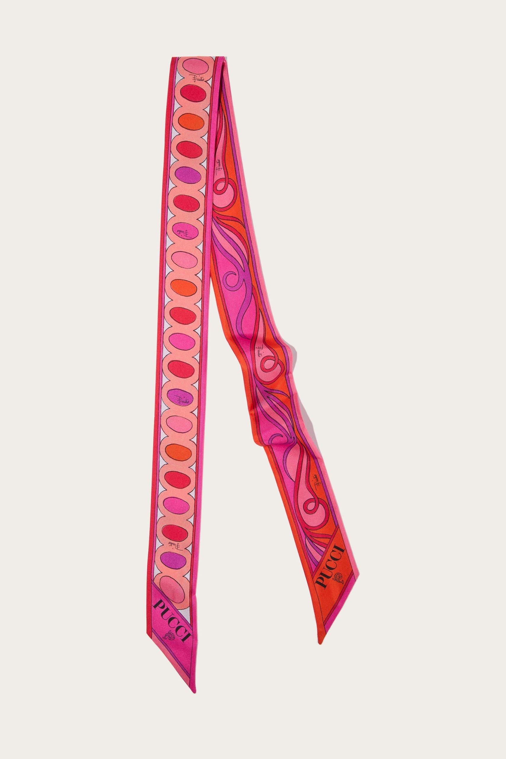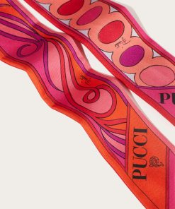 A versatile and refined accessory perfect for adding a distinctive touch to any outfit. Featuring a unique combination of iconic prints, this silk twill celebrates the art and energy of Pucci design. Ideal to wear as a headband, around the neck or knotted to a handbag for a touch of personalized elegance.