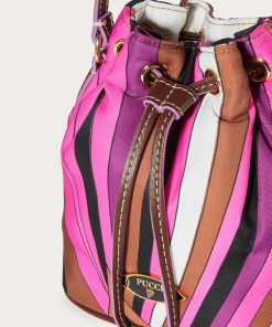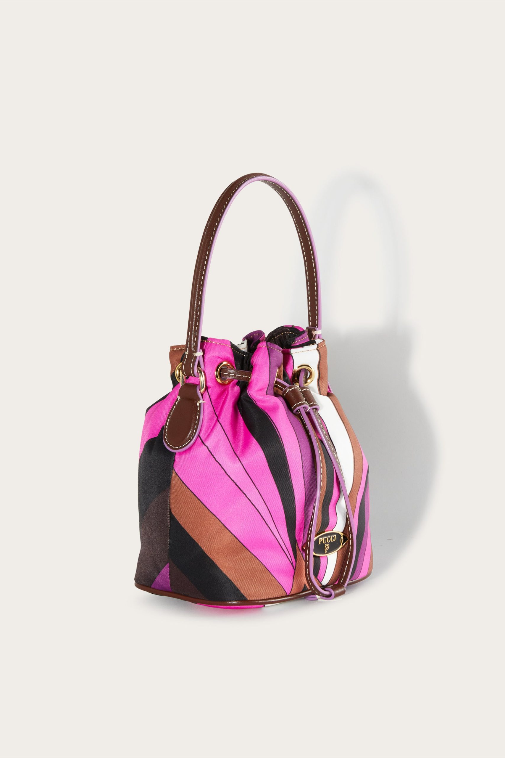 With a medley of rich colours and curves, Pucci’s Iride print invigorates this bucket bag to an exhilarating effect. It’s crafted from nylon with smooth leather trims and is finished with a logo plaque at the front.
