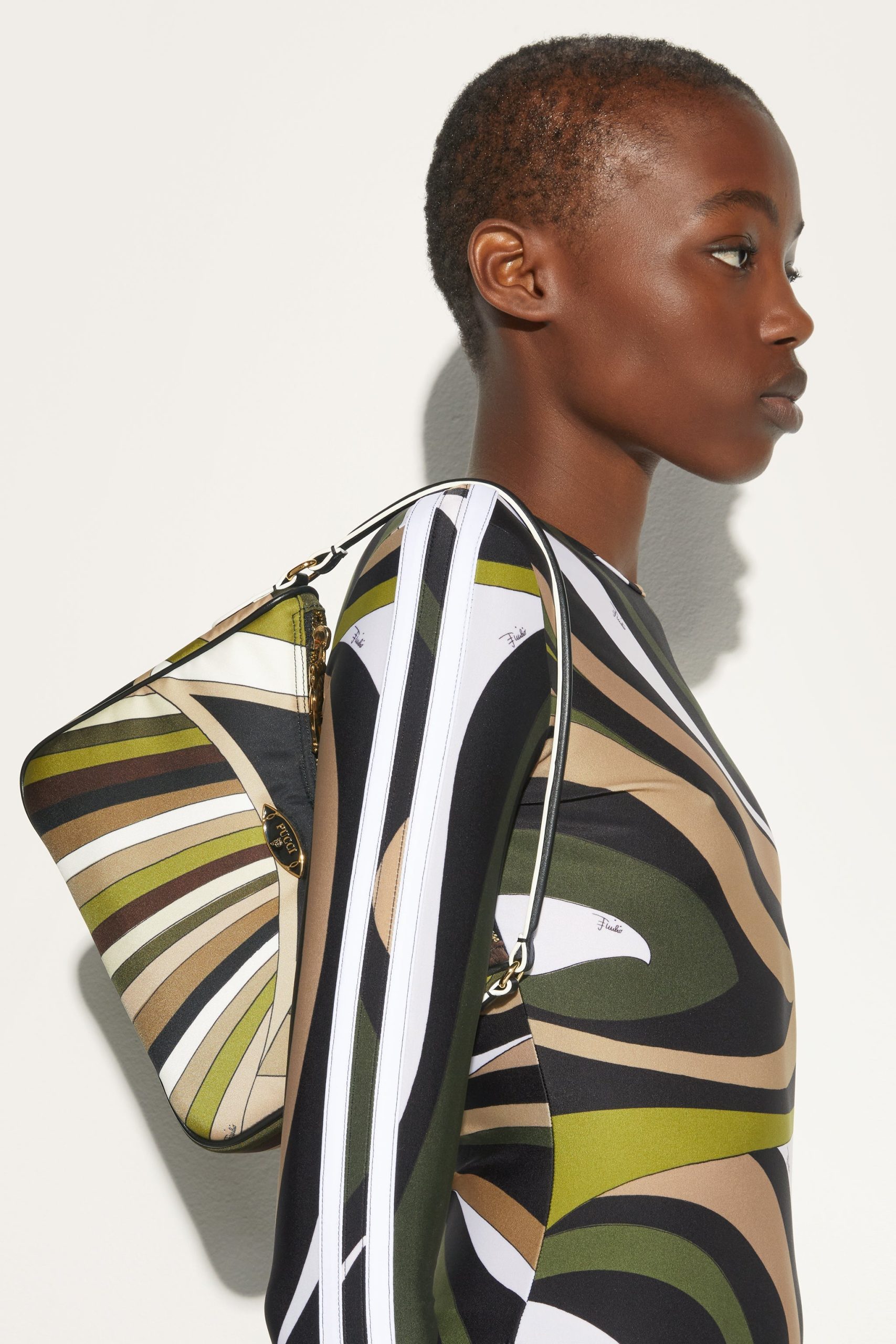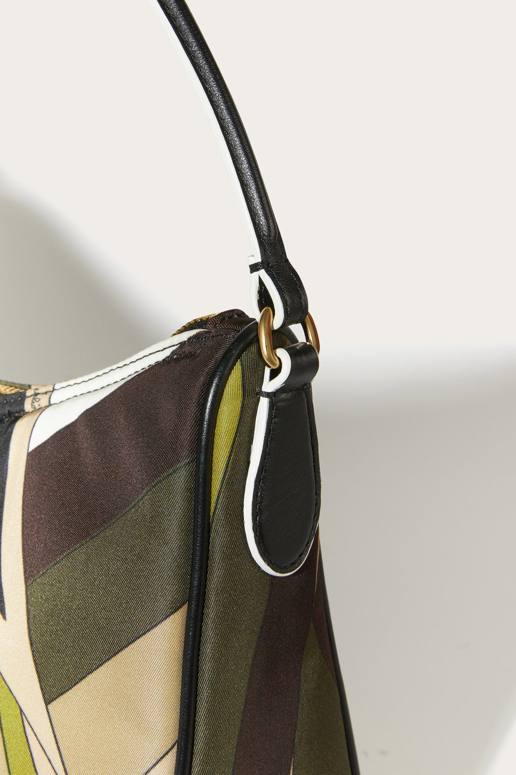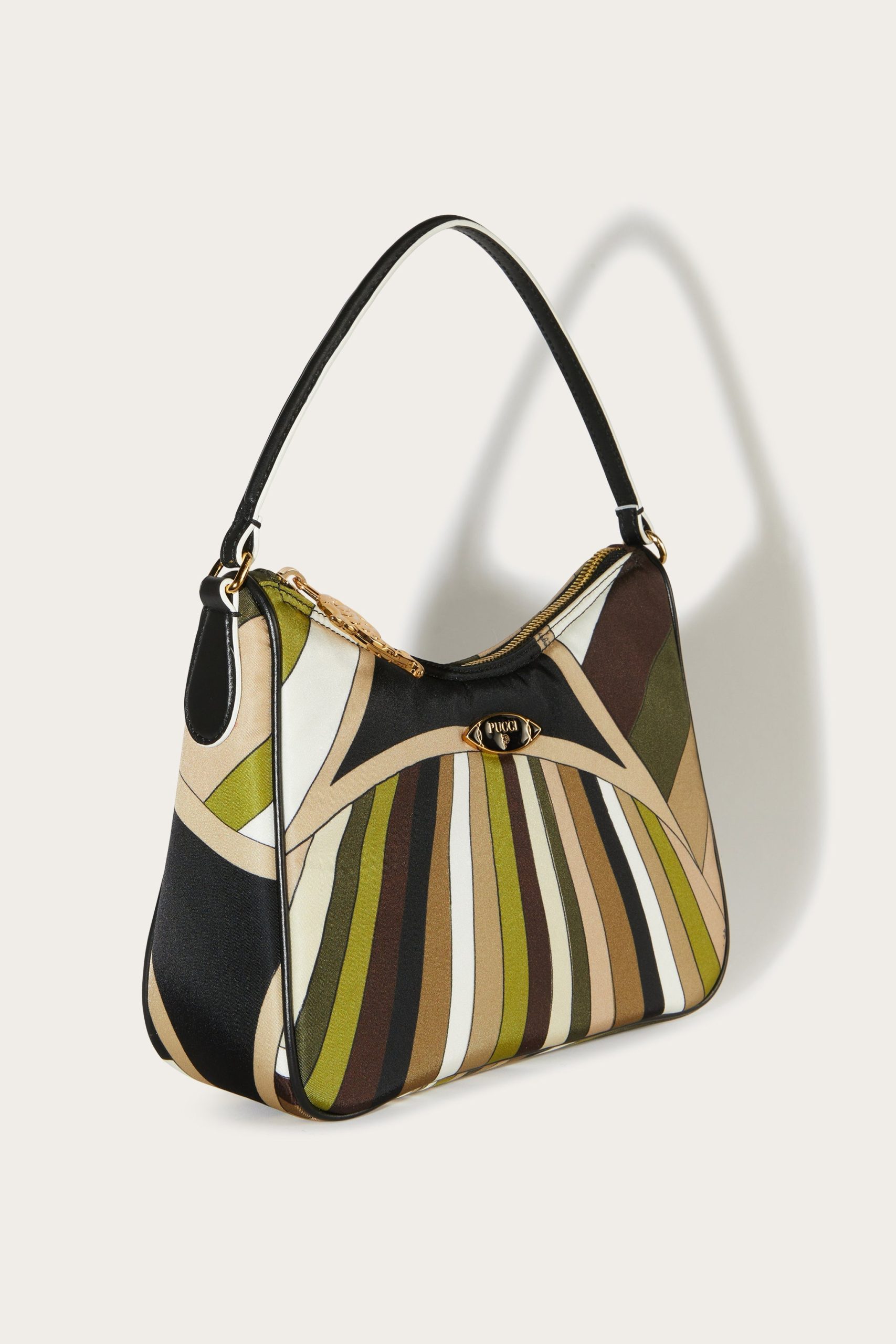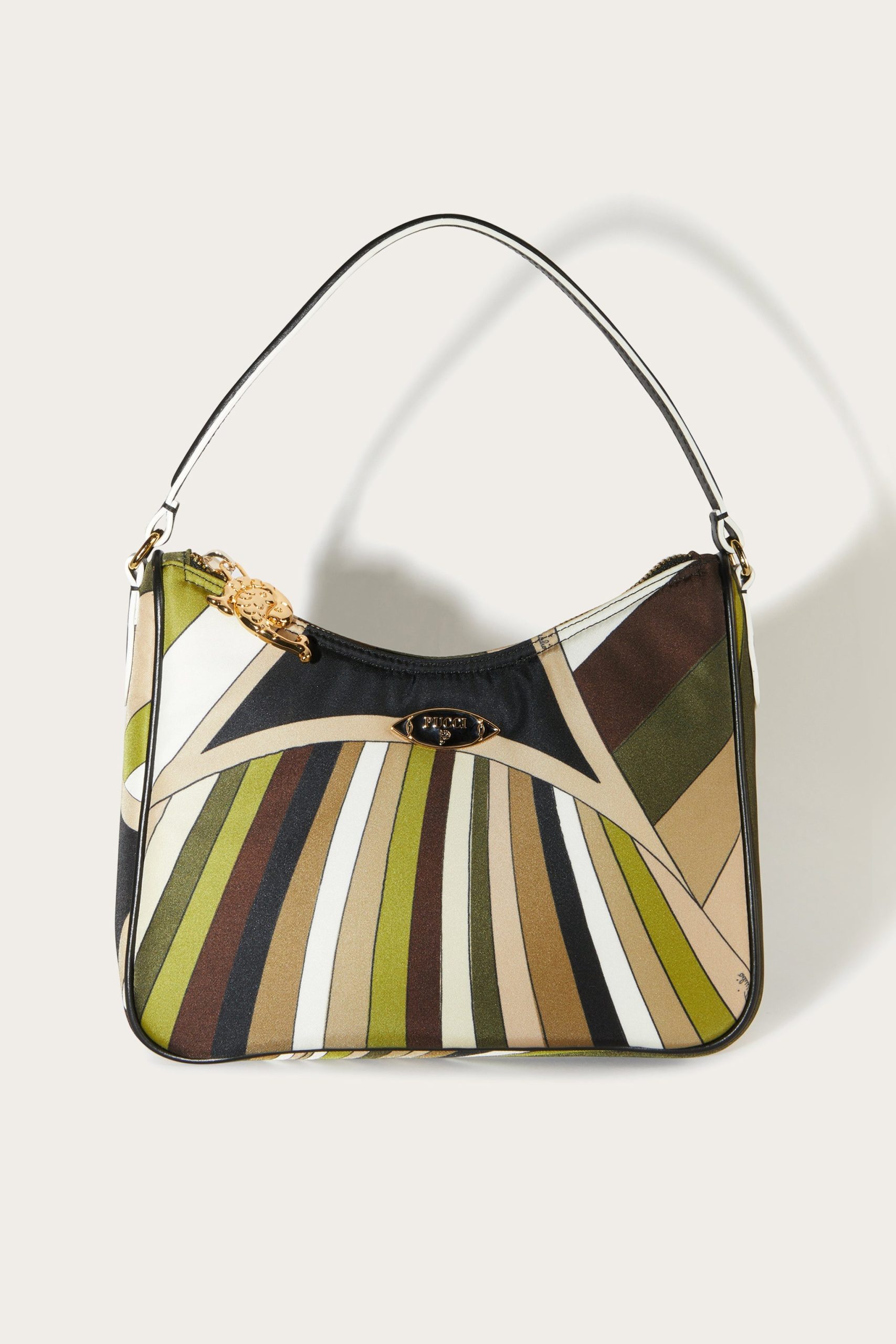 A perfect blend of practicality and contemporary style, the padded nylon shoulder bag is the ideal accessory for those who love functional design that doesn’t sacrifice unique details. Printed nylon gives it a modern, durable aesthetic, while nappa or cowhide leather trim adds a touch of handcrafted luxury.Featuring a detachable adjustable shoulder strap, a convenient handle and an interior flat pocket, this bag is designed to accompany you in style from daily routine to leisure. The Pesci-shaped zipper pull and enameled Pucci plaque are the hallmarks that make this a unique accessory, perfect for those who like to stand out with personality.