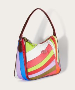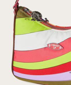 Pucci’s storied Iride print wraps the minimalist silhouette of this shoulder bag in rich colour and elliptical pattern. It’s crafted from nylon with a leather shoulder strap and detailed with a logo plaque at the front and an intertwined fish charm at the zip pull.