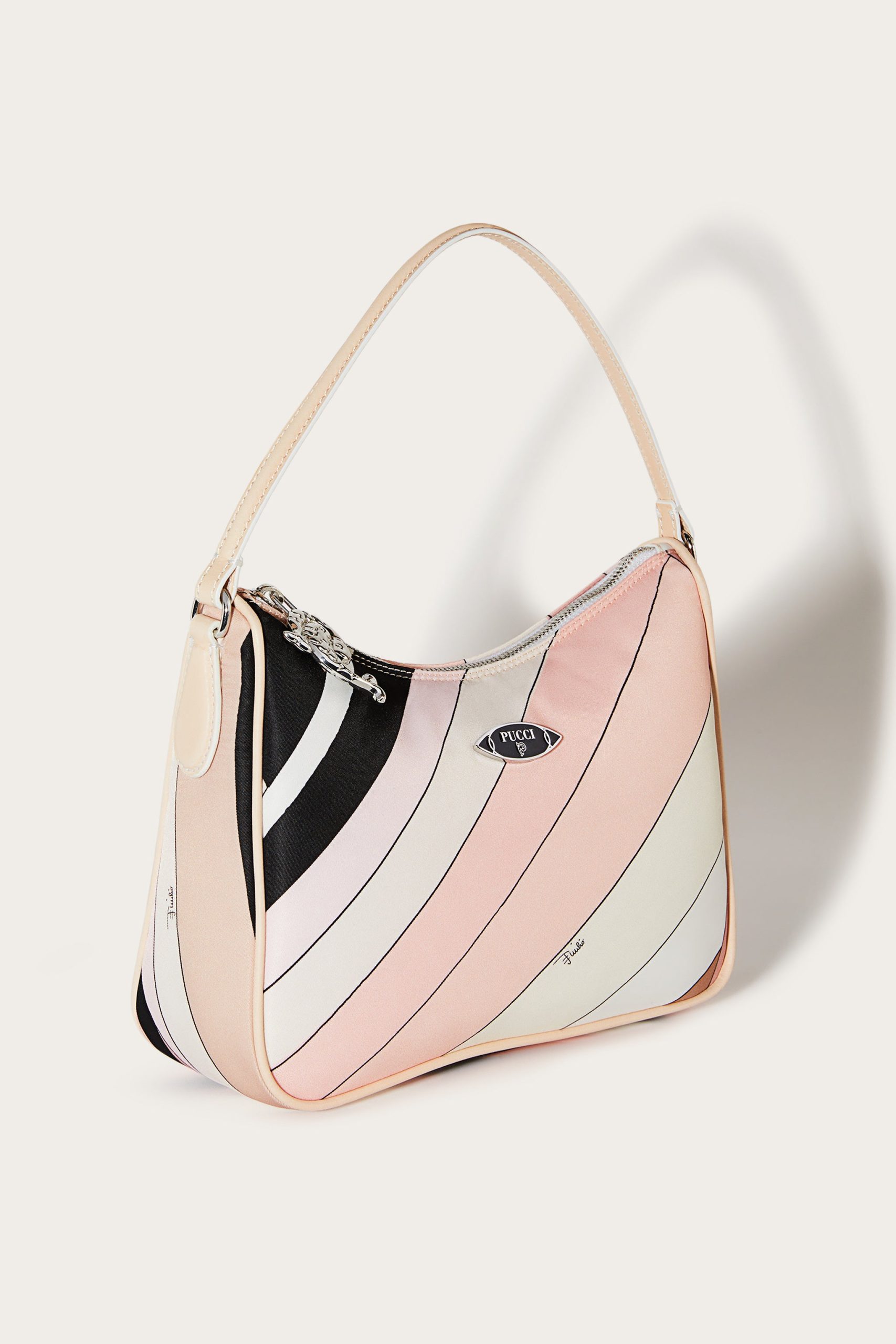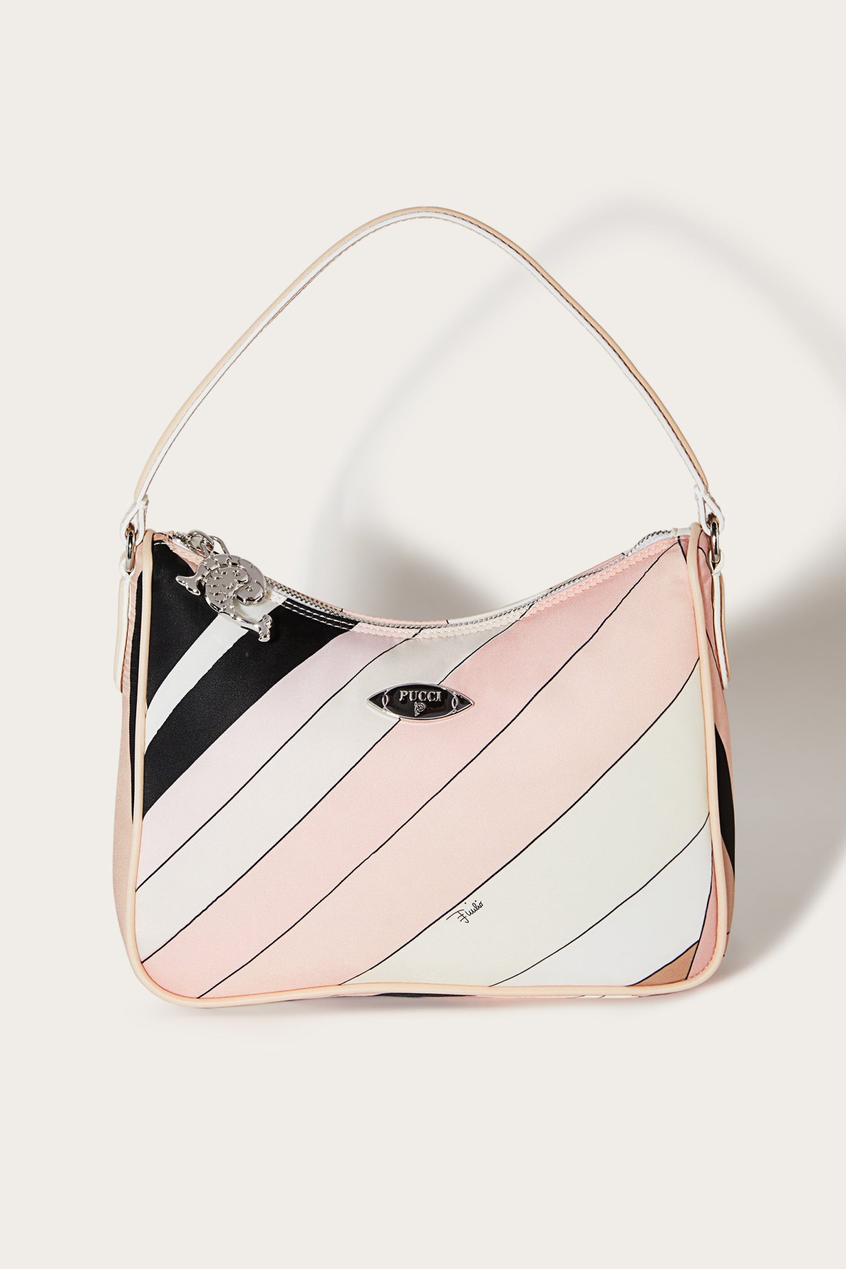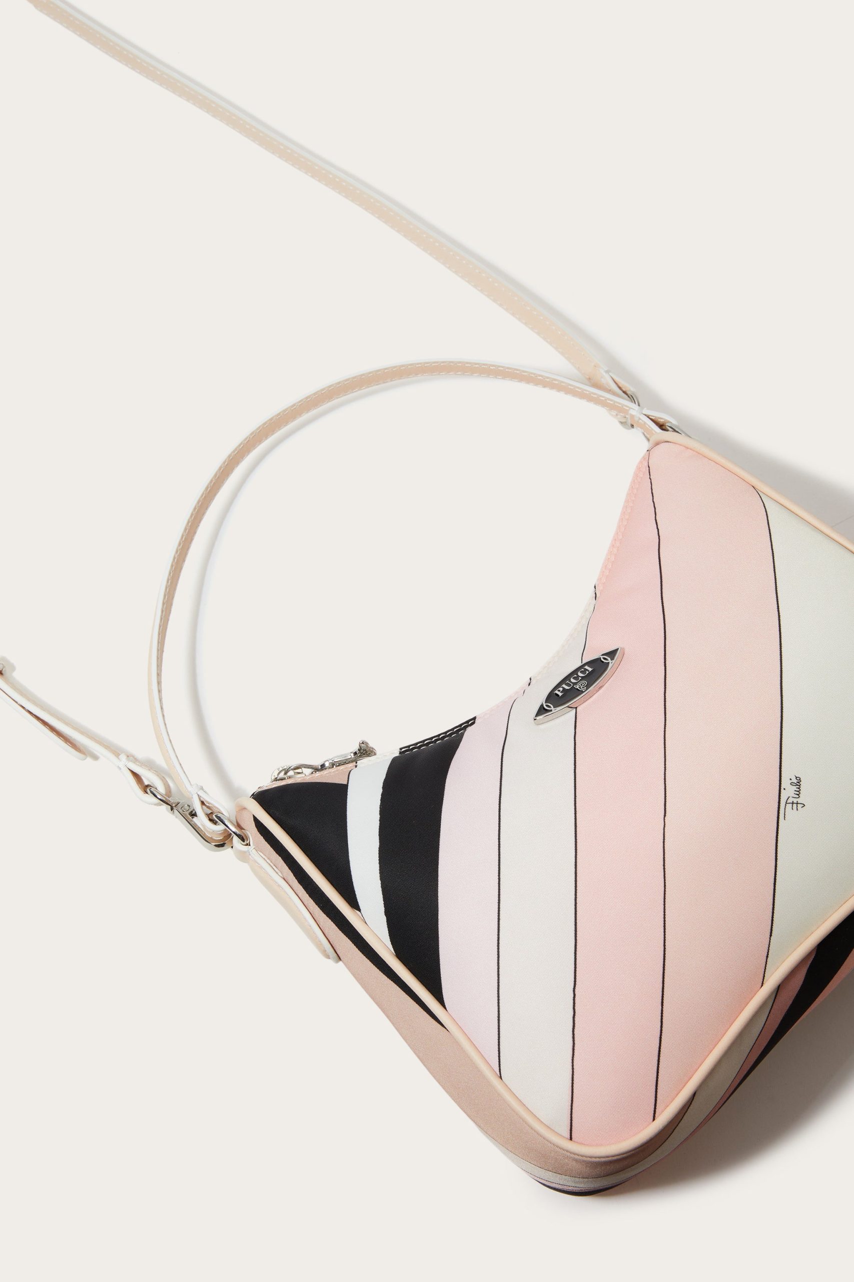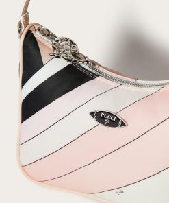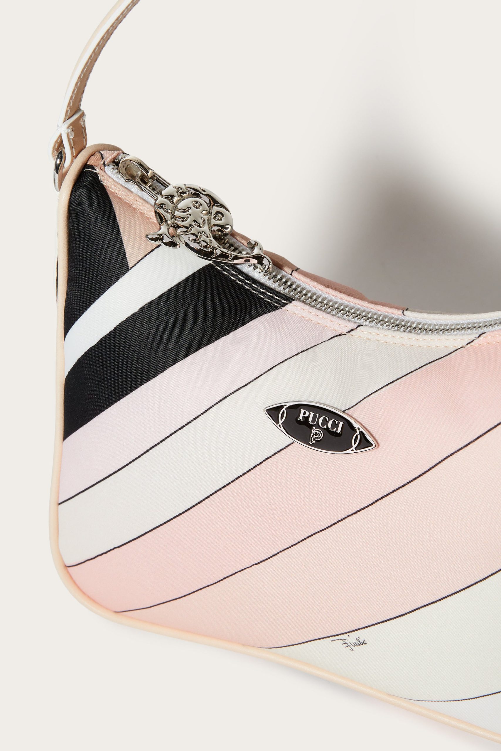 A perfect blend of practicality and contemporary style, the padded nylon shoulder bag is the ideal accessory for those who love functional design that doesn’t sacrifice unique details. Printed nylon gives it a modern, durable aesthetic, while nappa or cowhide leather trim adds a touch of handcrafted luxury.Featuring a detachable adjustable shoulder strap, a convenient handle and an interior flat pocket, this bag is designed to accompany you in style from daily routine to leisure. The Pesci-shaped zipper pull and enameled Pucci plaque are the hallmarks that make this a unique accessory, perfect for those who like to stand out with personality.