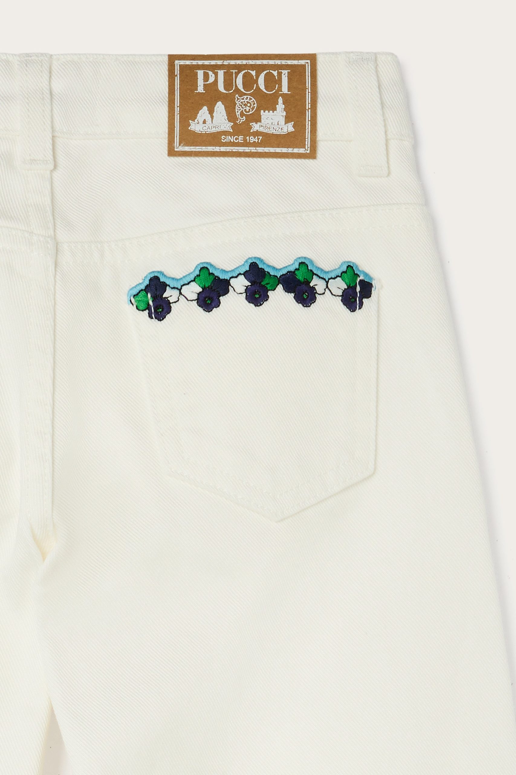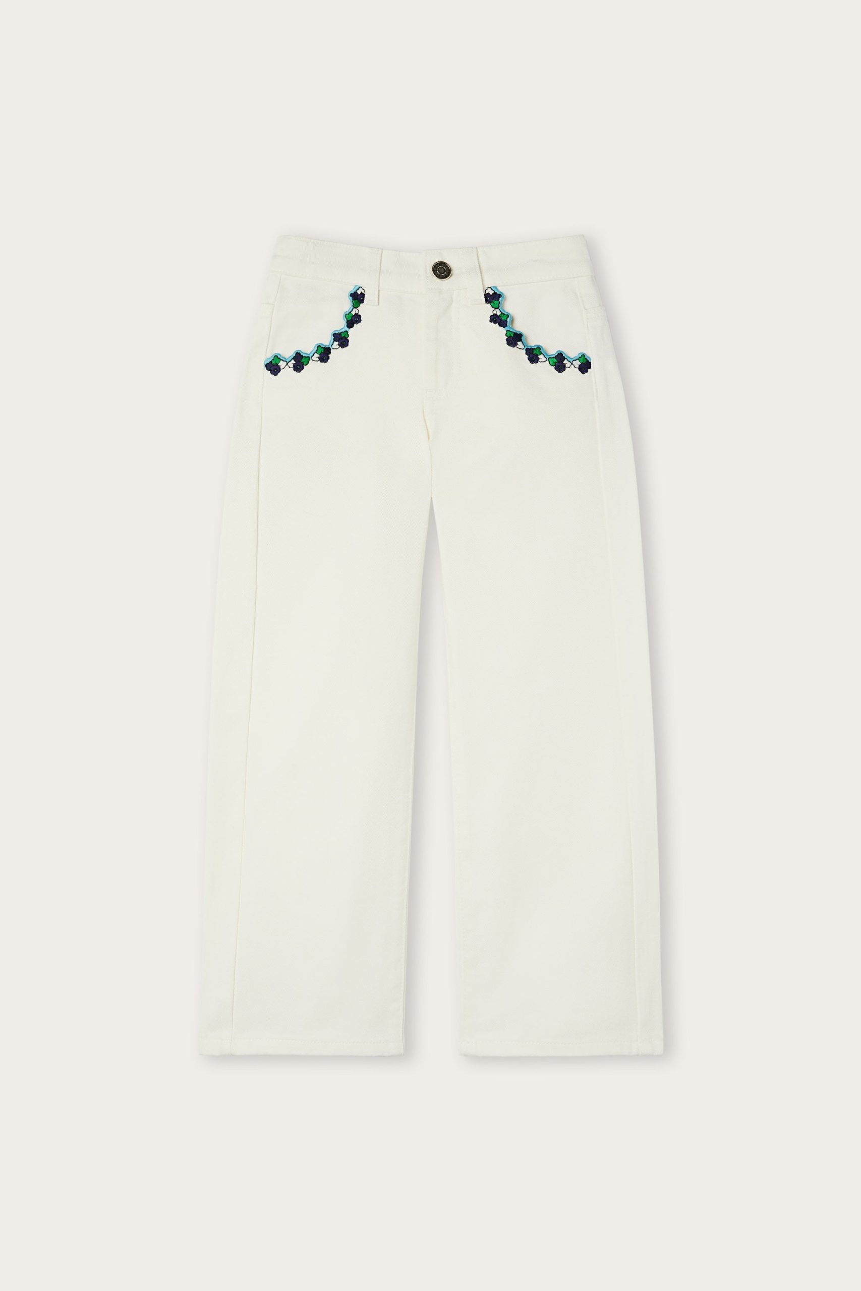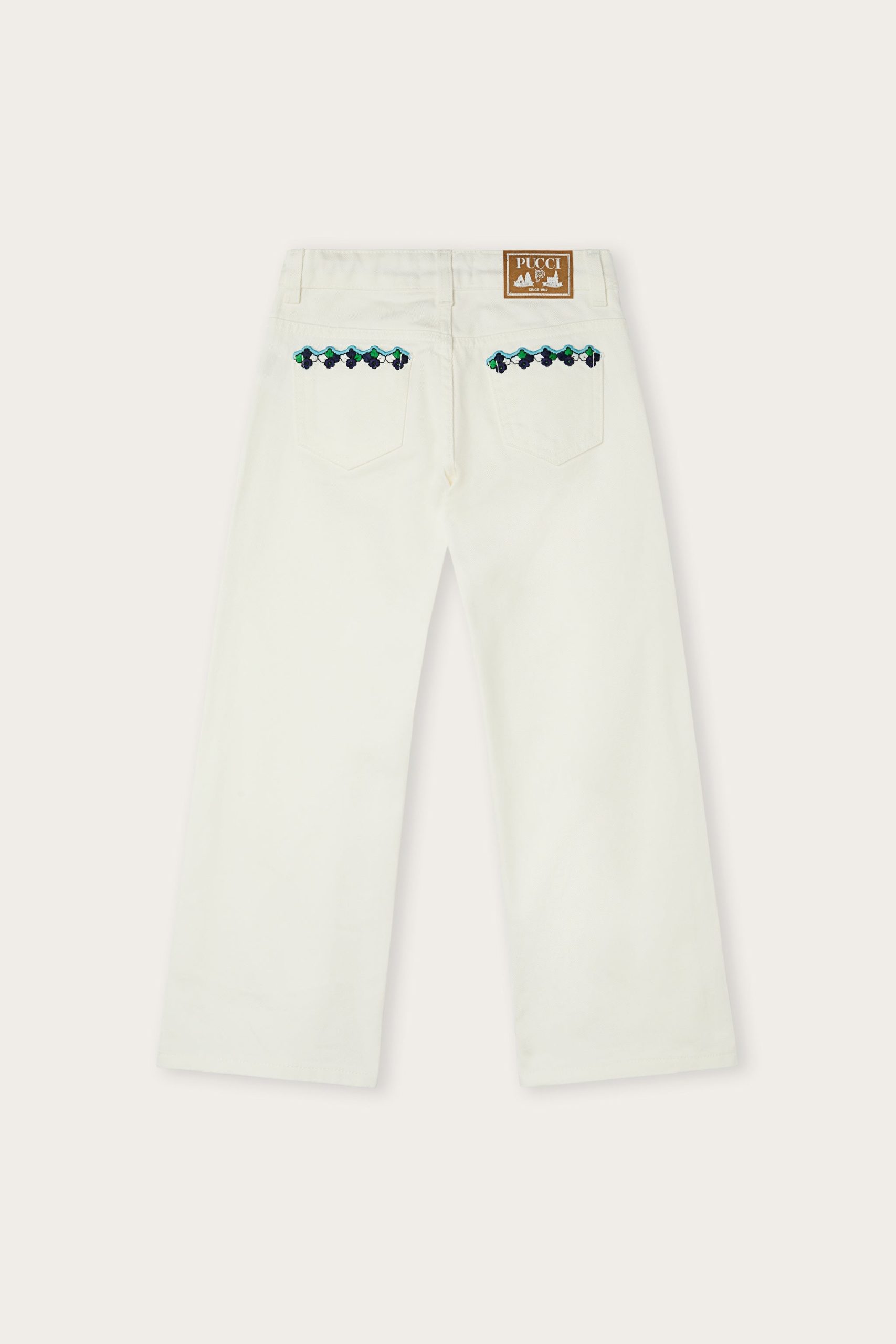 Comfortable, versatile and with a retro feel. These 100% cotton pants have a clean silhouette and a slightly flared leg, perfect for boosting the silhouette with a casual yet refined style.The stretch fabric ensures a practical and comfortable fit, while embroidered pocket edges add a refined detail, ideal for completing the look with personality.