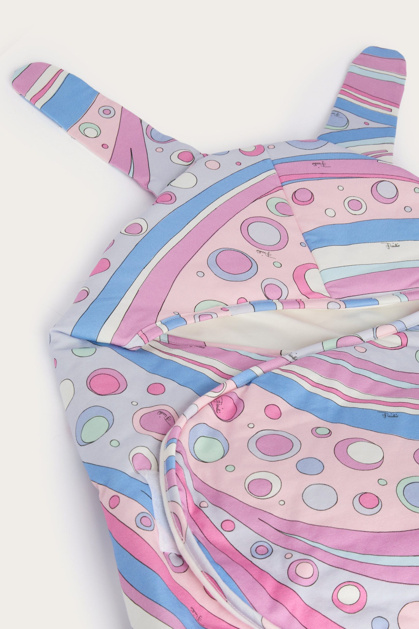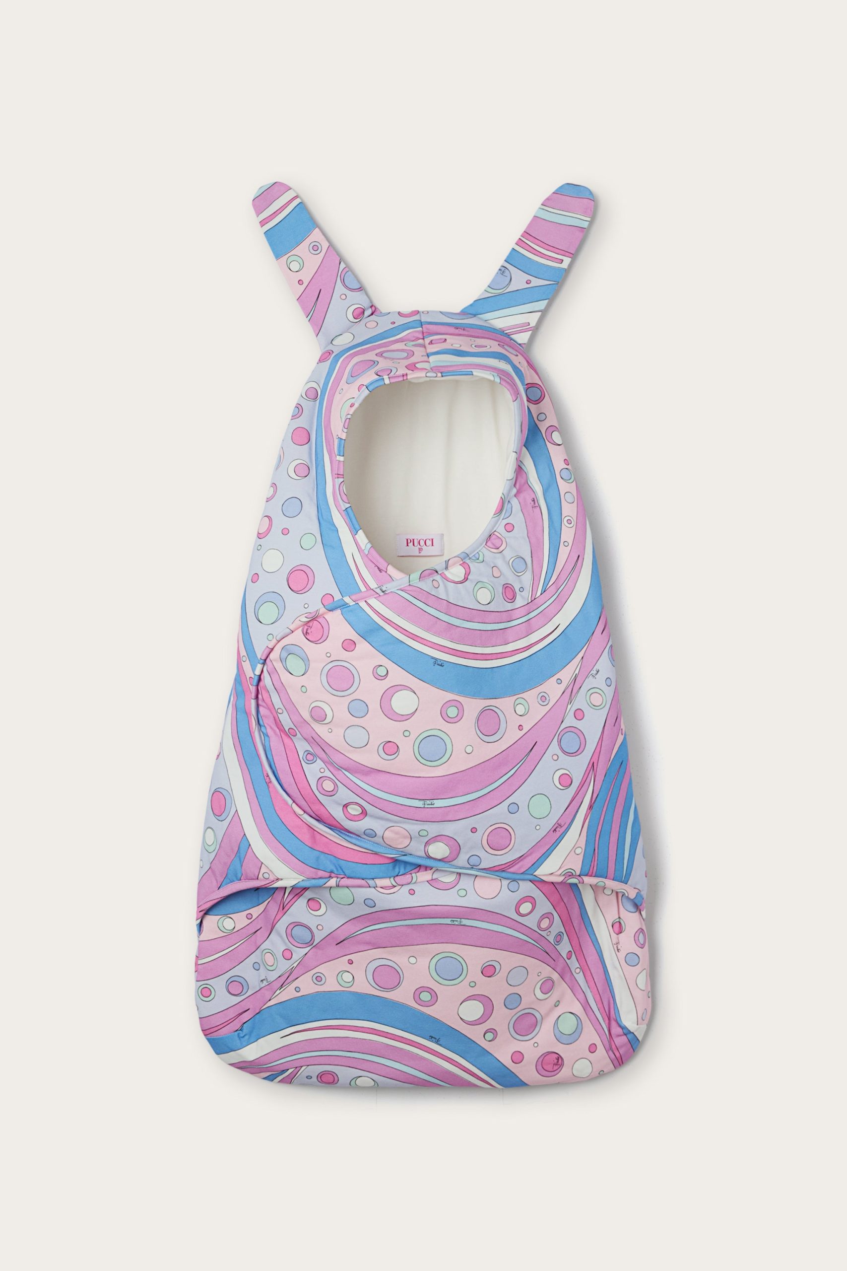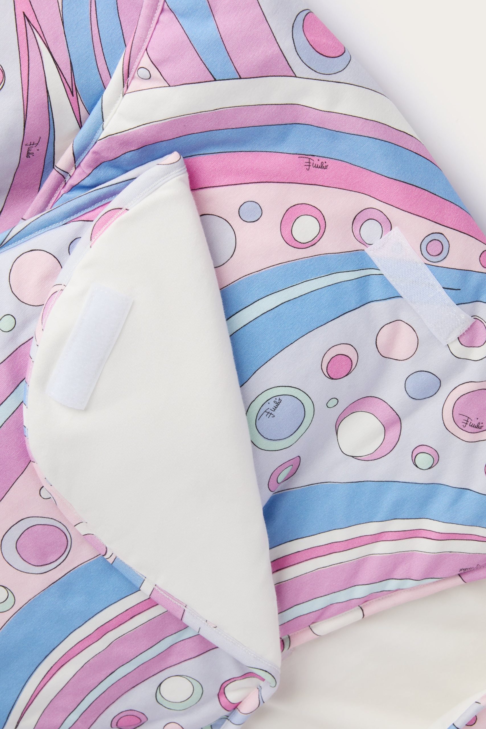 Cozy as a hug, this stretch jersey baby nest is designed to wrap with softness and color. The stretch fabric provides a comfortable feel on baby’s delicate skin, while the Fontane print in shades of pink and multicolor lends a vibrant and iconic touch.Ideal for cuddles, walks or naps, it is an accessory that combines functionality and style with the unmistakable Pucci spirit.