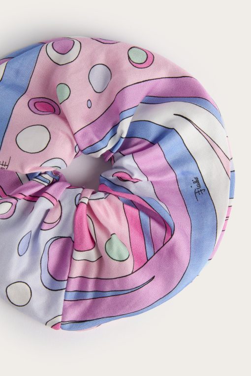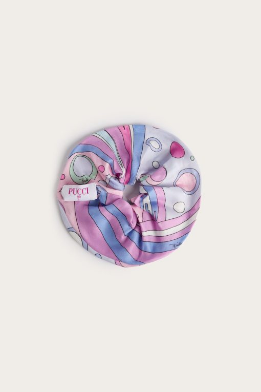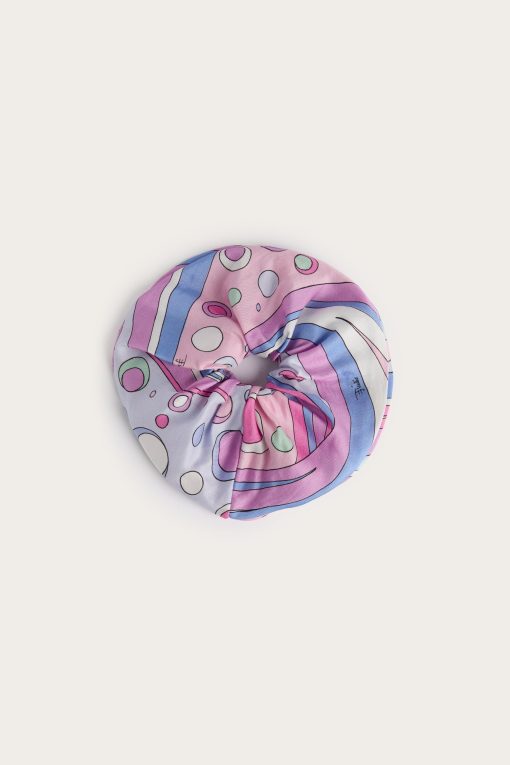 A little accessory full of personality: this scrunchie is made of 100% viscose and decorated with the vibrant Fontane print in pink and multicolor, to add a touch of color and fantasy to any hairstyle.Soft and delicate, it is perfect for little ones’ hair and for completing looks with the playful and refined spirit typical of the Pucci world.
