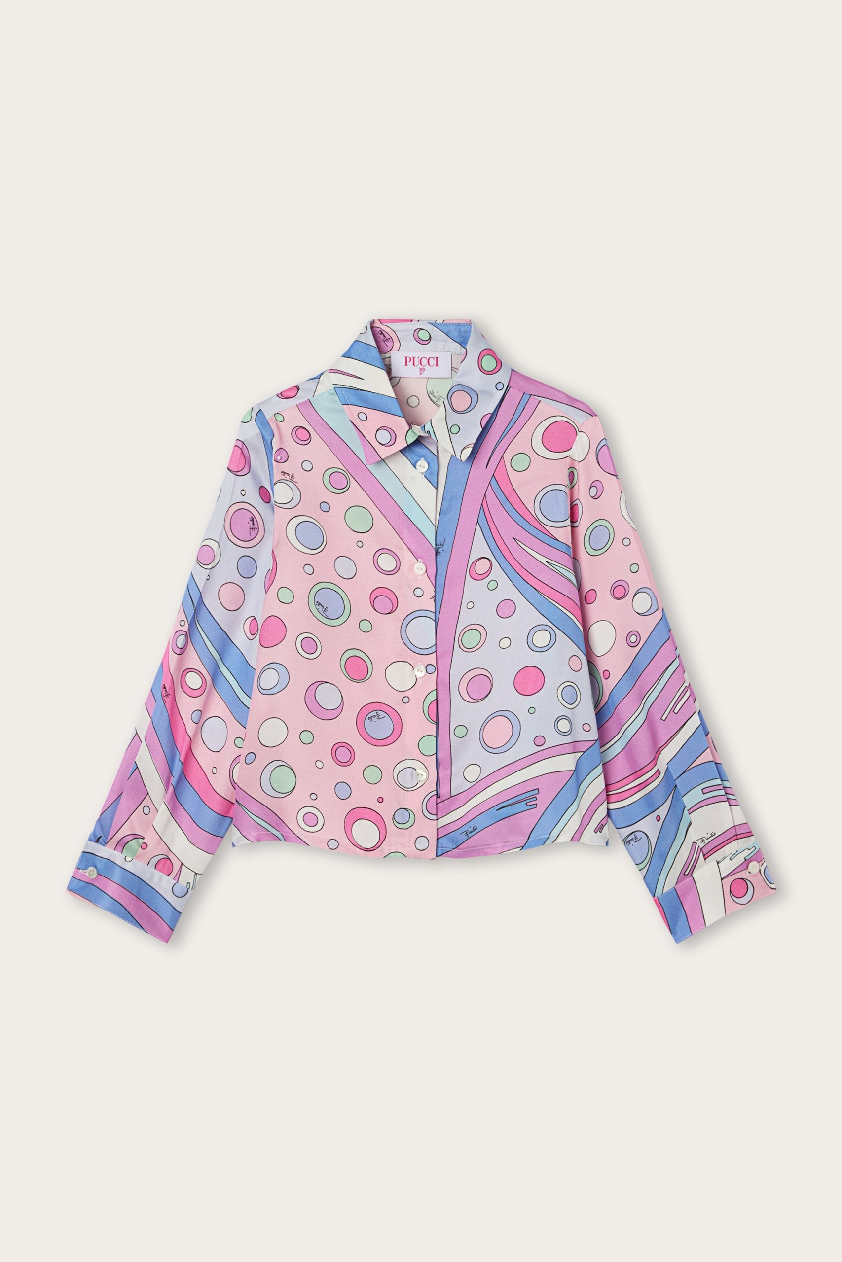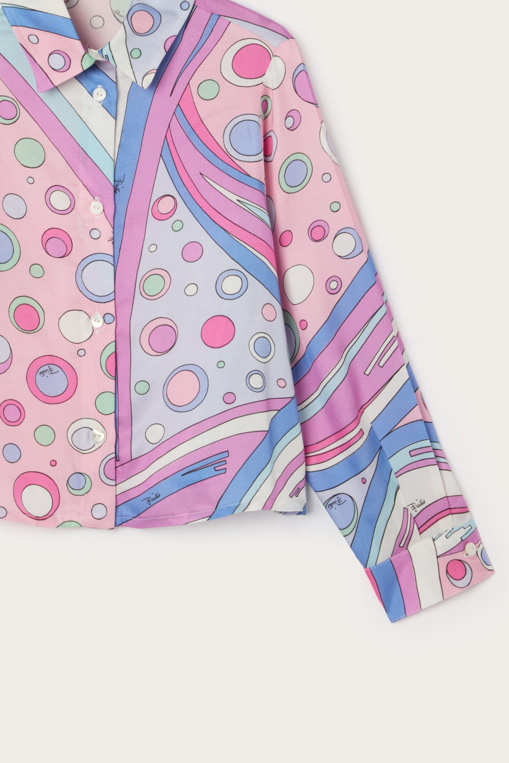Colorful, flowing and full of personality. The Fontane print in shades of pink and multicolor makes this shirt lively and instantly recognizable, with all the cheerfulness of Pucci style.Perfect for giving a creative touch to even the simplest outfits.