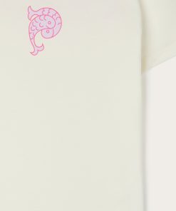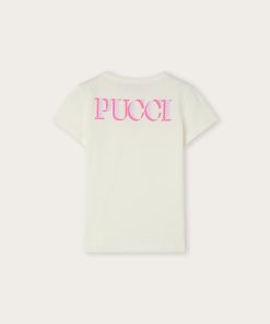 Simple but with a fun twist, this short-sleeved T-shirt with a comfy fit is perfect to accompany every day with style and comfort.On the front stands out the fish print, the iconic and playful symbol of the brand, while on the back the Pucci logo completes the design with a discreet but recognizable graphic touch. All in a soft ivory base in 100% cotton.
