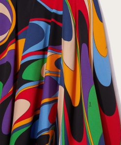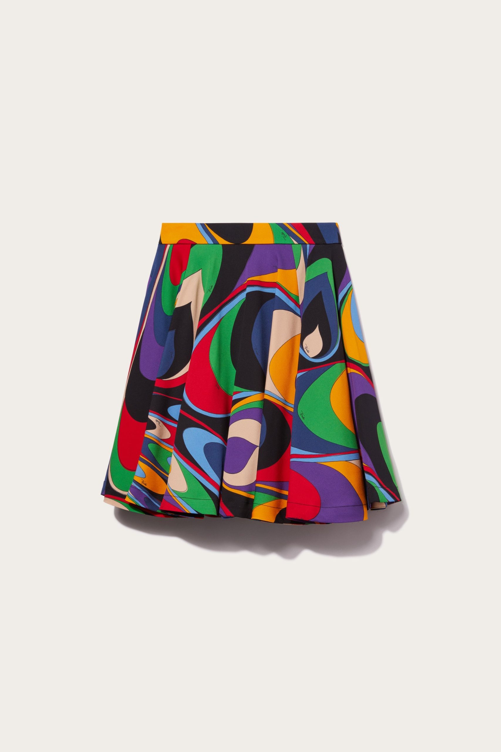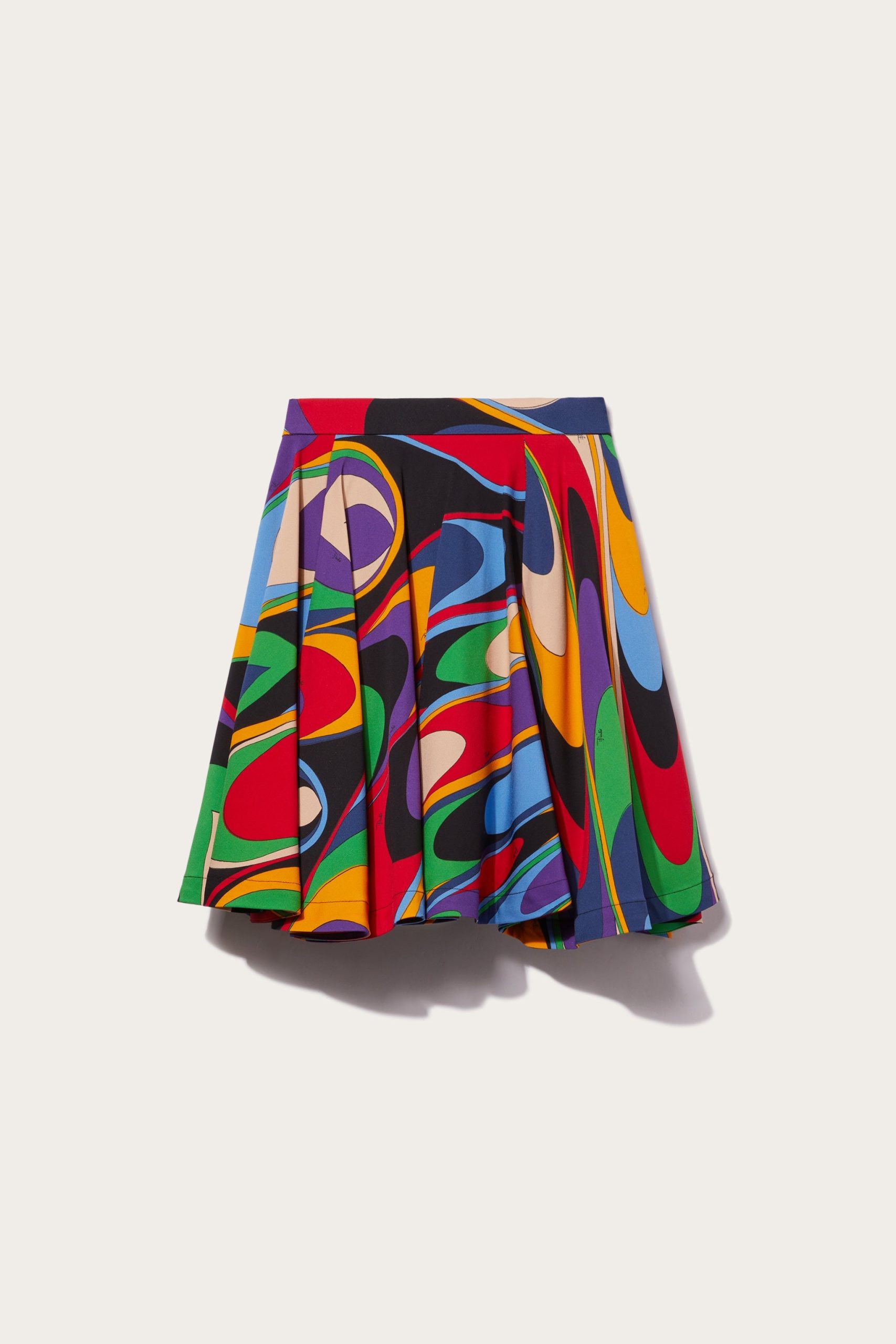 A testament to Pucci’s maximalist mood, the Onde print decorates this skirt in bold colours. It’s shaped with soft pleats, enhancing the piece’s energetic spirit.