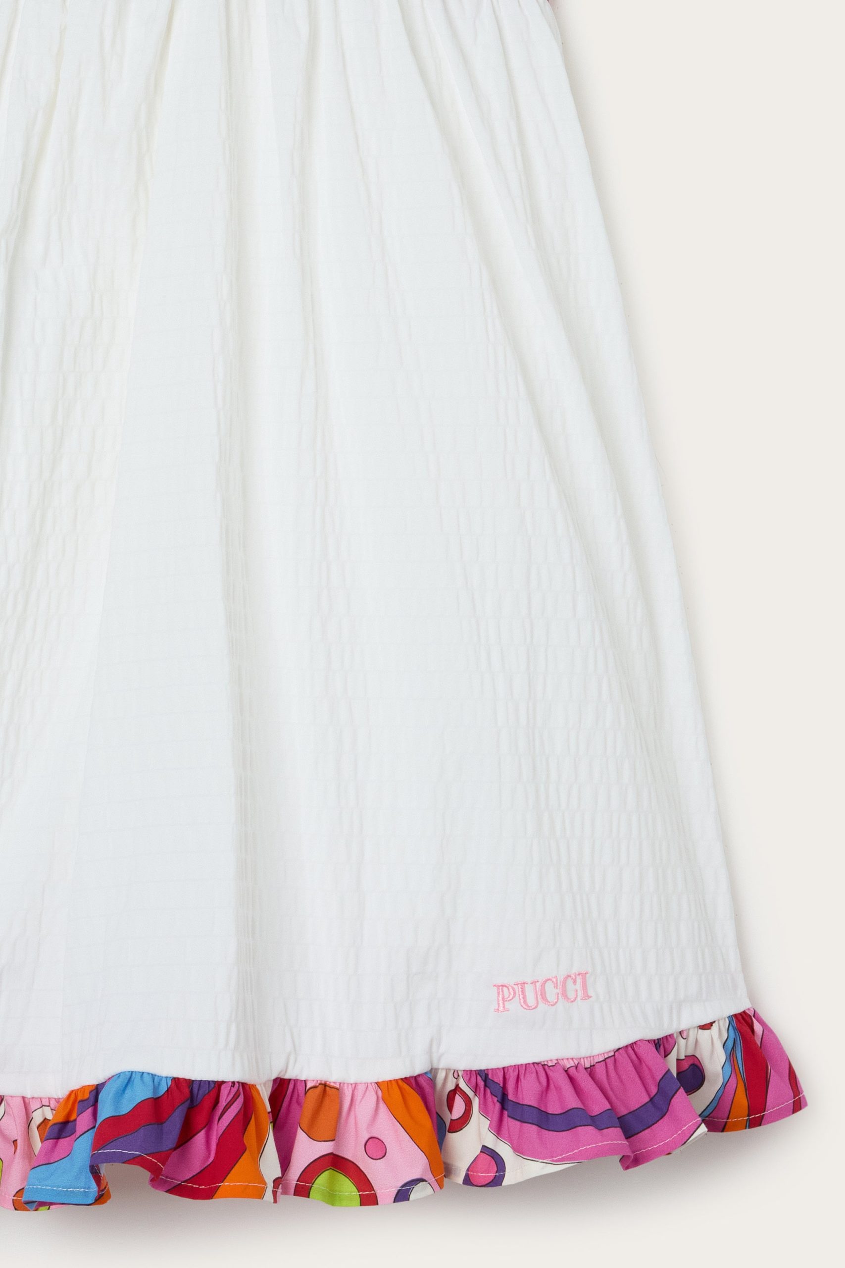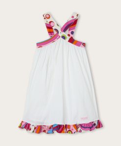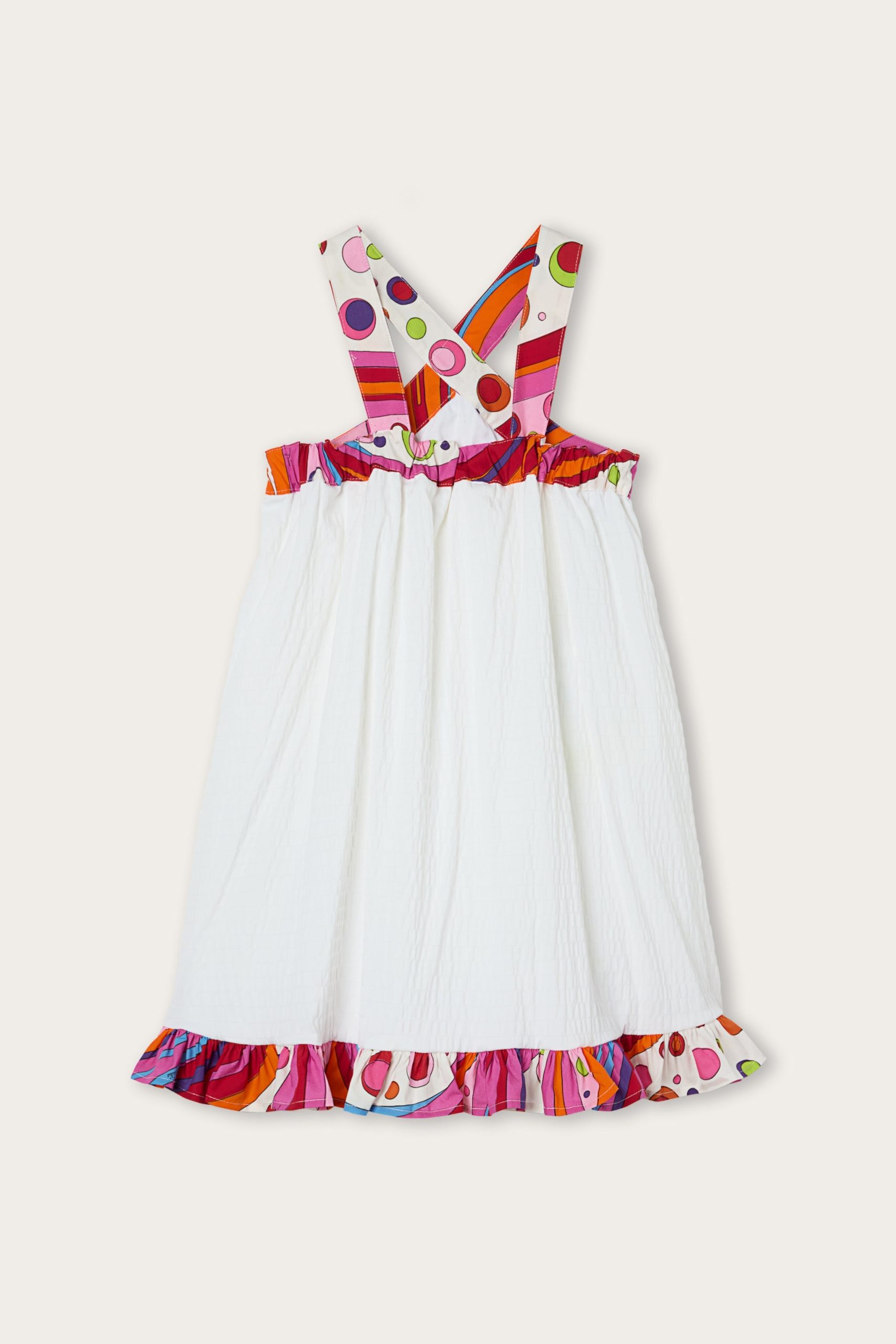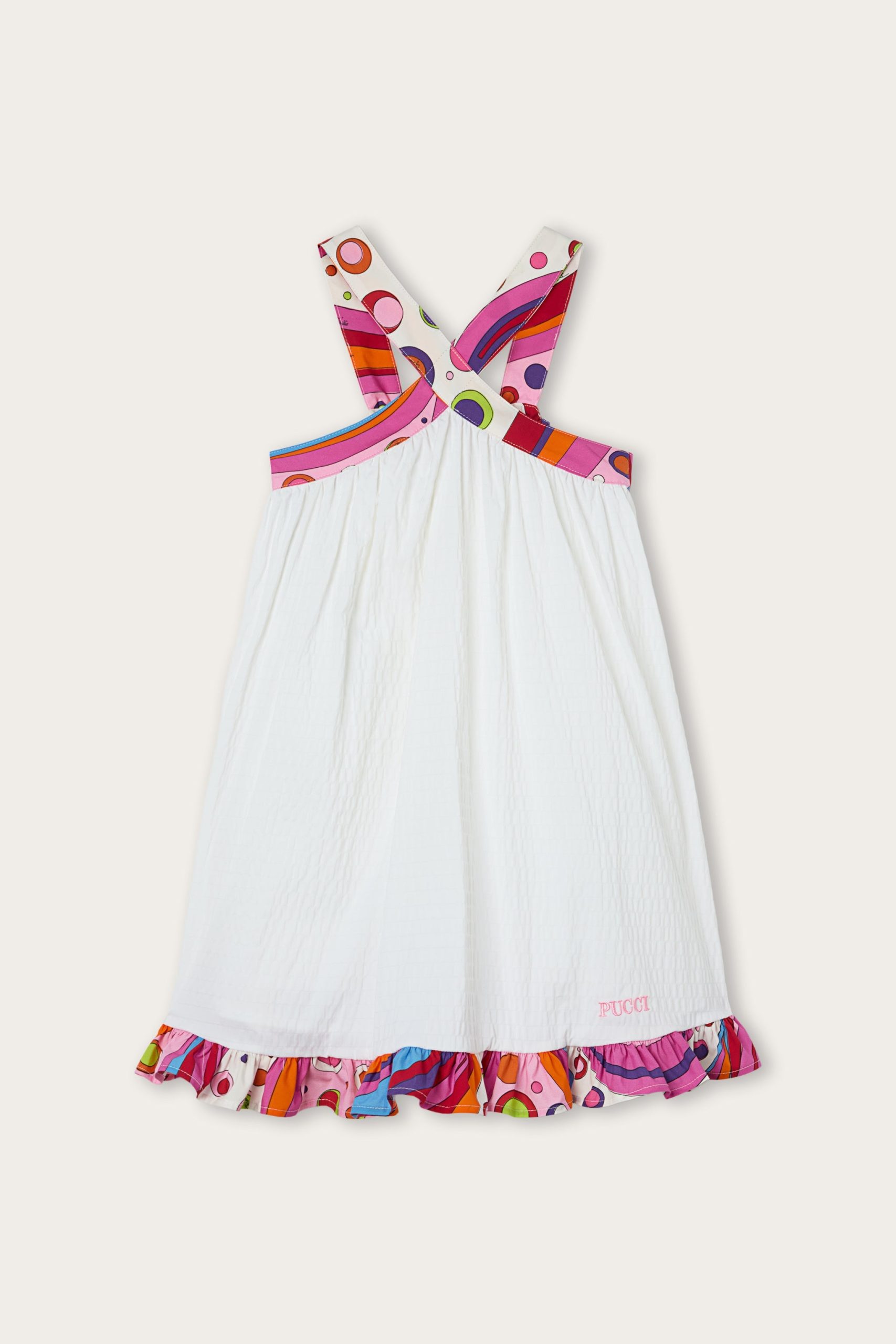 Light as a summer day, this patterned sundress is designed to accompany little ones’ adventures in style, thanks to the slightly ruched fabric and gathered edges that make it even more fun to wear.Pucci print details add a burst of color and personality for a fresh, comfortable and instantly recognizable look.