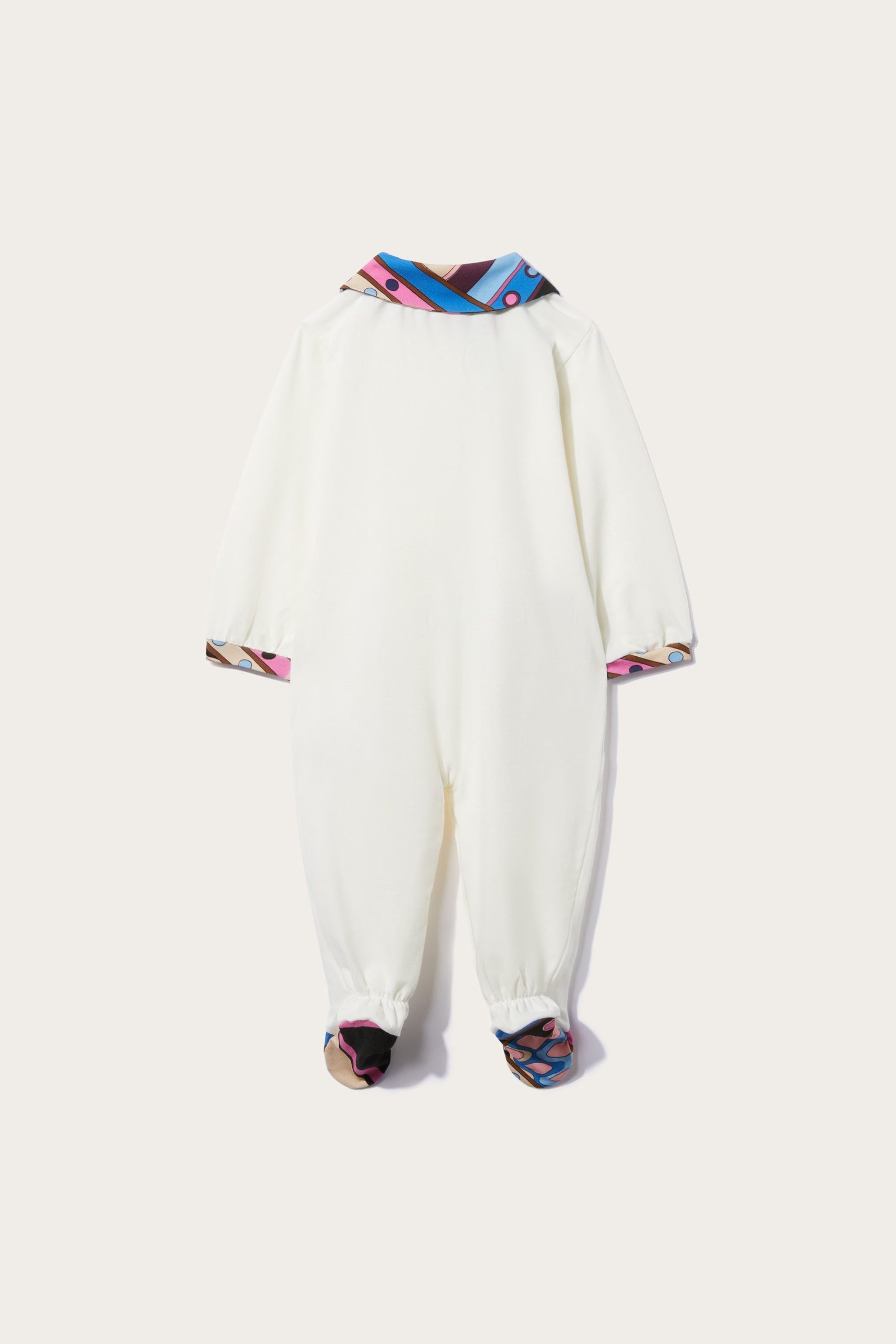 - Babygrow: Peter Pan collar, long sleeves, bows at front, button front and leg fastening