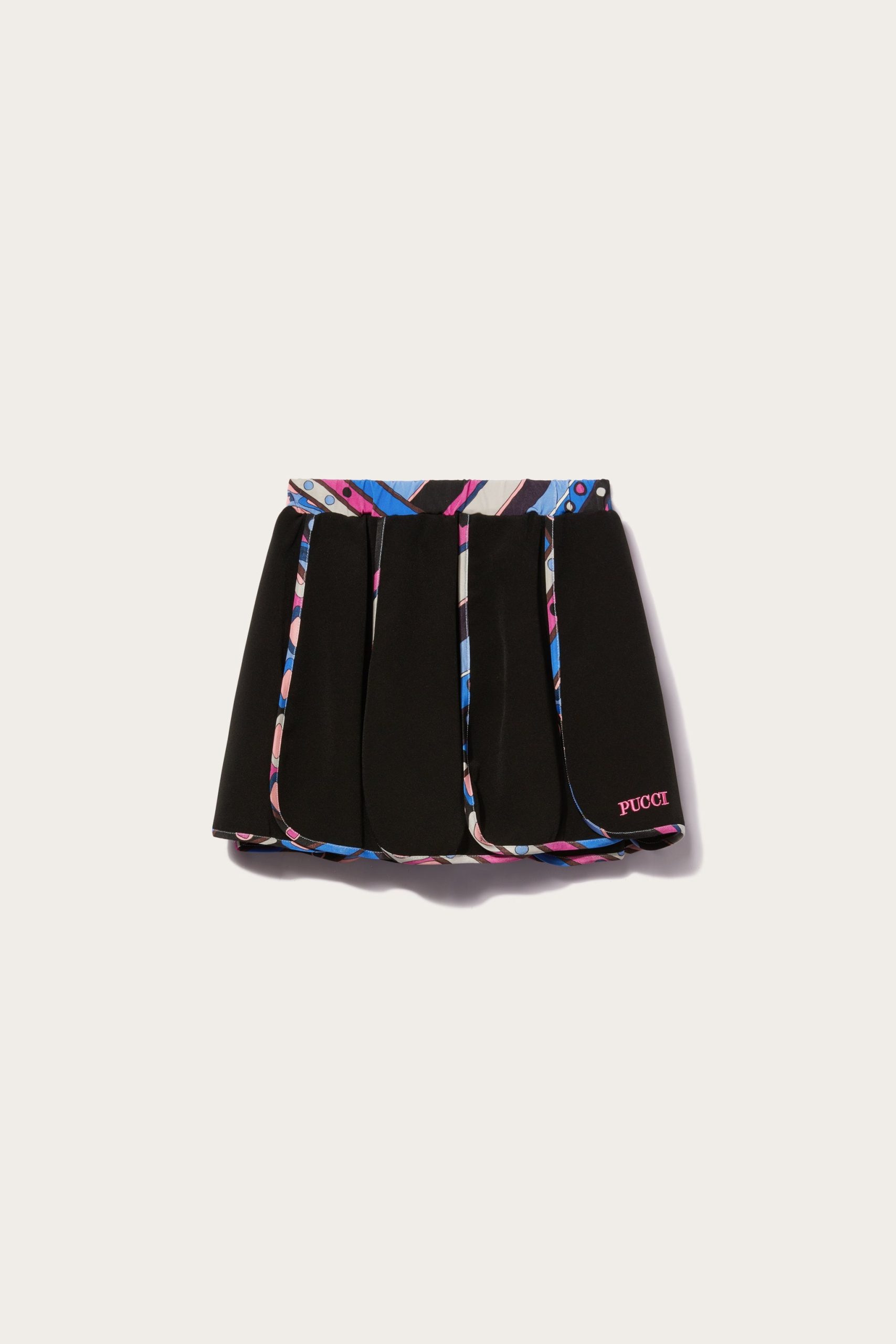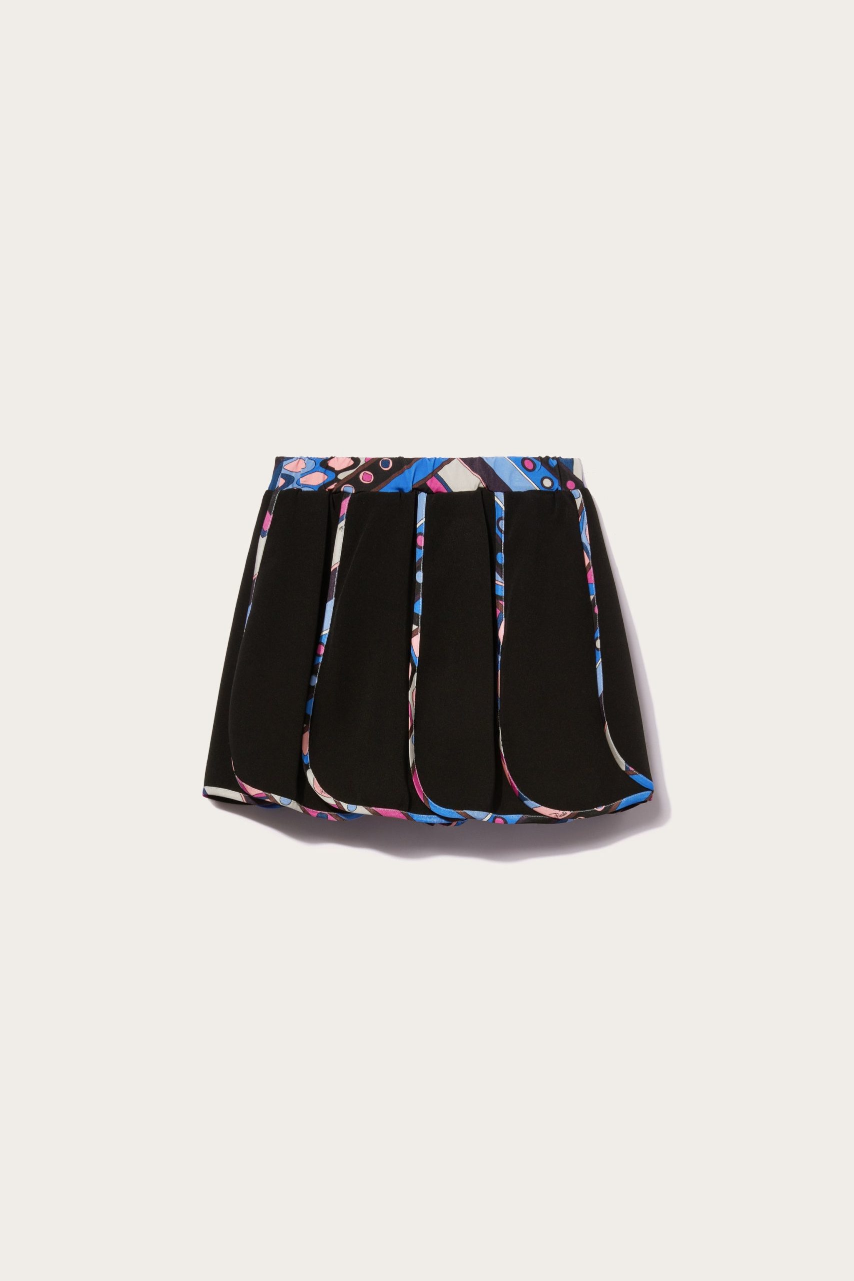 Vivara-print trims bring a lively splash of colour to this black skirt. It’s fitted with an elasticated waistband and artfully shaped with pleats.