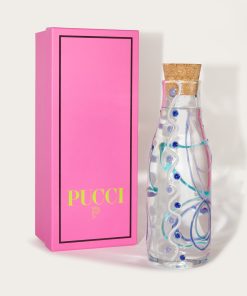 An ode to refined craftsmanship and timeless design. This hand-blown glass carafe is embellished with colored glass appliqués that echo the vibrant Pesci motif. Ideal for serving water, juice or cocktails during a social brunch or an outdoor summer dinner, in perfect Pucci style.