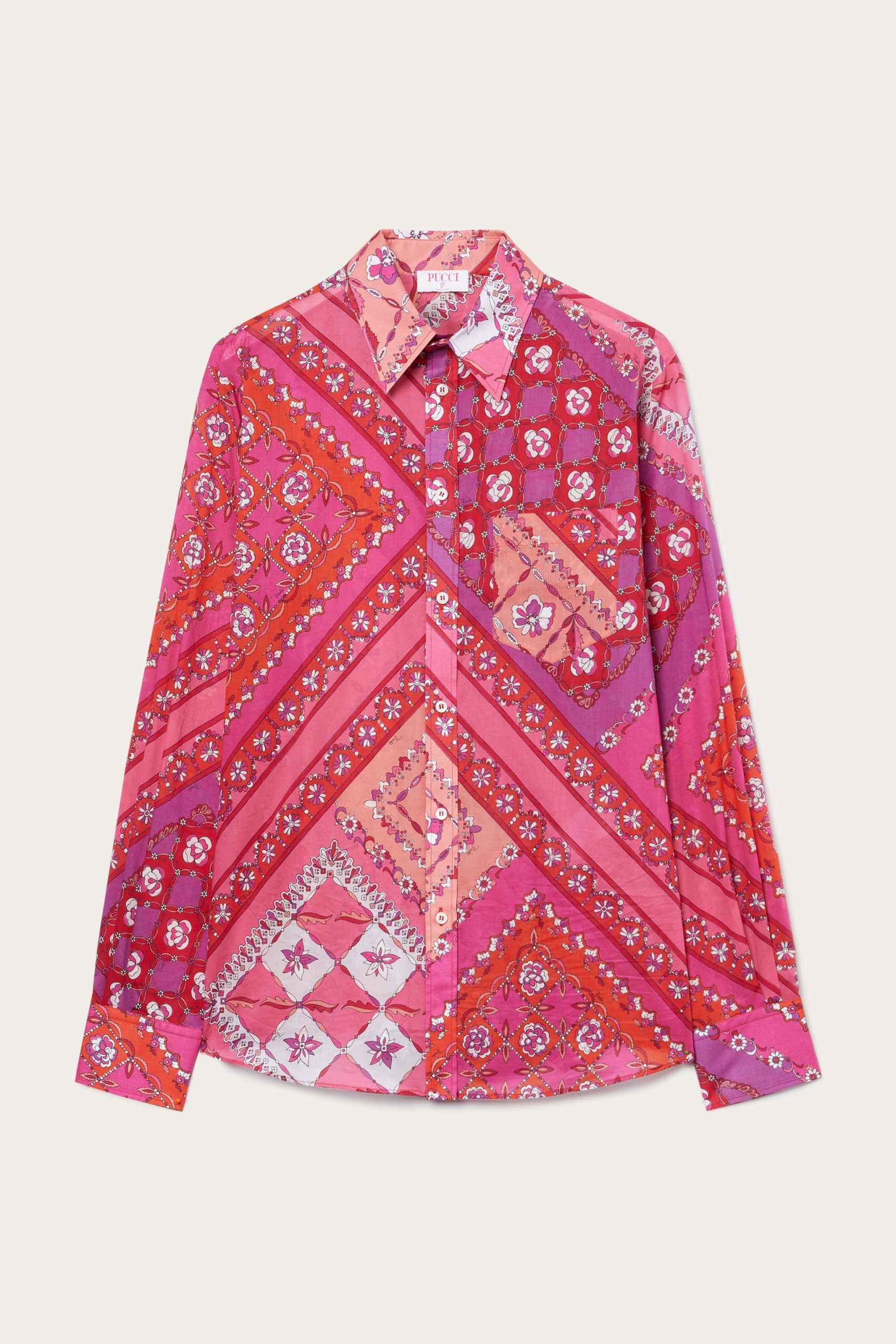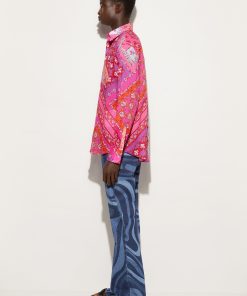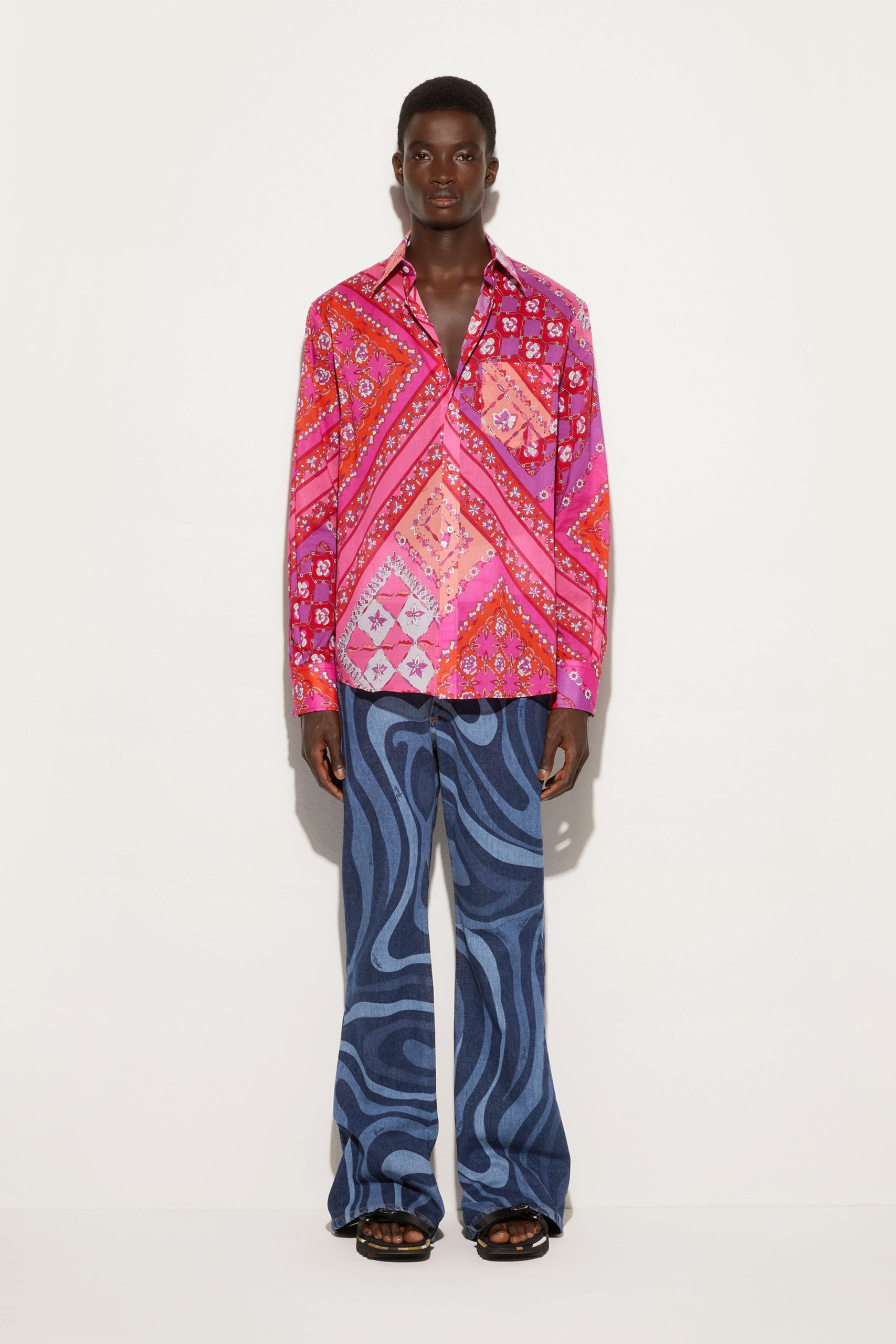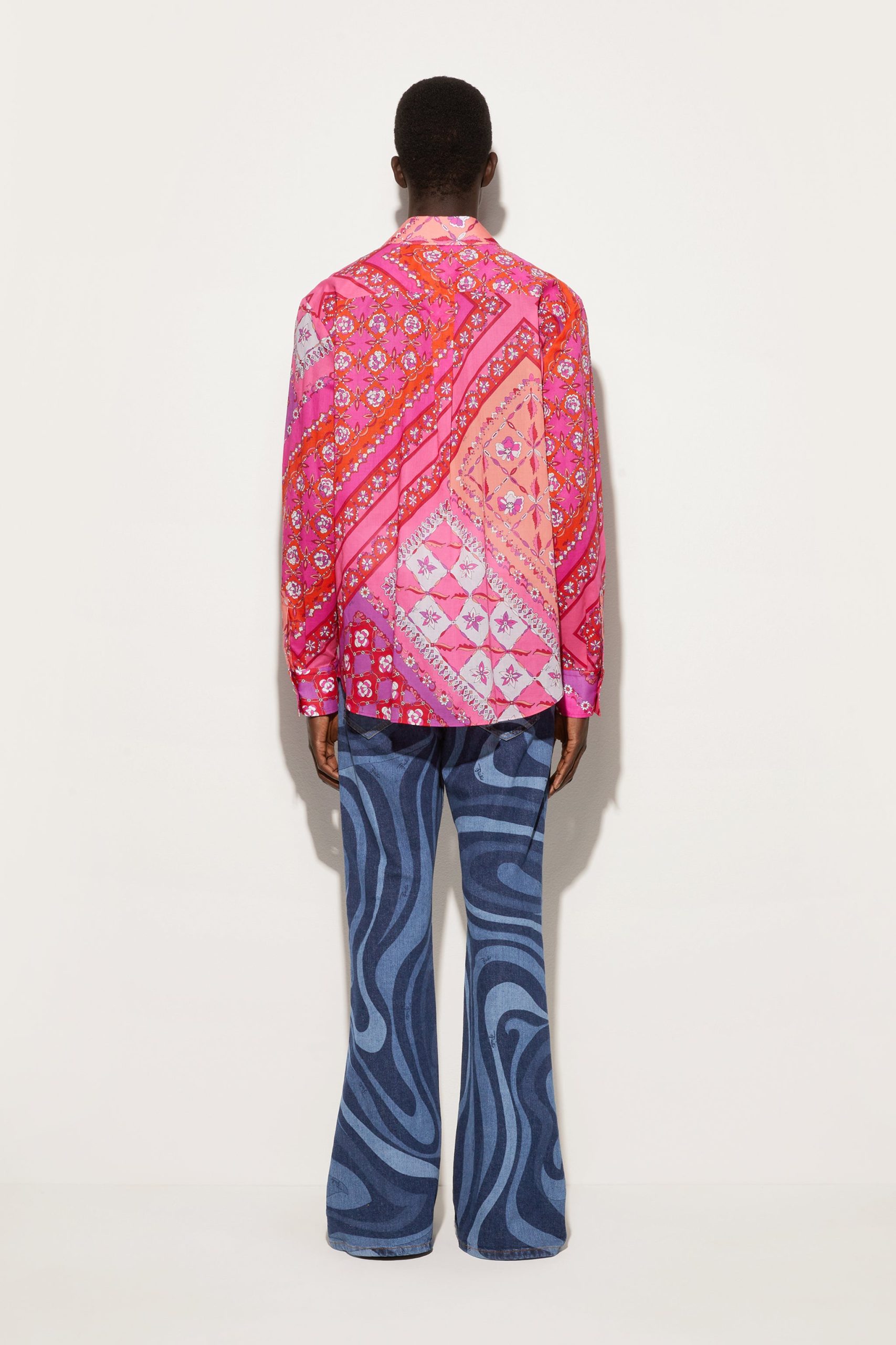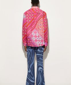 A fluid and contemporary interpretation of the classic shirt. This oversized, long-cut style offers a comfortable, relaxed fit perfect for a casual, sophisticated look. Designed as a unisex garment, it fits naturally into both men’s and women’s wardrobes. The design can be customized with cufflinks, adding an extra touch of elegance. Made of 100% cotton, it is enhanced by the coral and fuchsia-colored Festa print, a motif that expresses the dynamism and energy typical of the Pucci world.