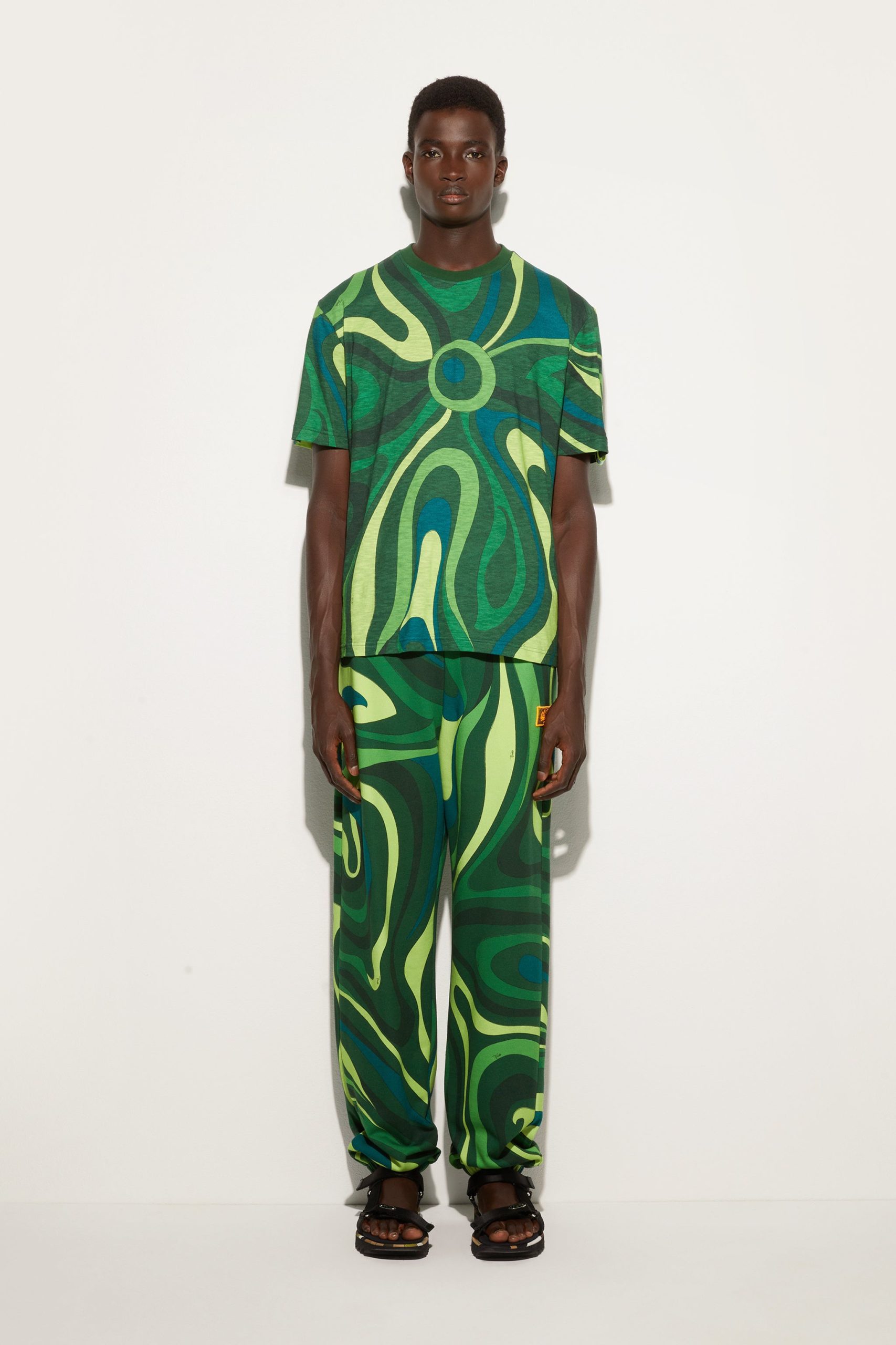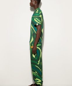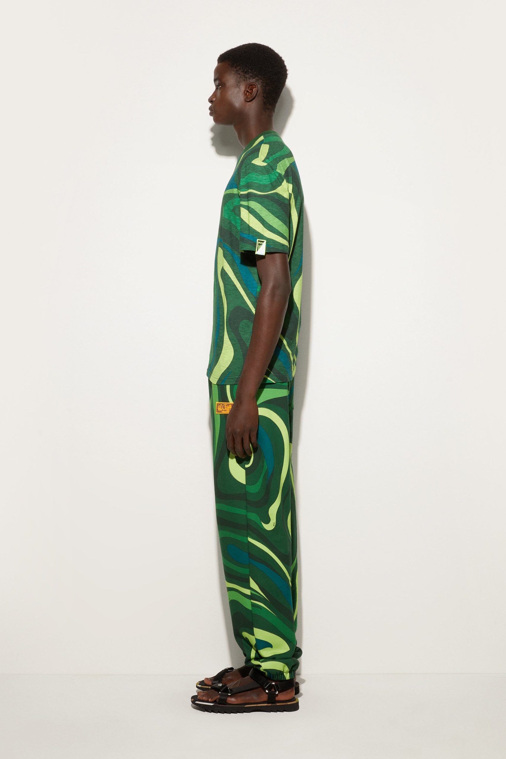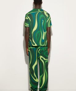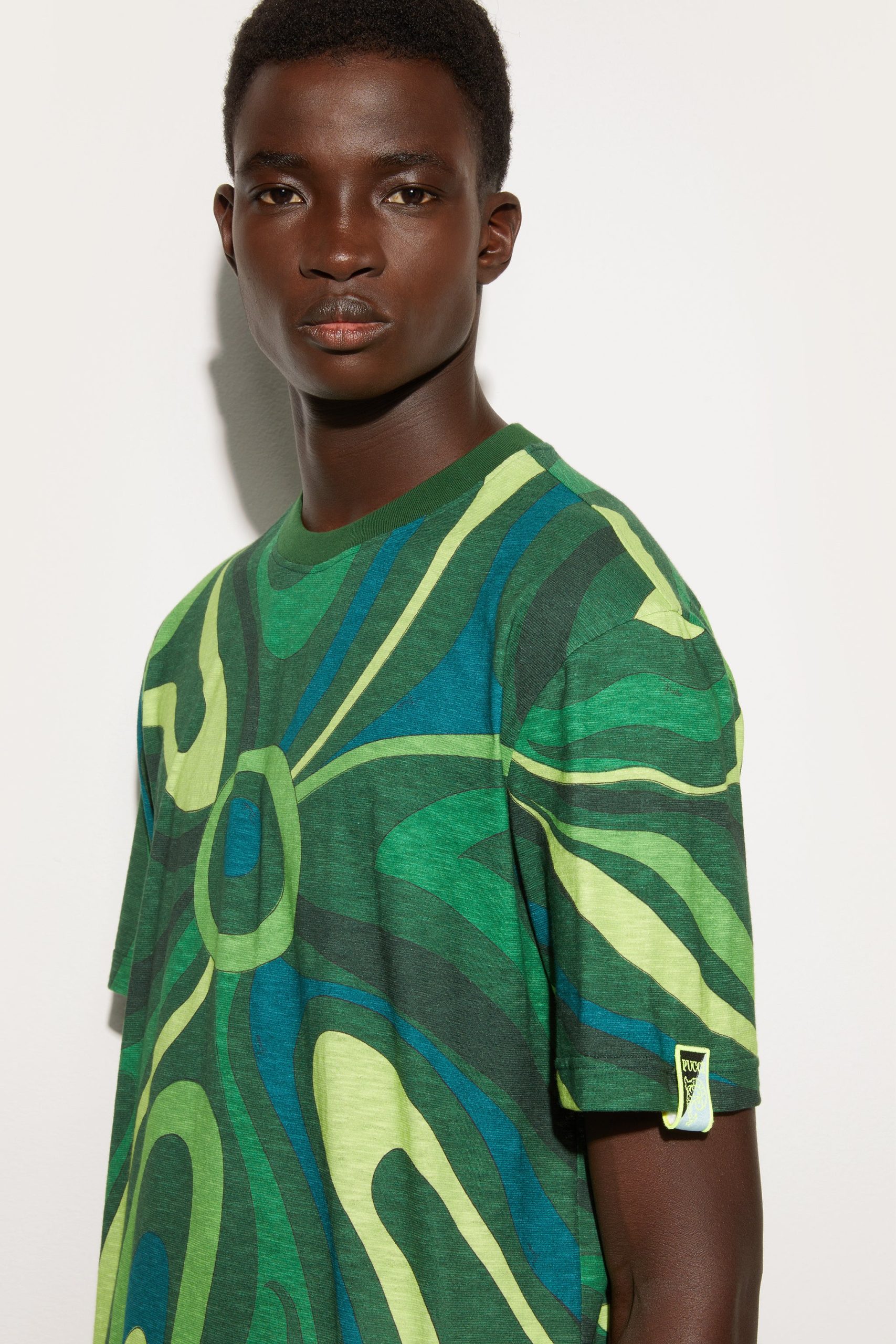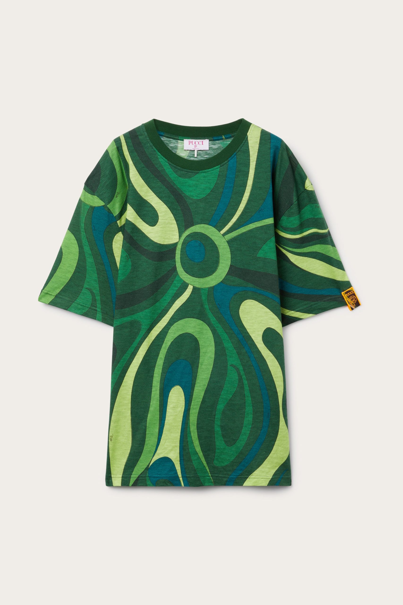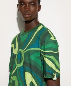 Bold style and everyday comfort. This Green-colored Marmo print short-sleeve T-shirt stands out for its loose, boxy cut and relaxed fit. The iconic graphic adds a dynamic touch, turning an essential garment into a symbol of casual elegance.Perfect for completing vibrant summer looks or pair with coordinating pants for a true style statement.