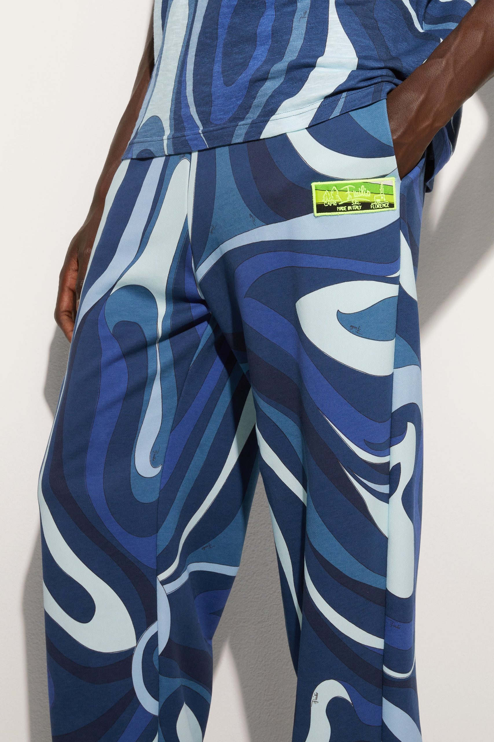 An essential garment for those looking for sophisticated style even when relaxing. Indigo-colored Marmo print cotton fleece joggers offer comfort and functionality with an elastic waistband and ankles that ensure a perfect fit. Complete the look by pairing them with the coordinating sweatshirt from the same line or tshirt for a versatile, contemporary outfit.