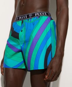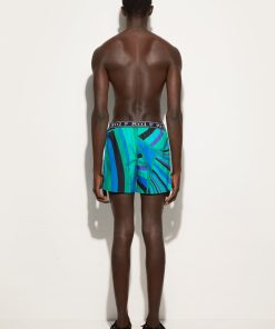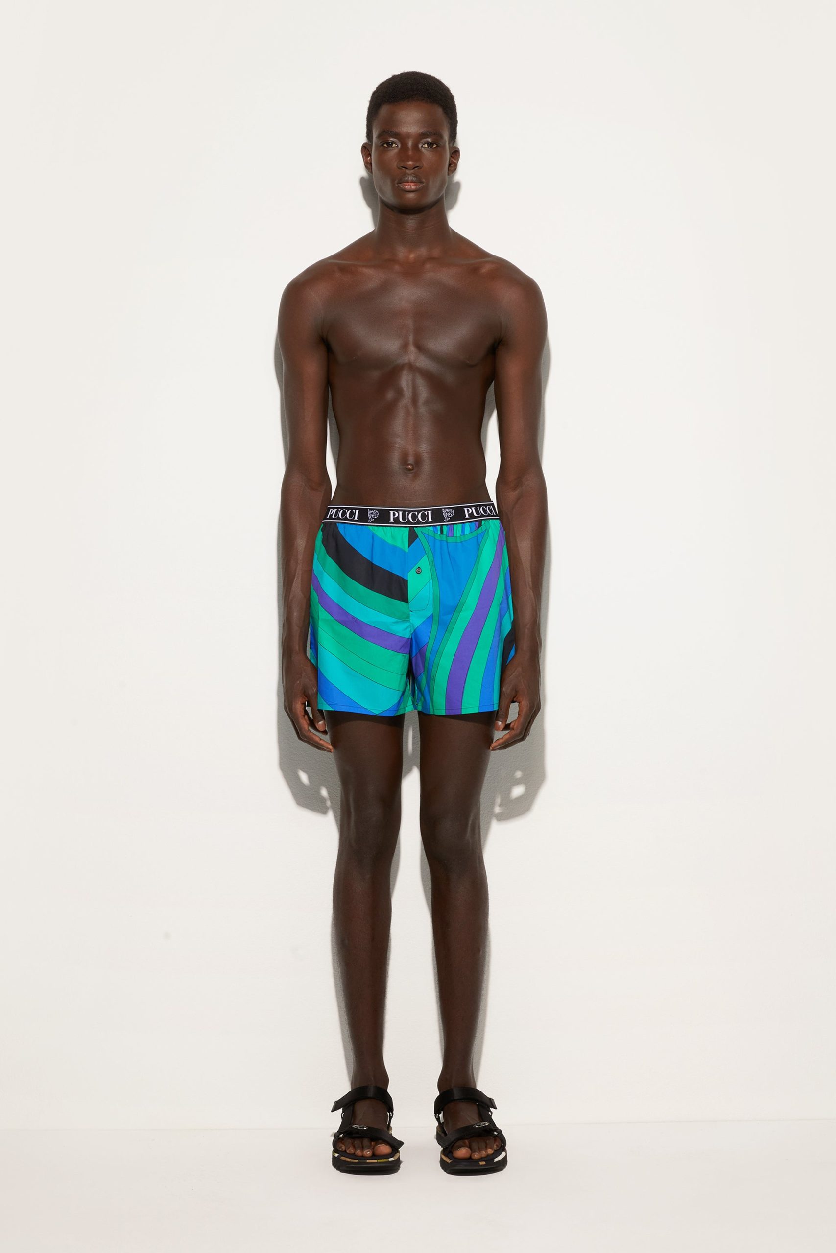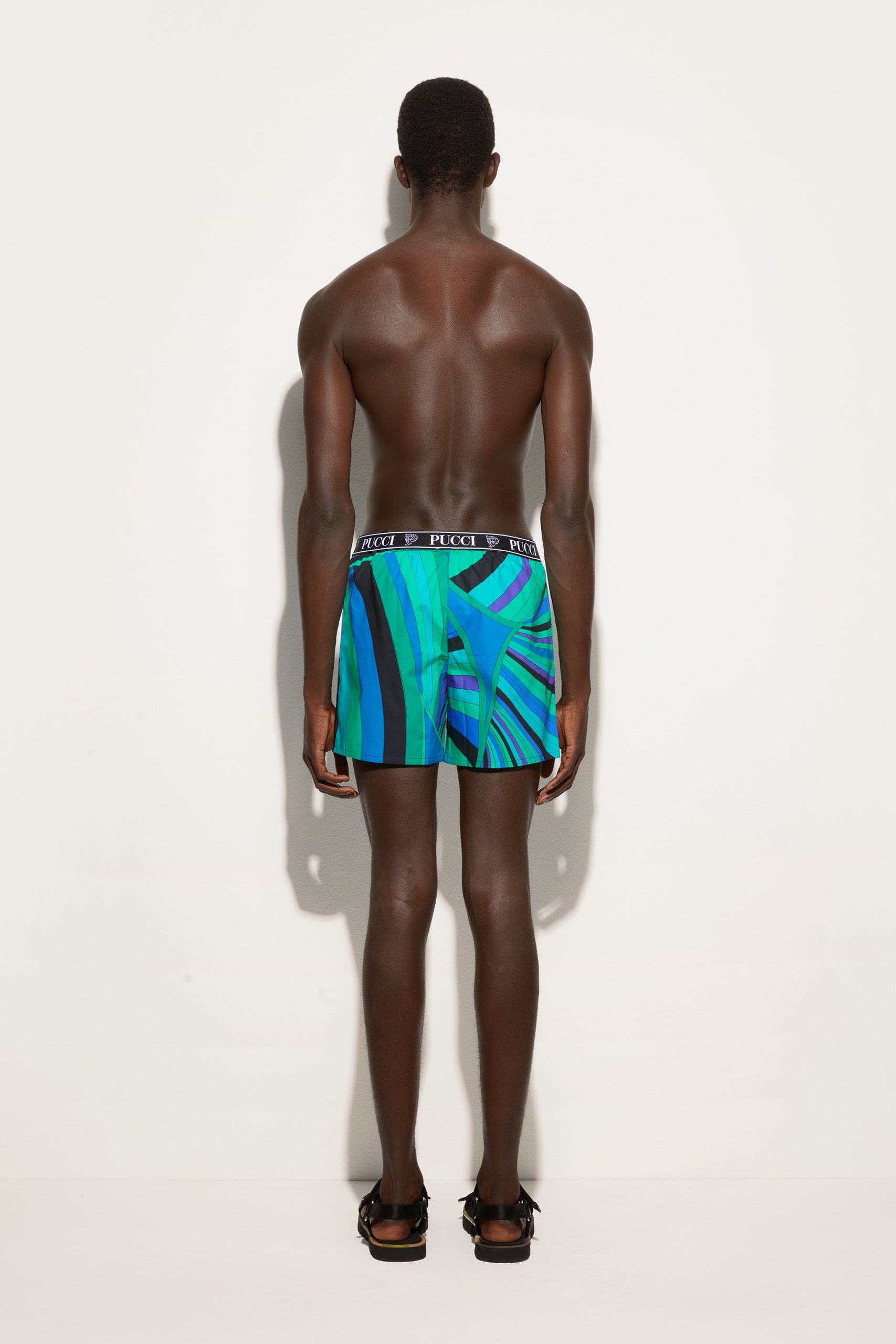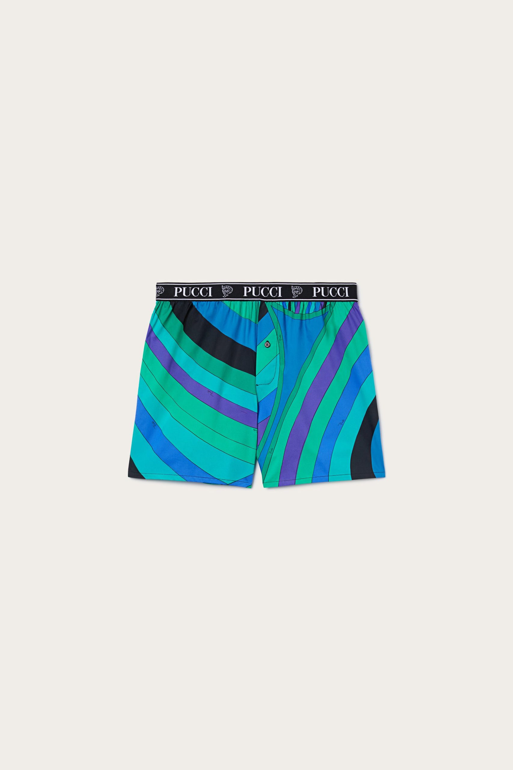Comfort and lightness meet in these boxers made from cotton. The cool, breathable fabric is enhanced by a soft-touch finish, offering a pleasant all-day fit.The emerald Iride print adds a distinctive touch, enhancing the garment’s dynamic and refined character. The elastic waistband ensures a perfect fit without constriction, for an ideal blend of functionality and style.