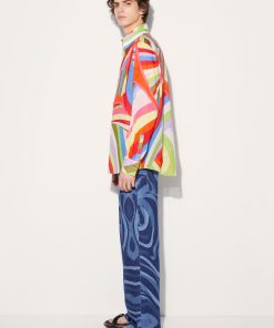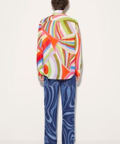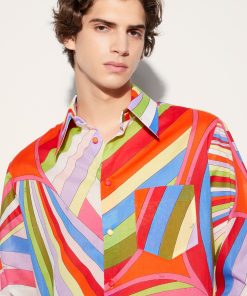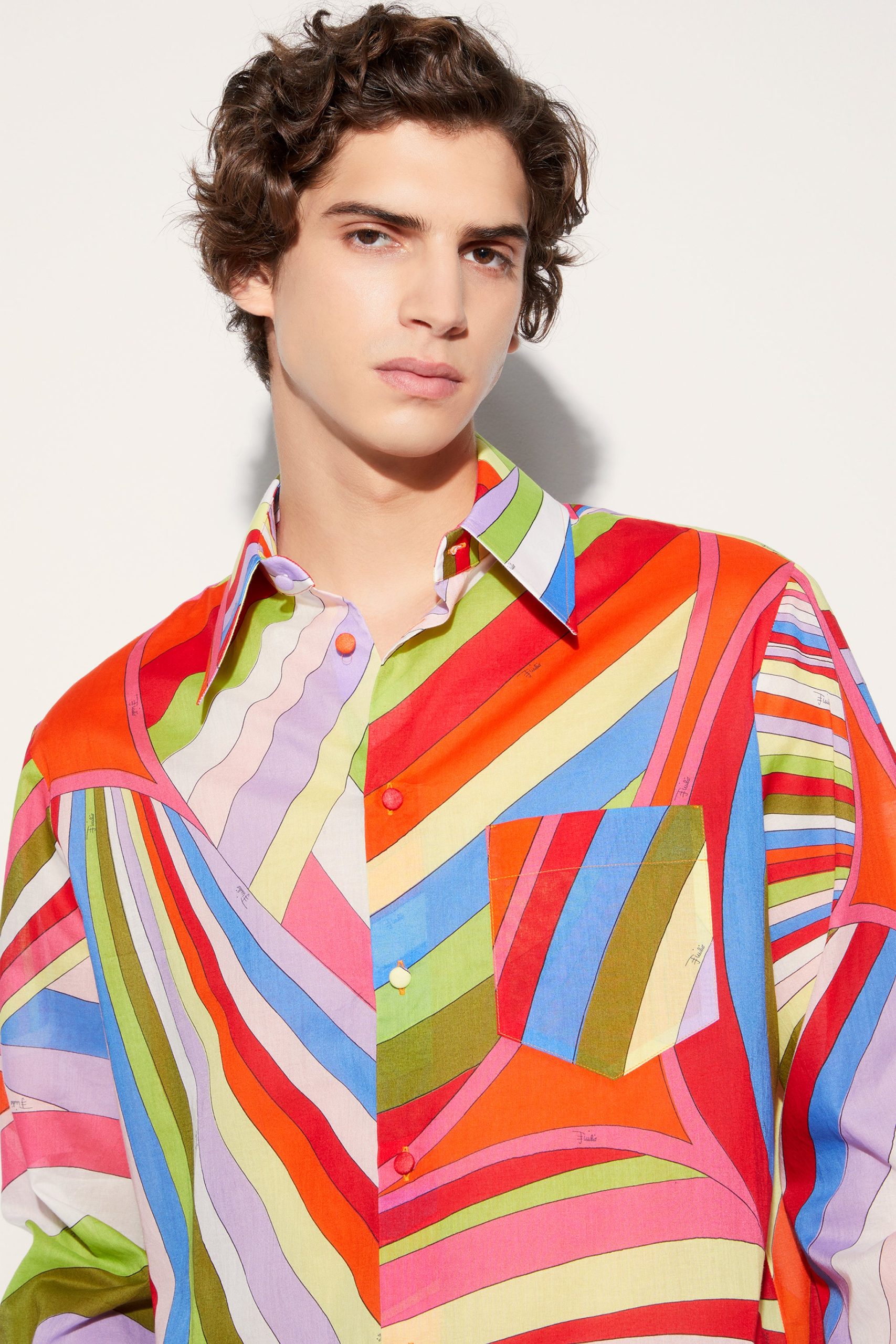 This lightweight cotton muslin shirt presents Pucci’s spirited take on a classic wardrobe staple. It’s transformed by the Iride print’s elliptical curves in a medley of bright hues.