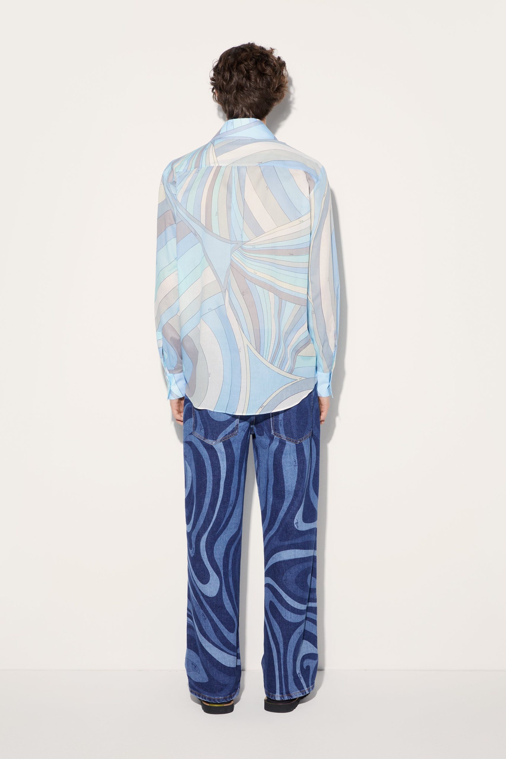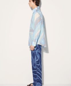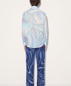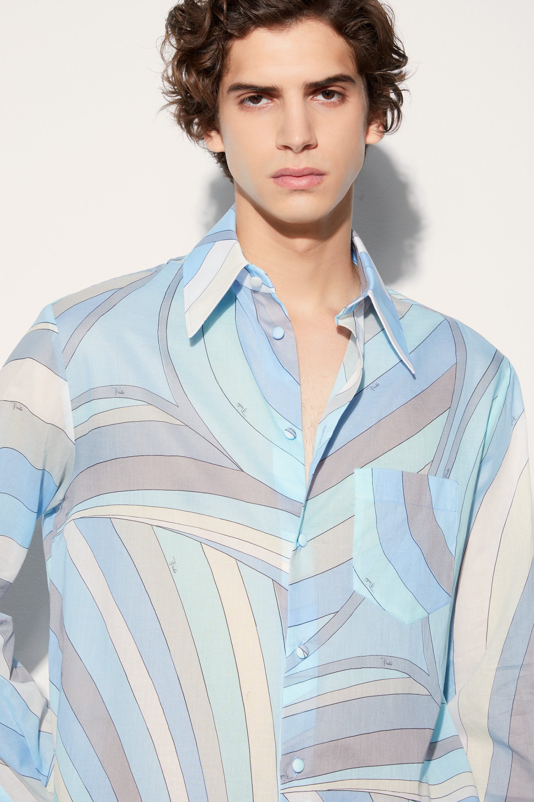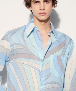 Pucci Men’s Iride-print Cotton Shirt | Sky Blue & Grey