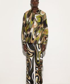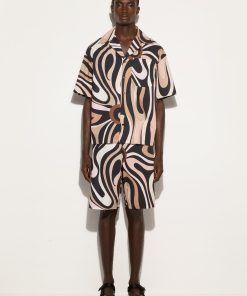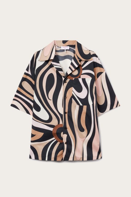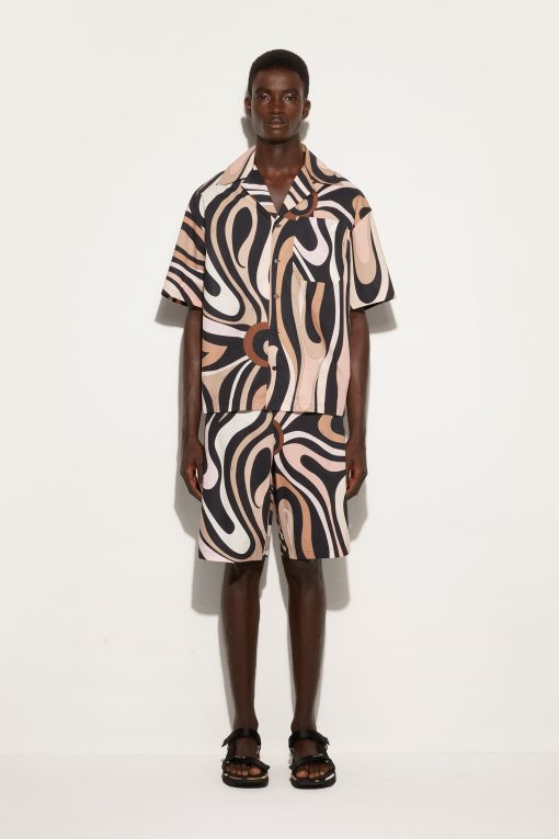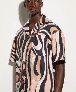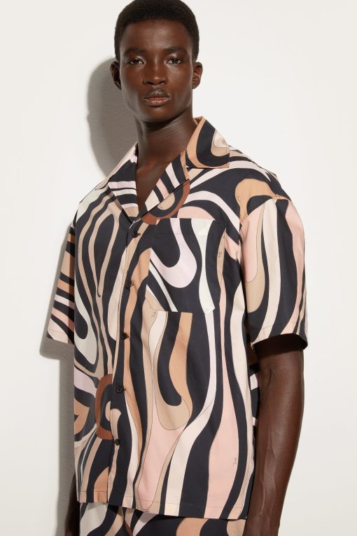 Pucci Men’s Marmo Print Bowling Shirt | Black & Nude