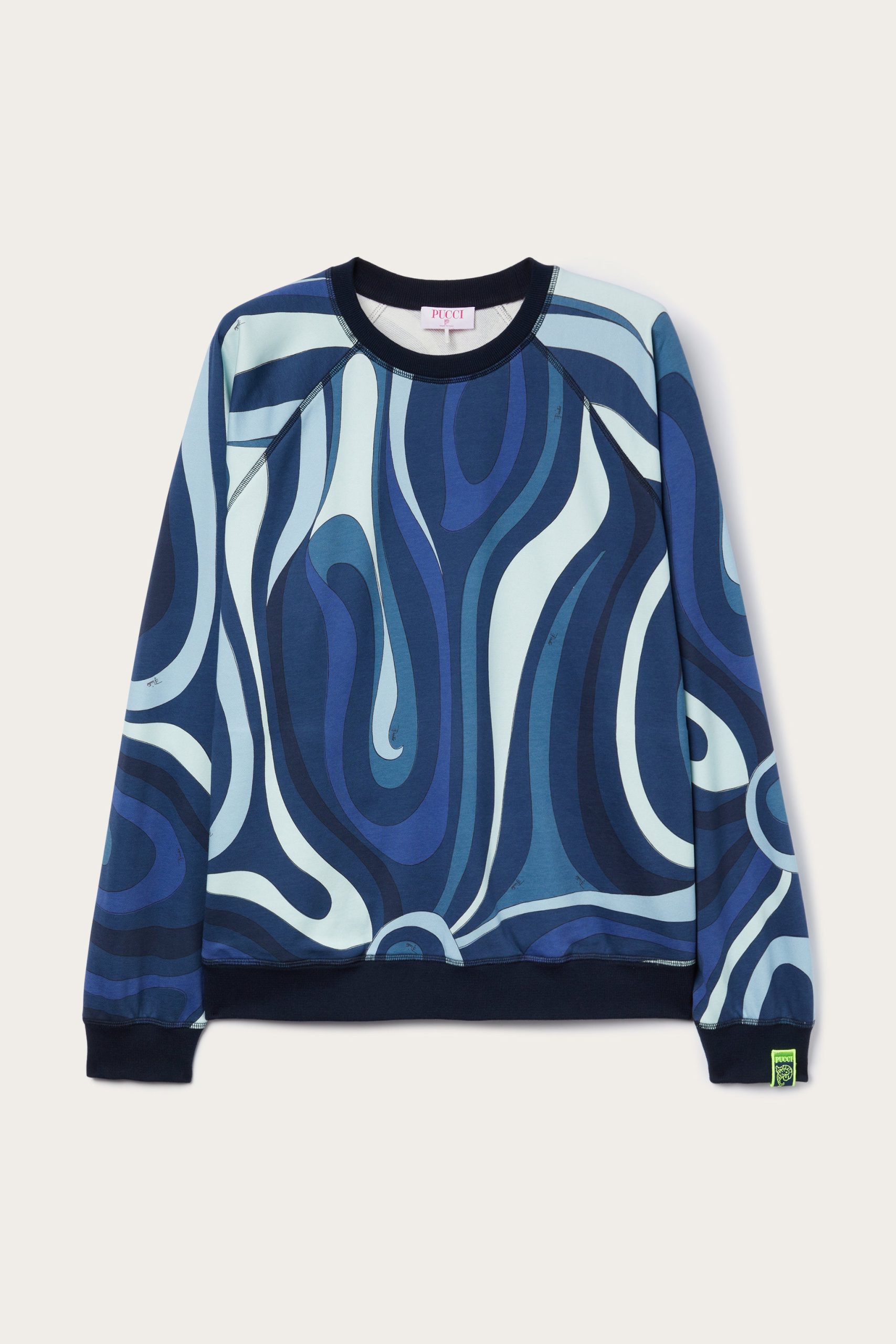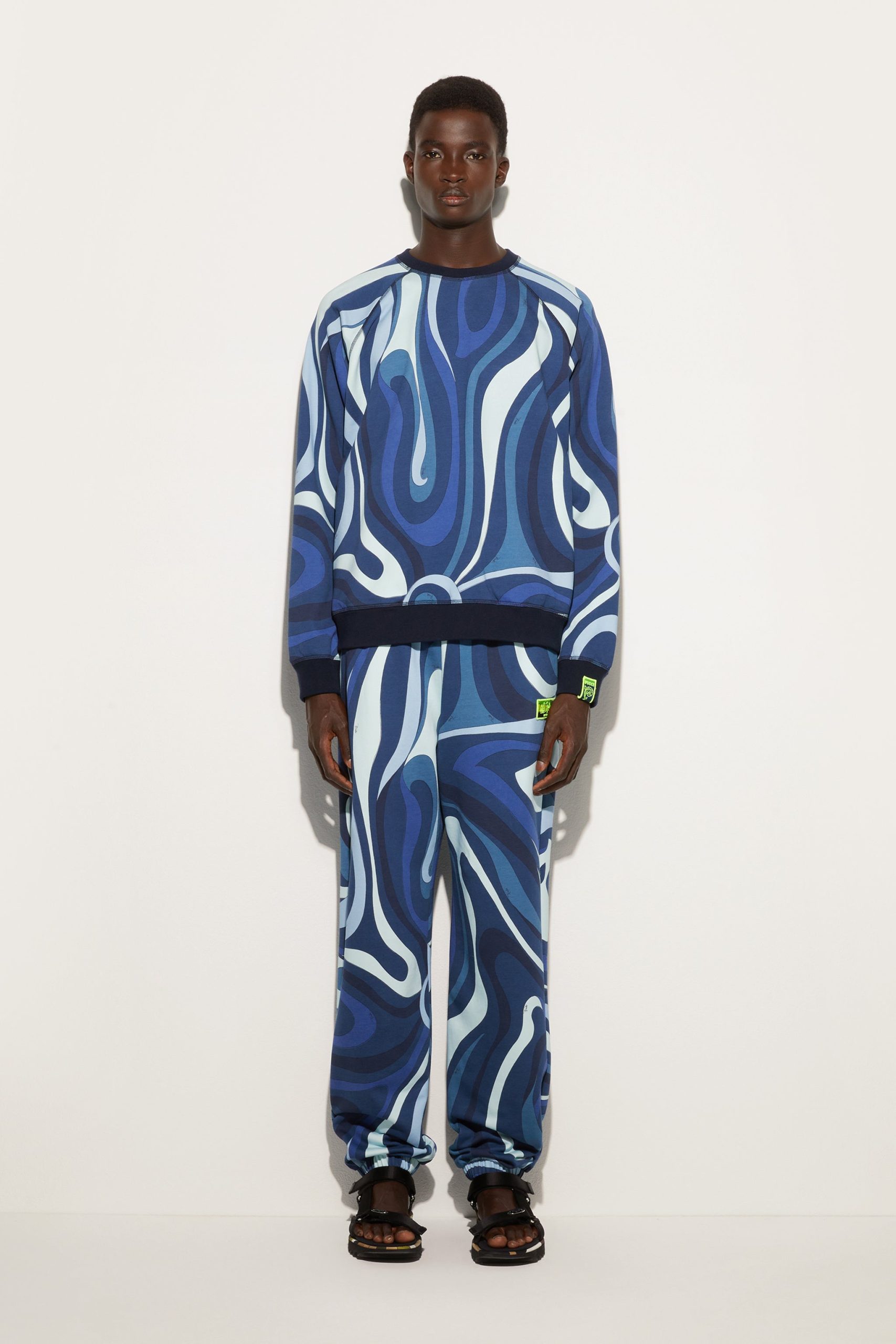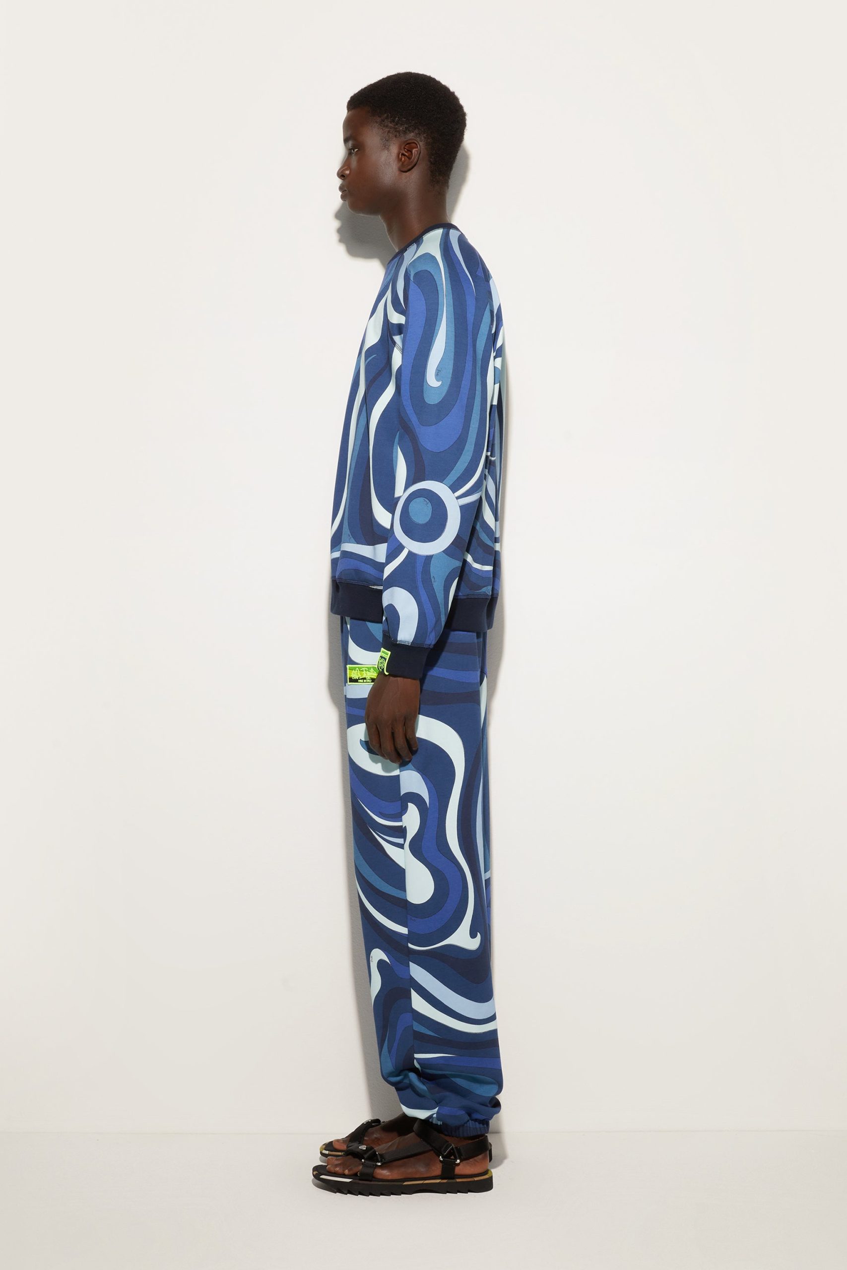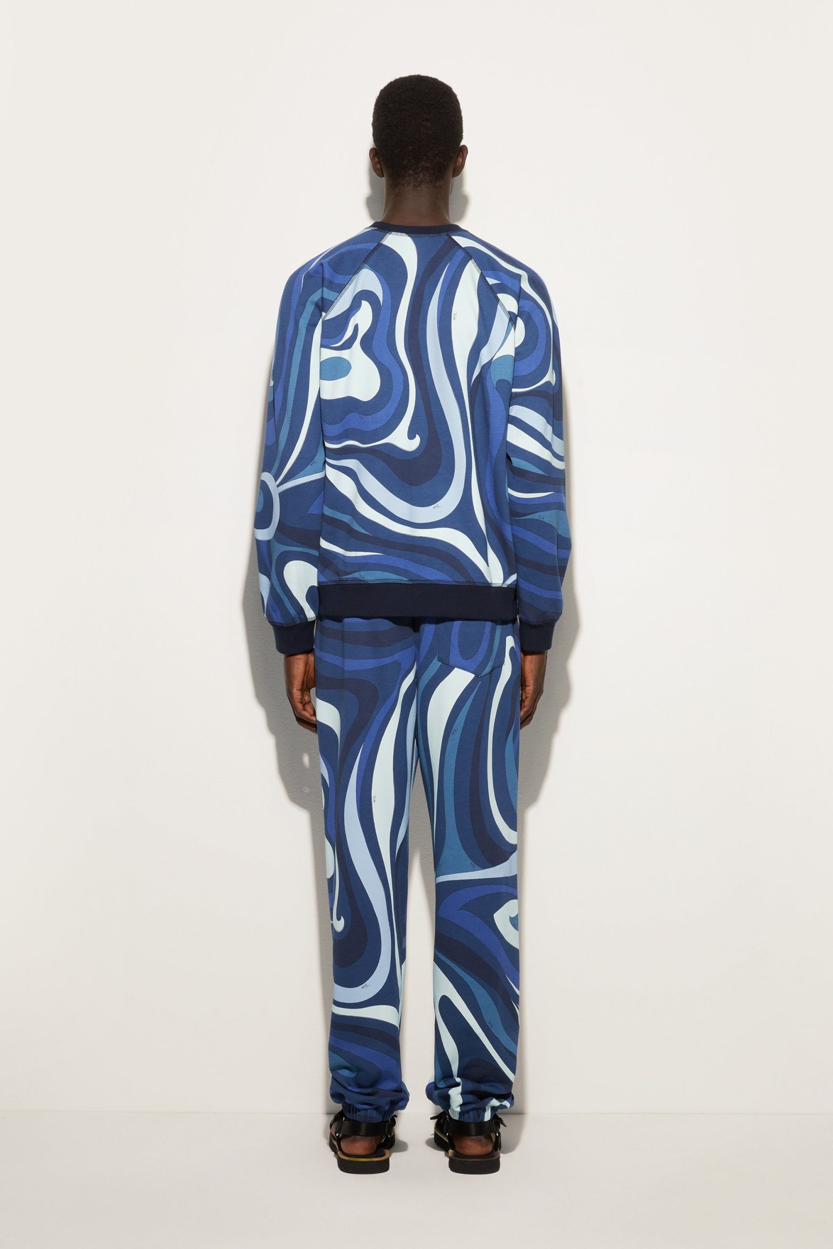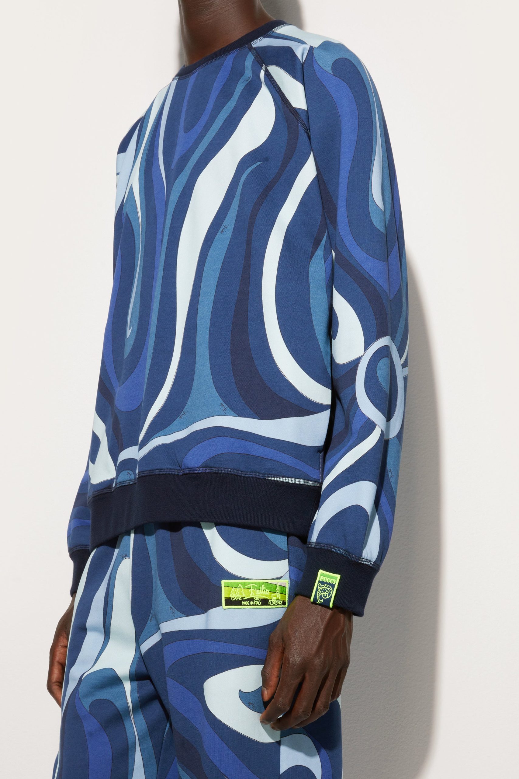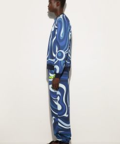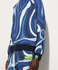 The perfect mix of style and function, the fleece sweatshirt featuring the iconic Indigo Marmo print reflects the brand’s dynamic elegance. Ribbed trims on the waist, cuffs and neckline ensure a comfortable and modern fit, ideal for a “careful” yet relaxed look.The outfit can be completed by pairing it with matching pants for a total look that leaves no doubt. Perfect for leisure or for a distinctive touch during the daily routine in the city.