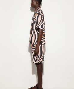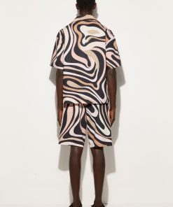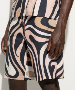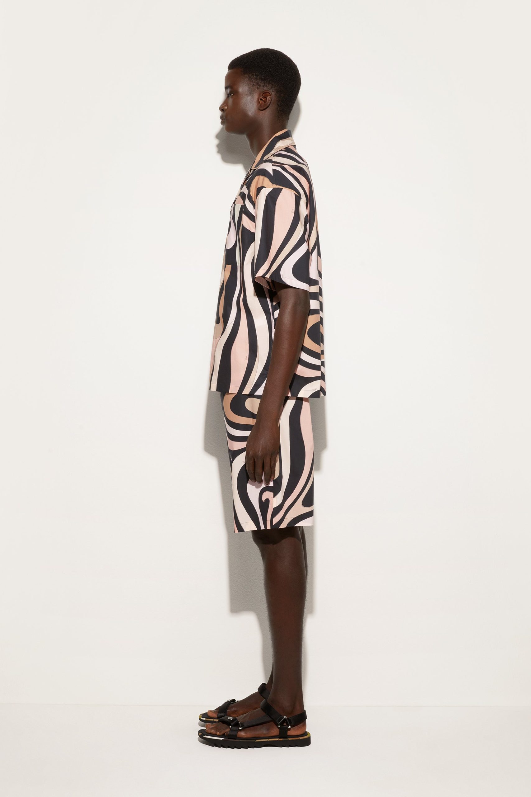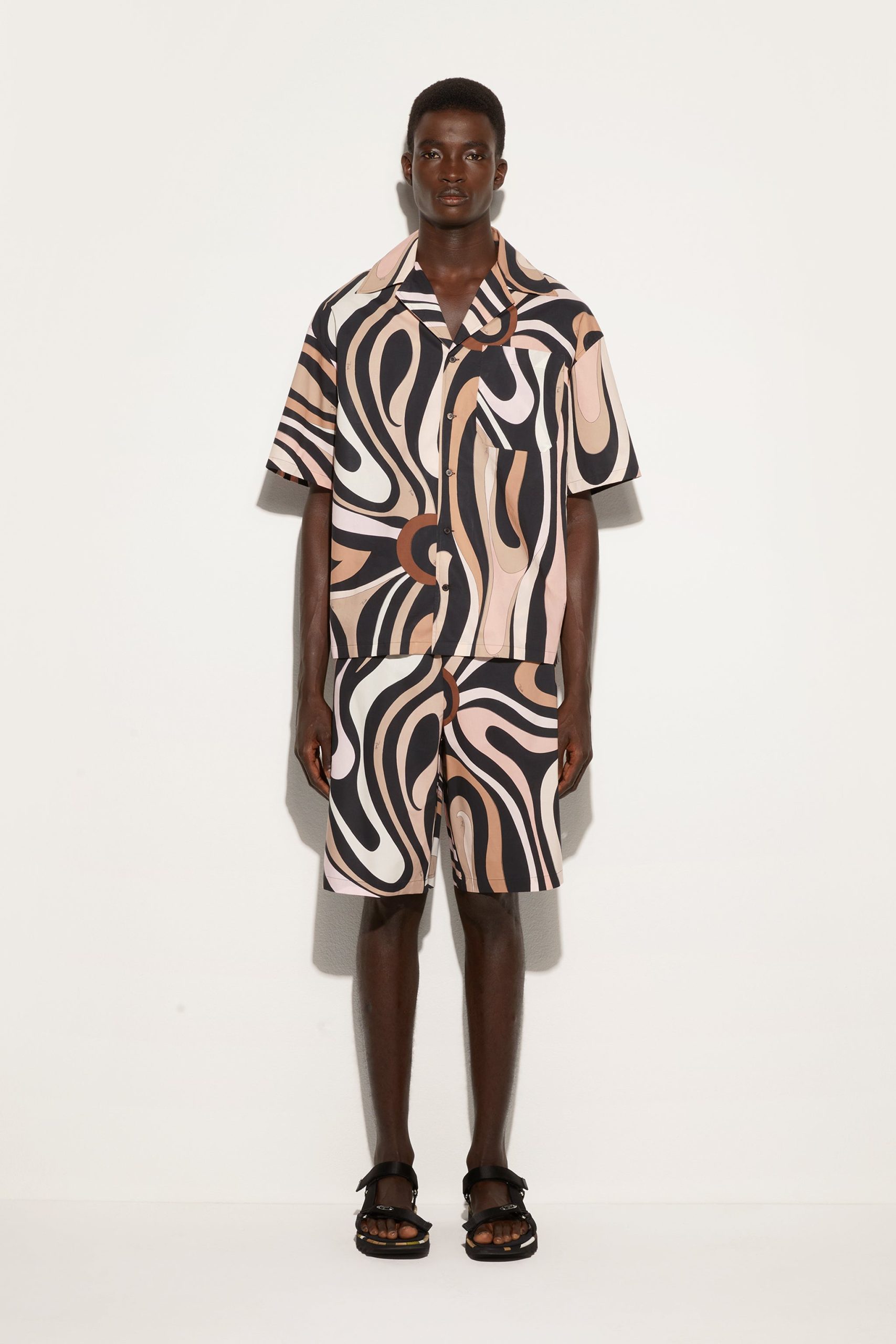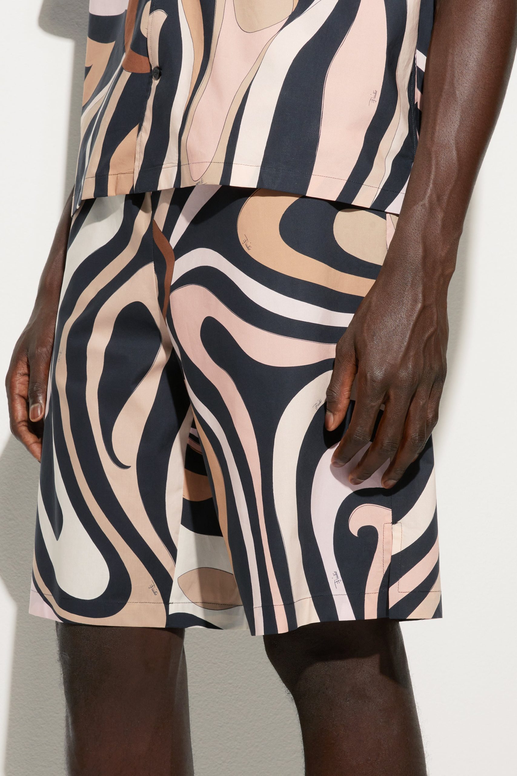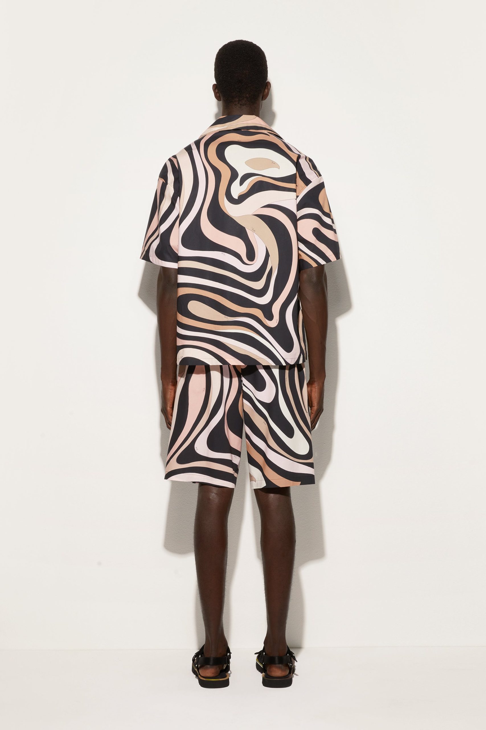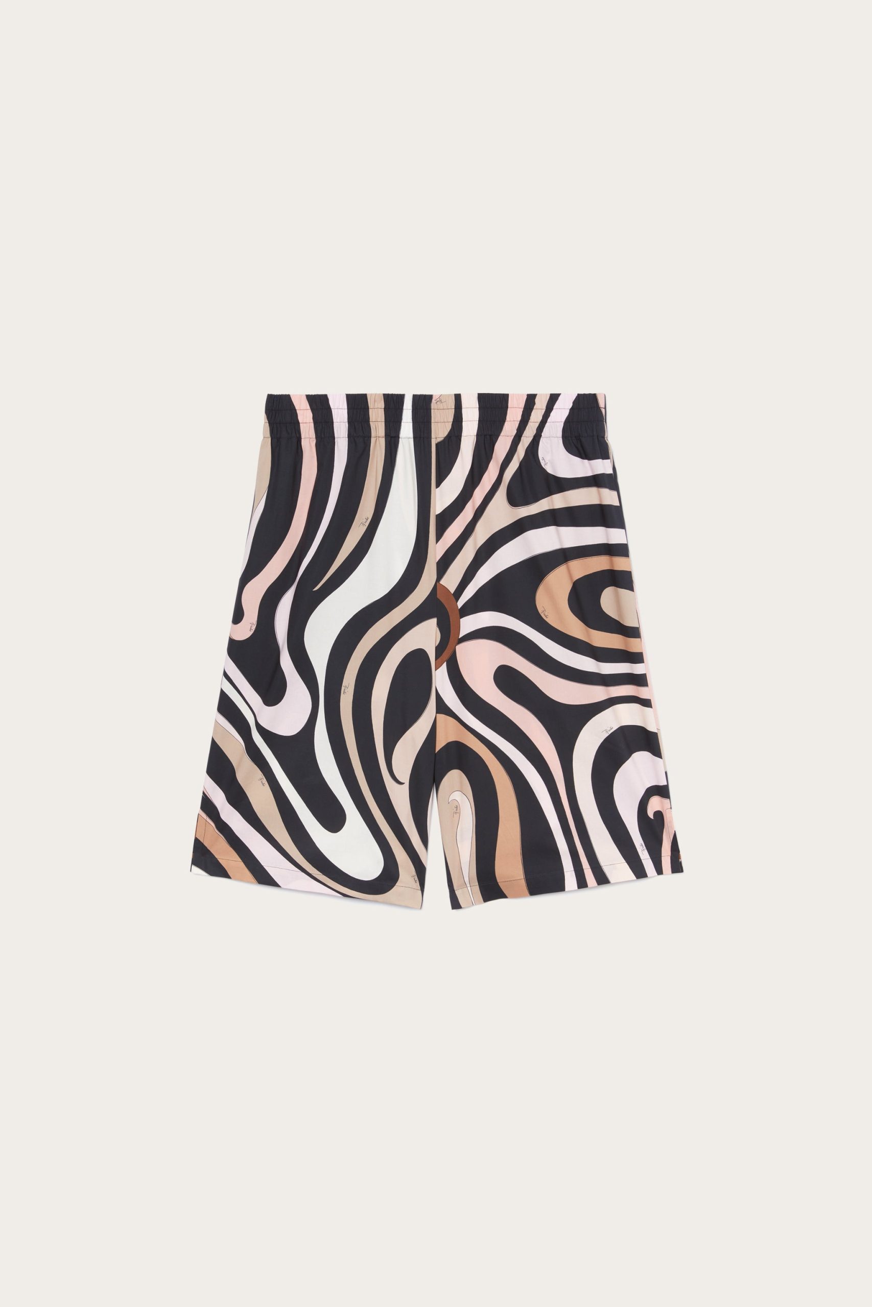 Clean lines and a relaxed fit define these loose, boxy shorts designed to offer comfort and style. The structured design, with a length that reaches just below the knees, gives a modern and versatile look.Made of 100% cotton, they provide lightness and breathability, perfect for leisure wear. The Marmo print in black and nude adds a distinctive touch, enhancing the graphic and dynamic character typical of the Pucci aesthetic.