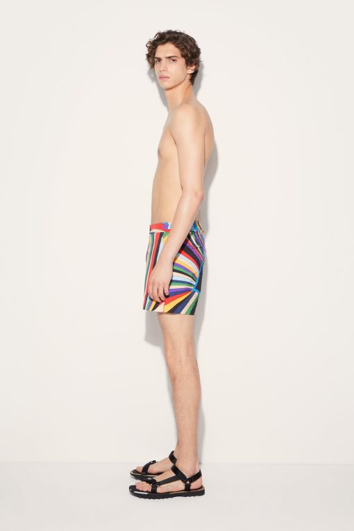 The dynamic Iride print envelops these swim shorts in a kaleidoscope of colour. Adjustable waist tabs allow for a personalised fit.